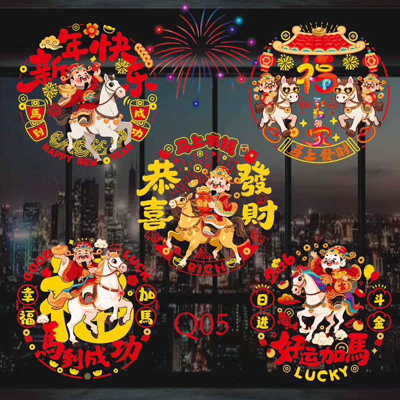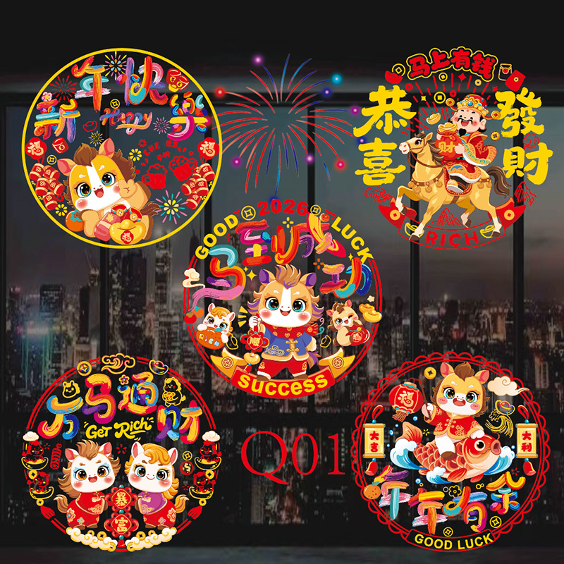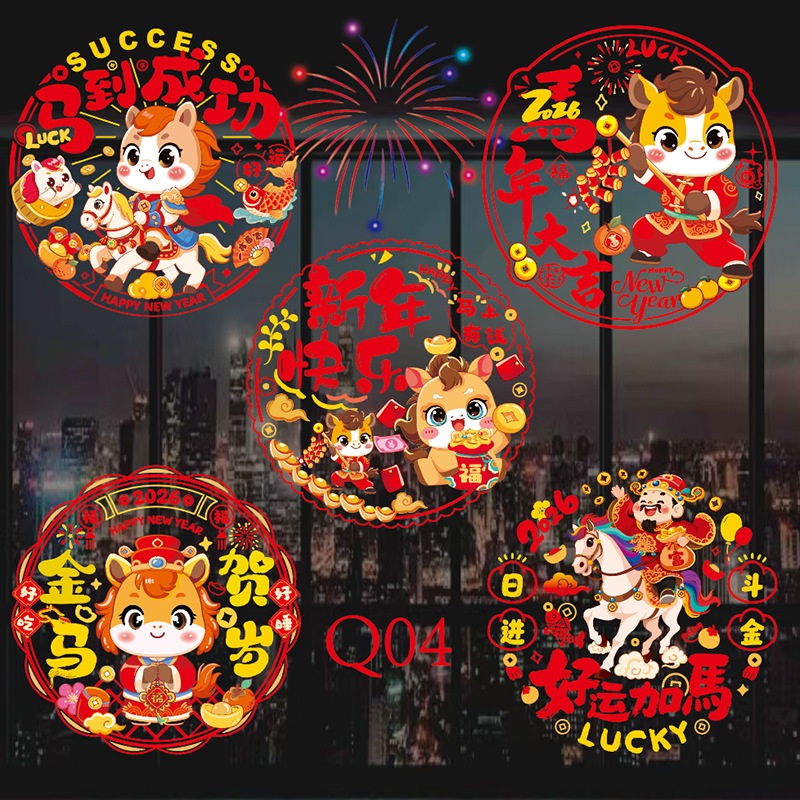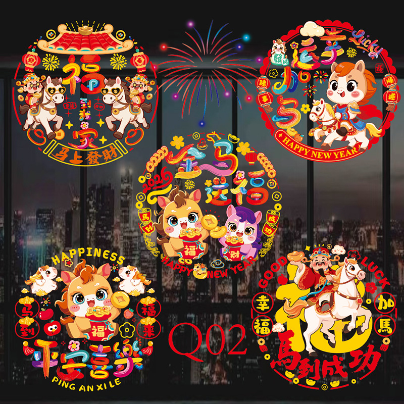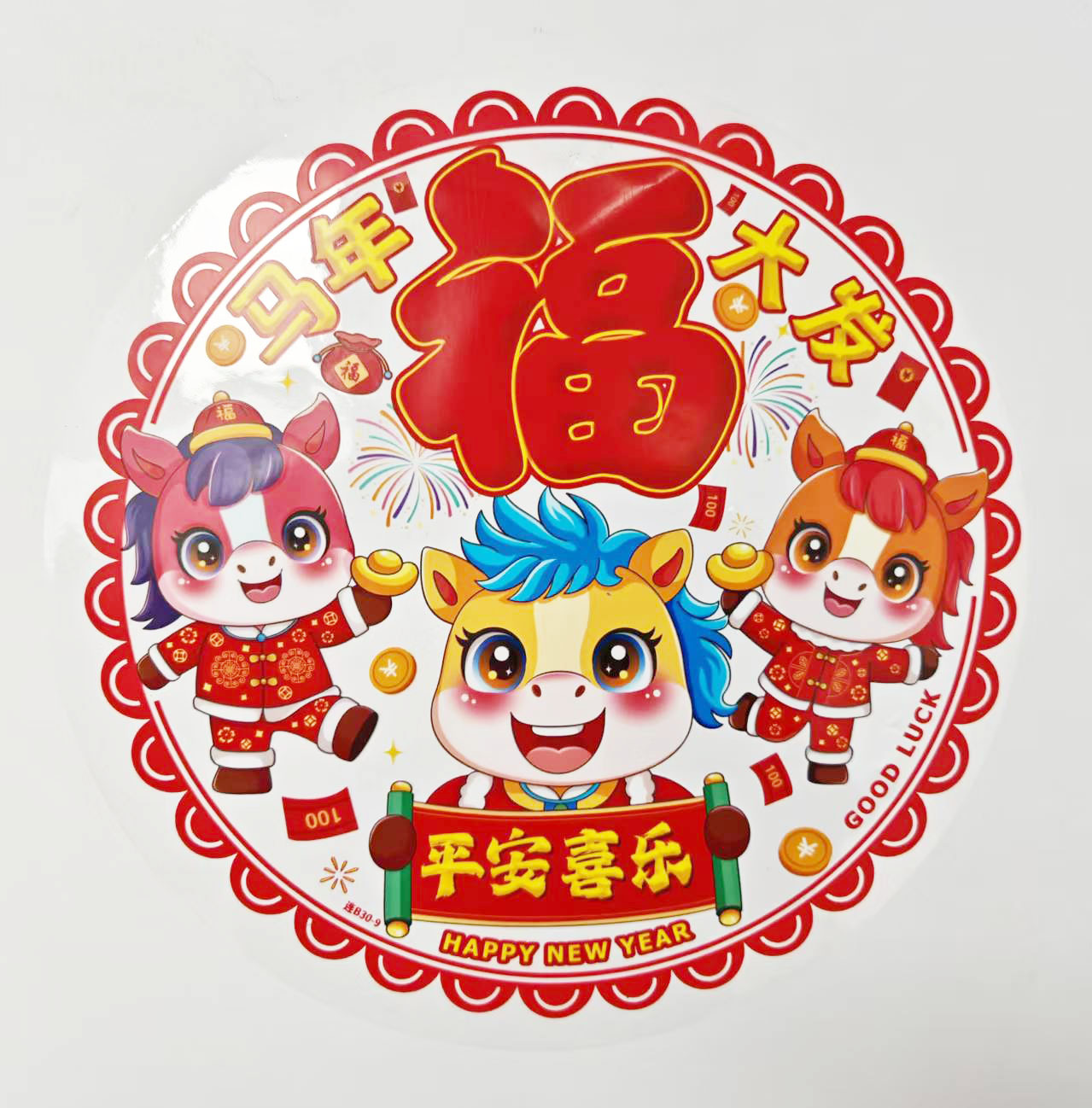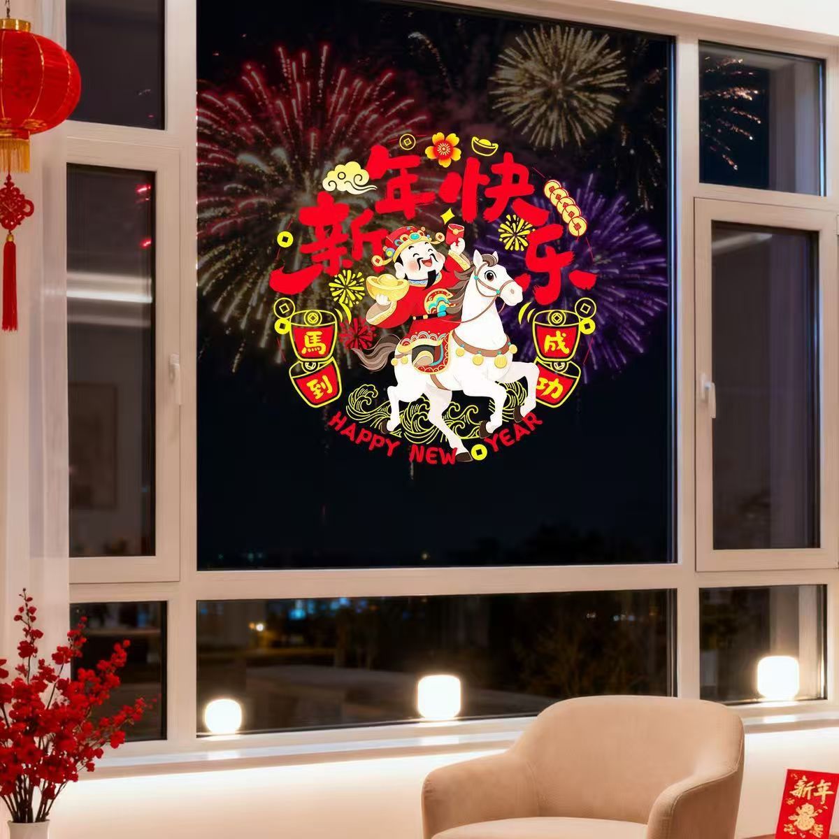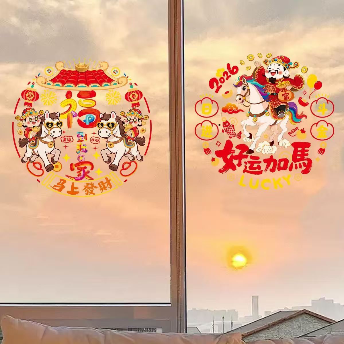 2026马年福字静电贴窗花膜剪纸生肖春节玻璃门过年布置装饰厂家
