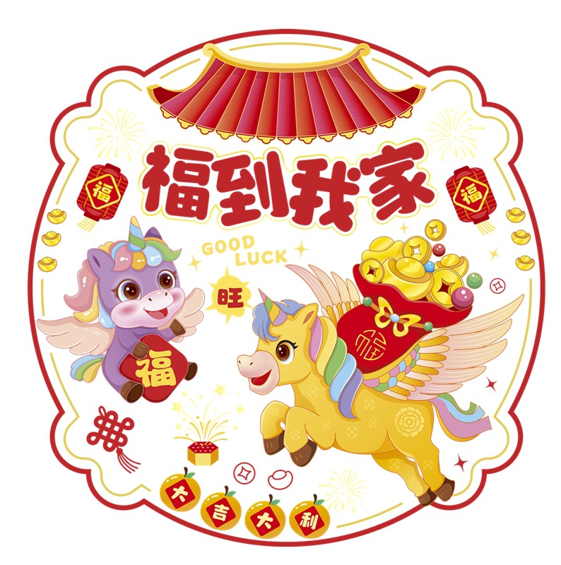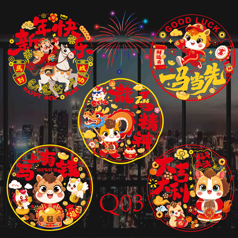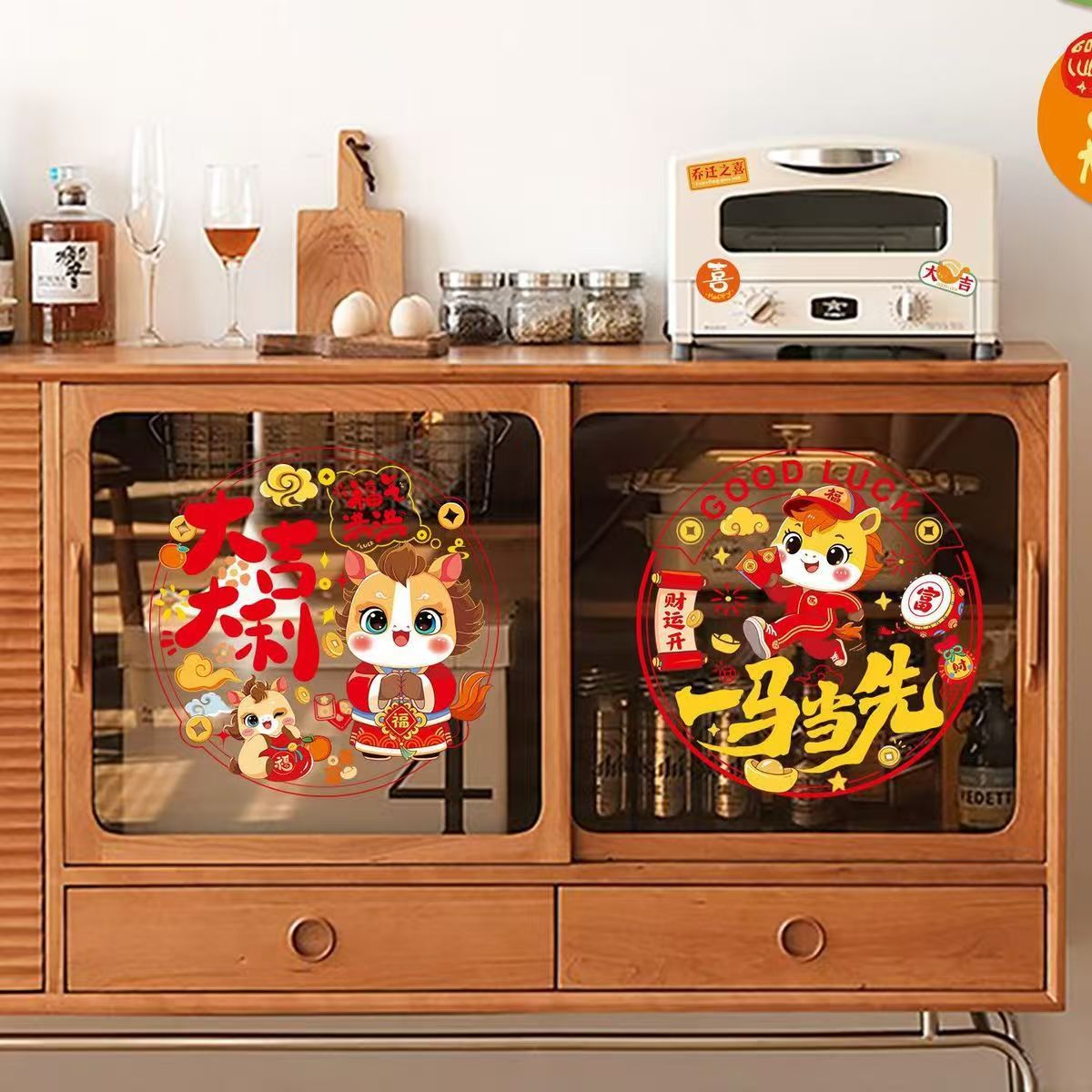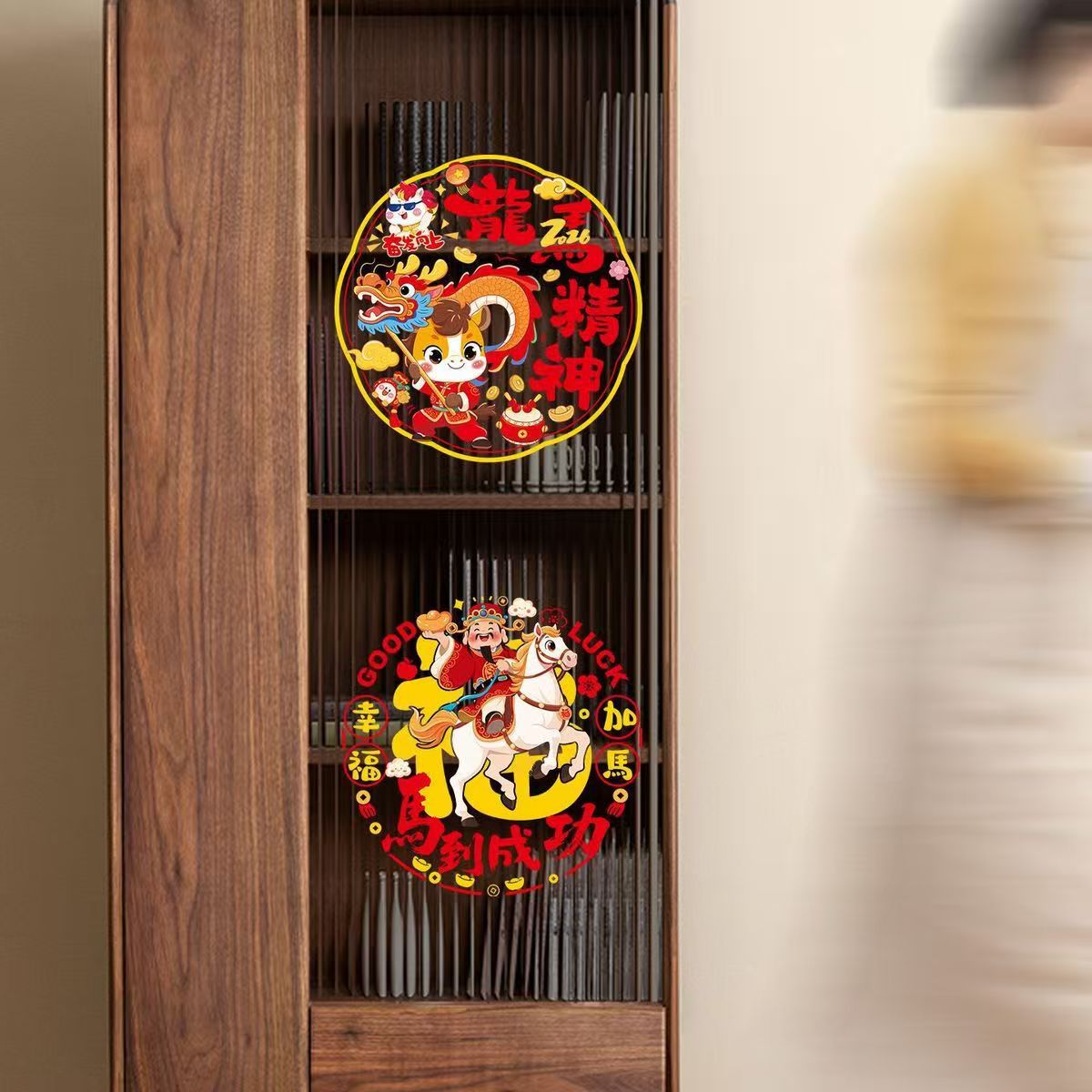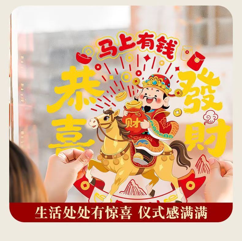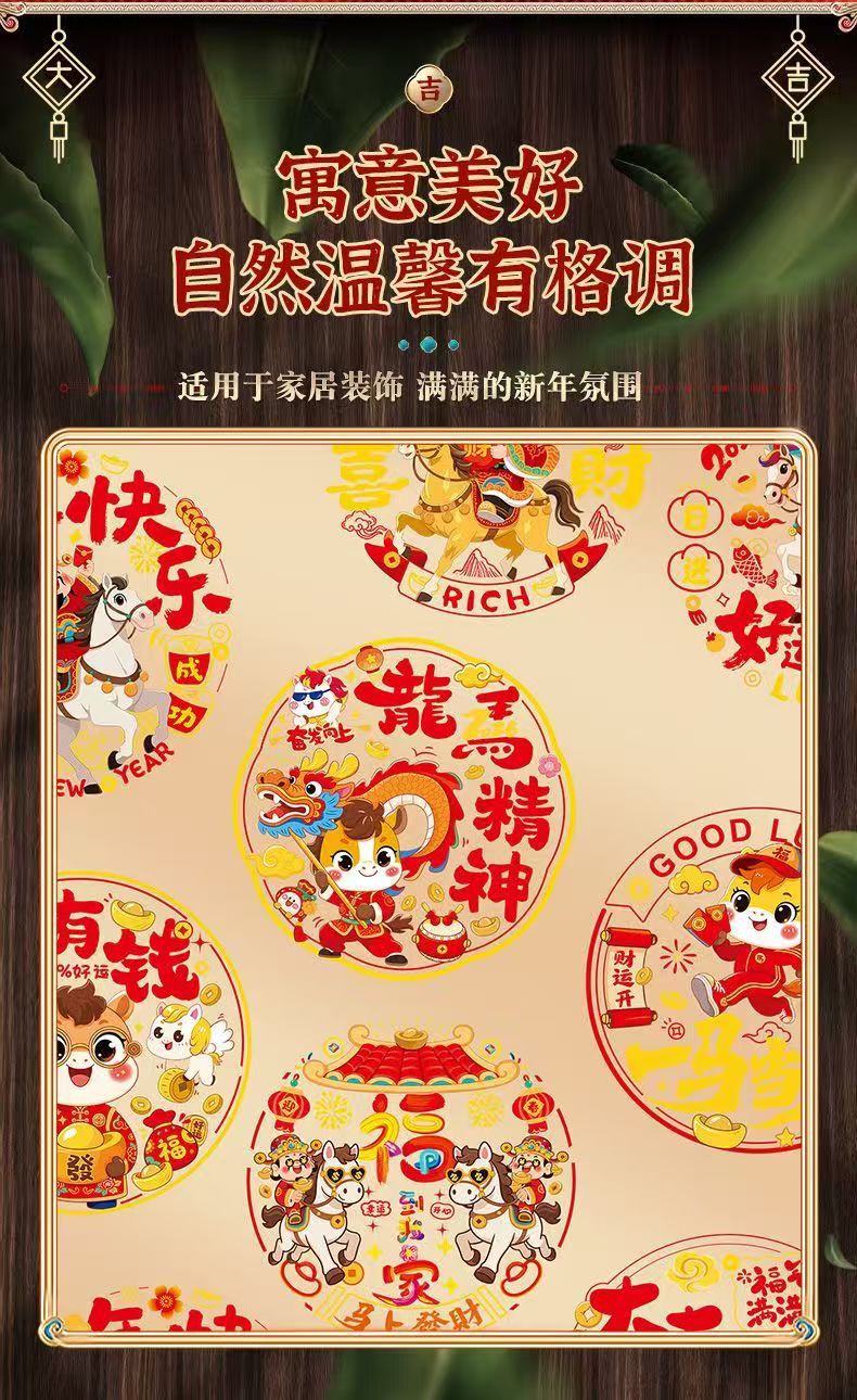 2026马年福字静电贴窗花膜剪纸生肖春节玻璃门过年布置装饰厂家