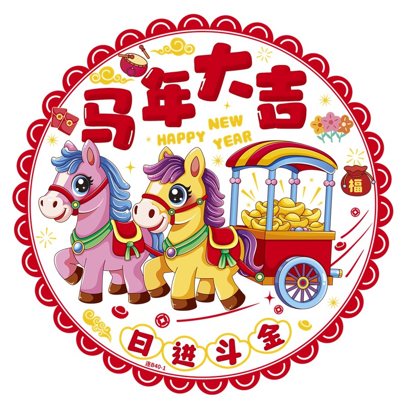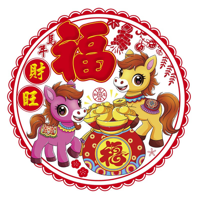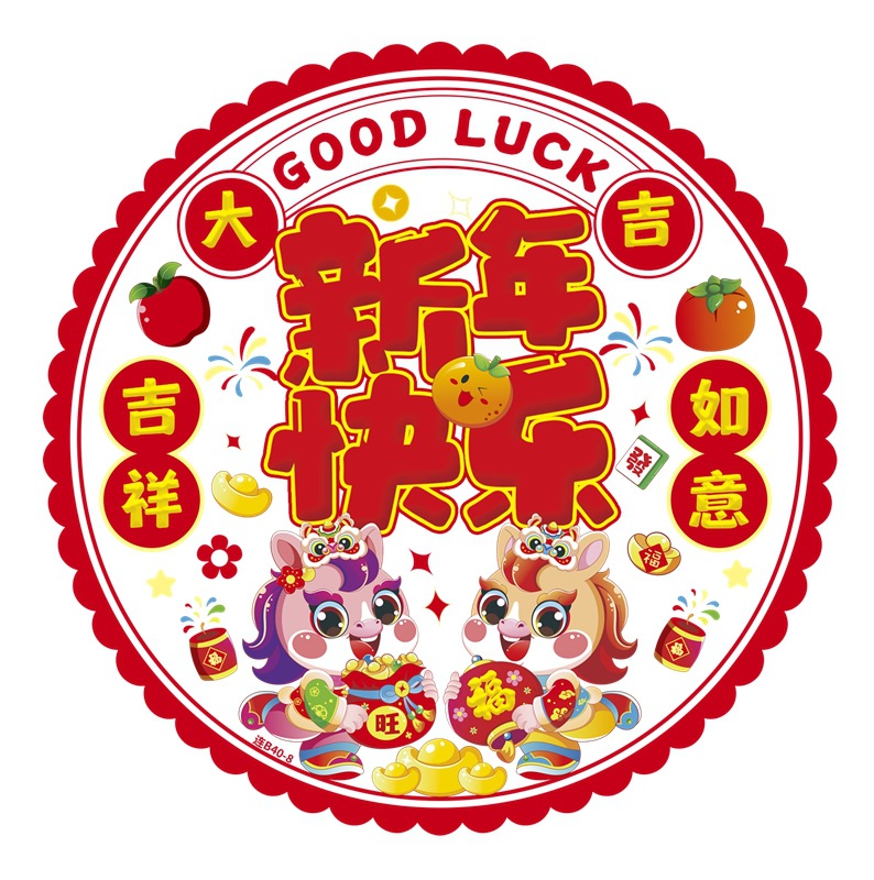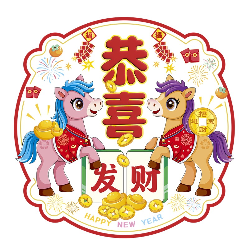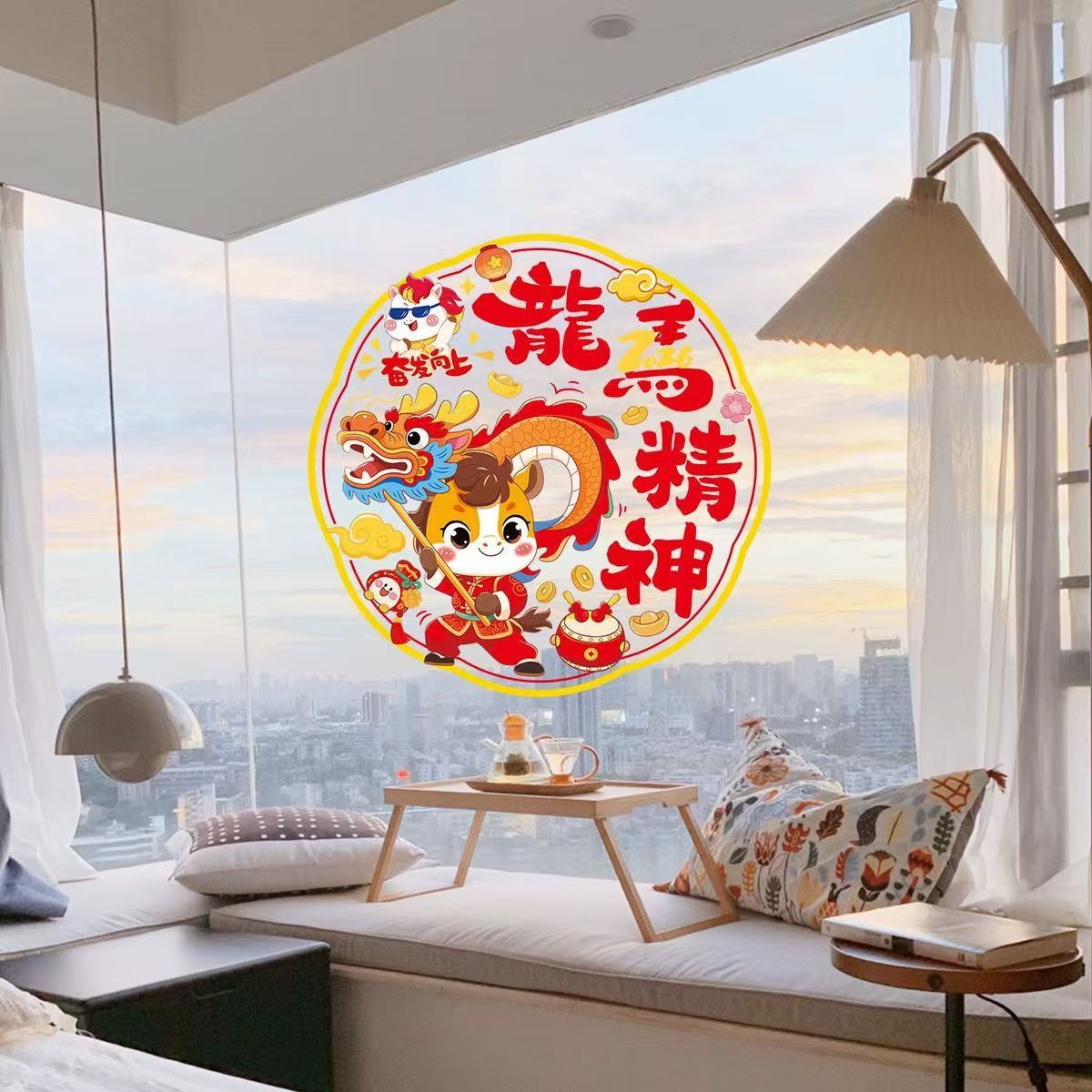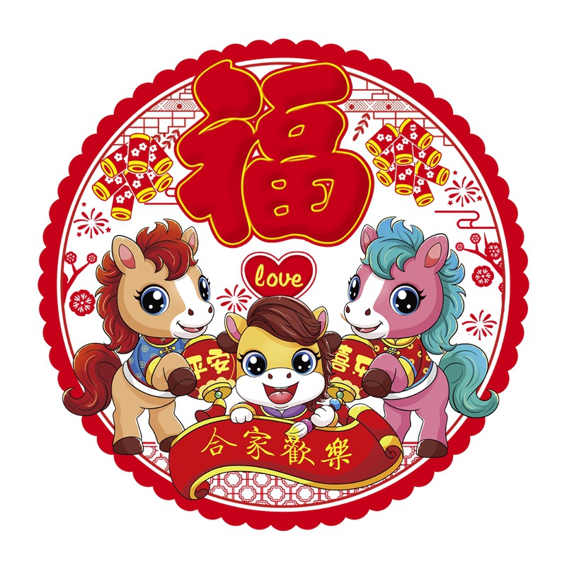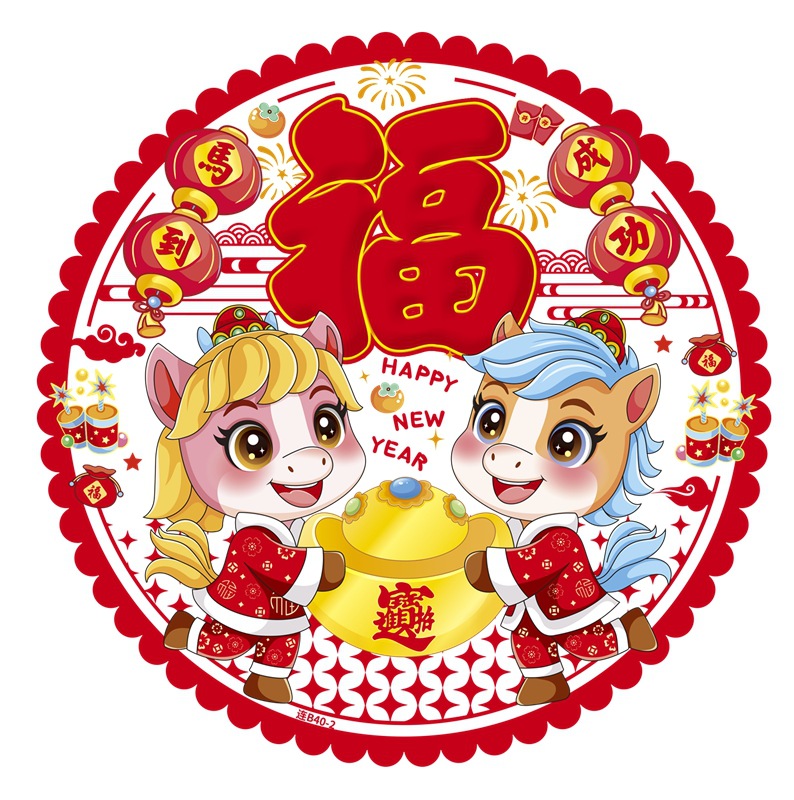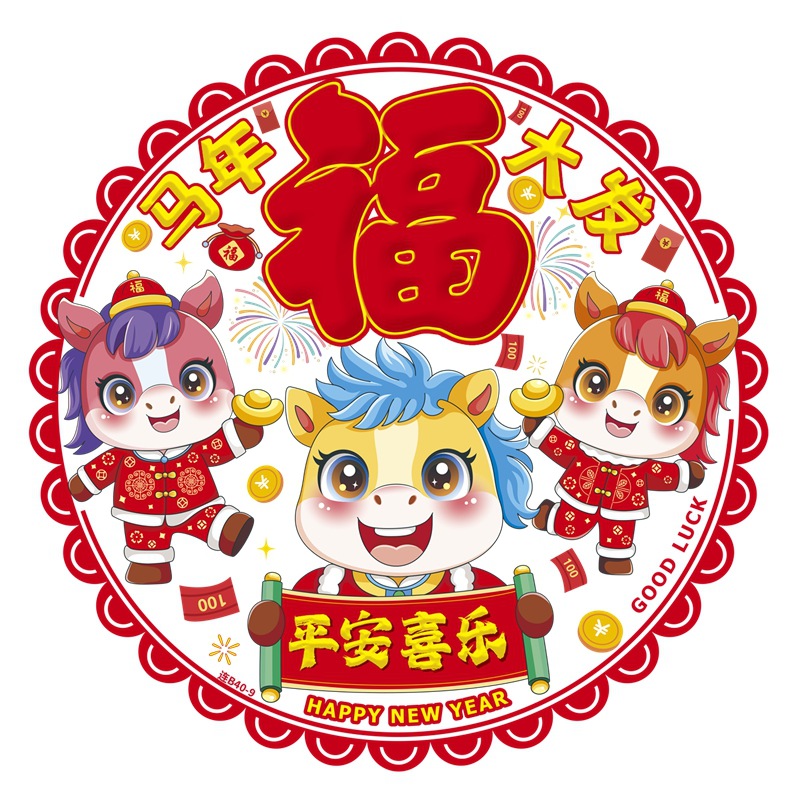2026马年福字静电贴窗花膜剪纸生肖春节玻璃门过年布置装饰厂家