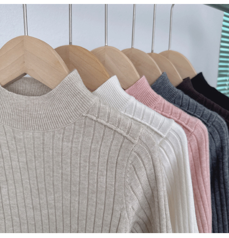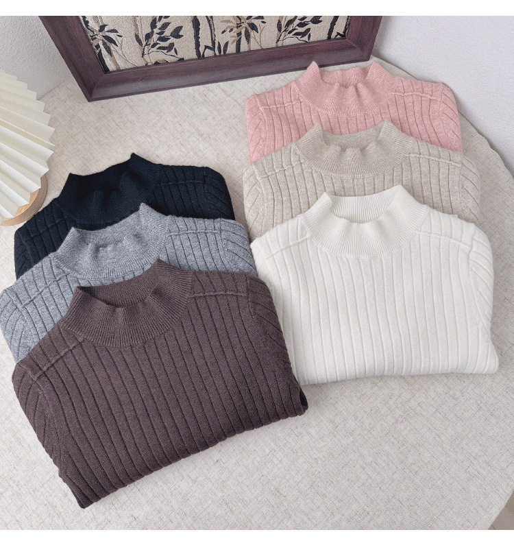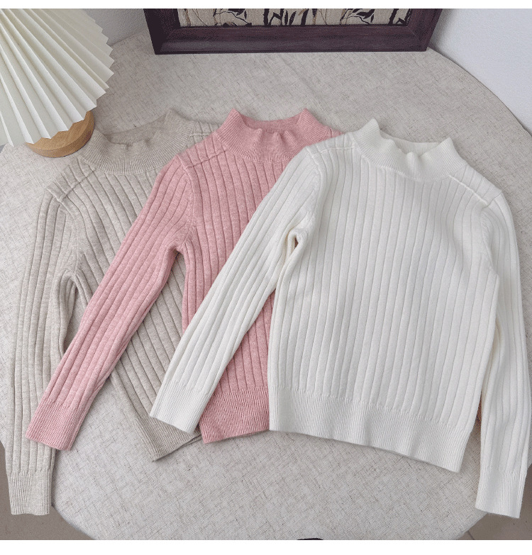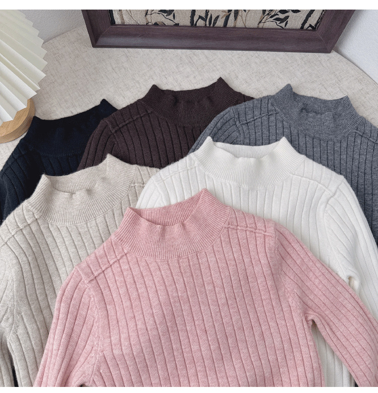 2025儿童宝宝半高领打底衫男女童羊毛衫套头坑条保暖软糯针织毛衣