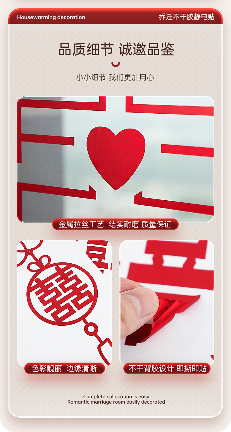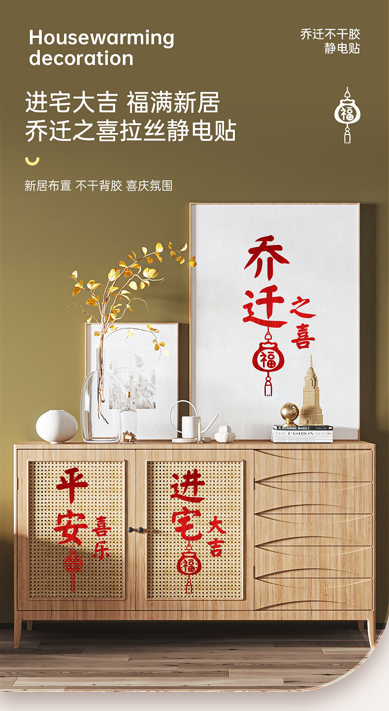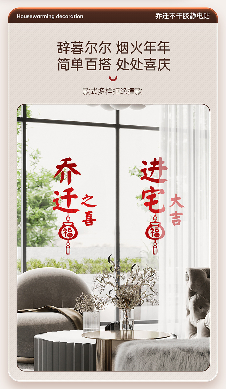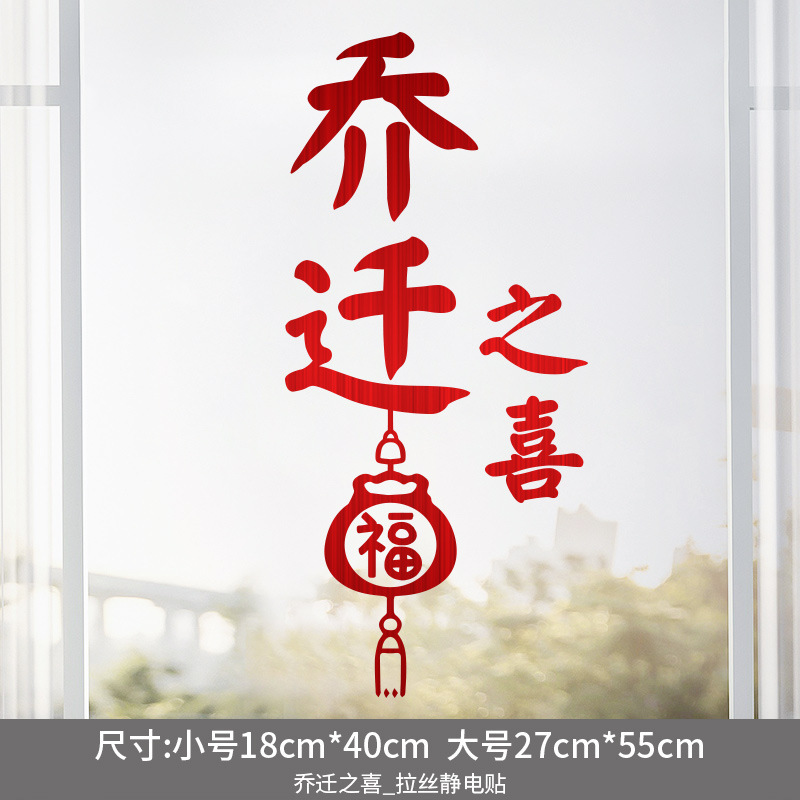 乔迁之喜装饰静电贴玻璃门贴纸新居搬家入宅布置用品福字窗花批发