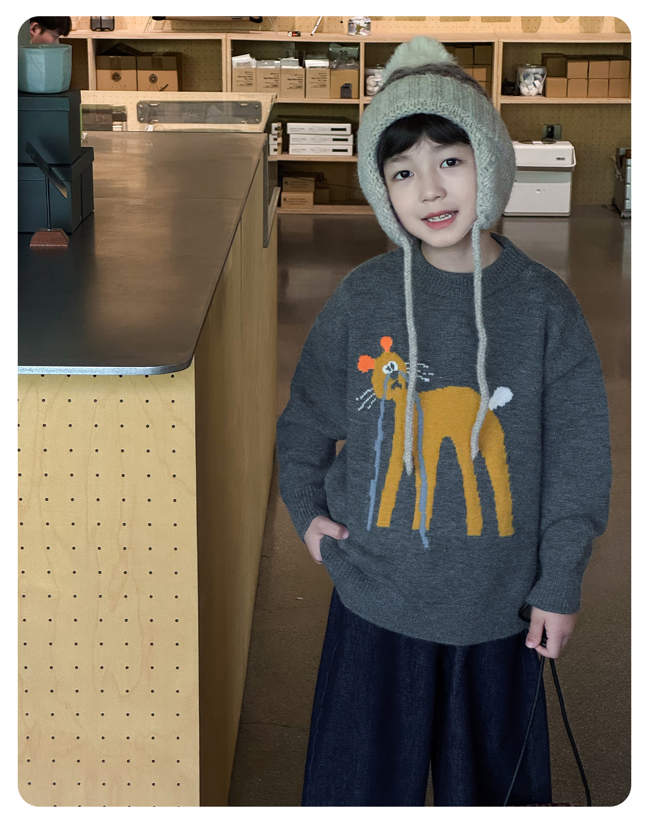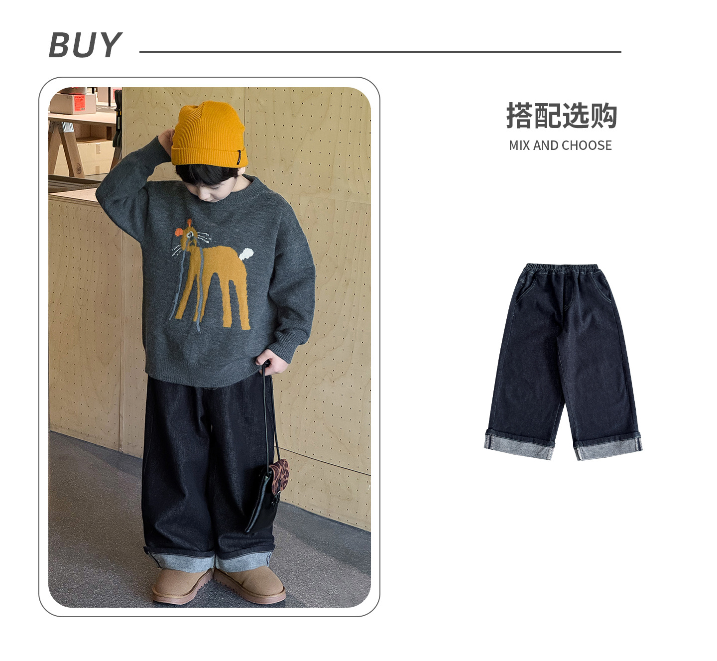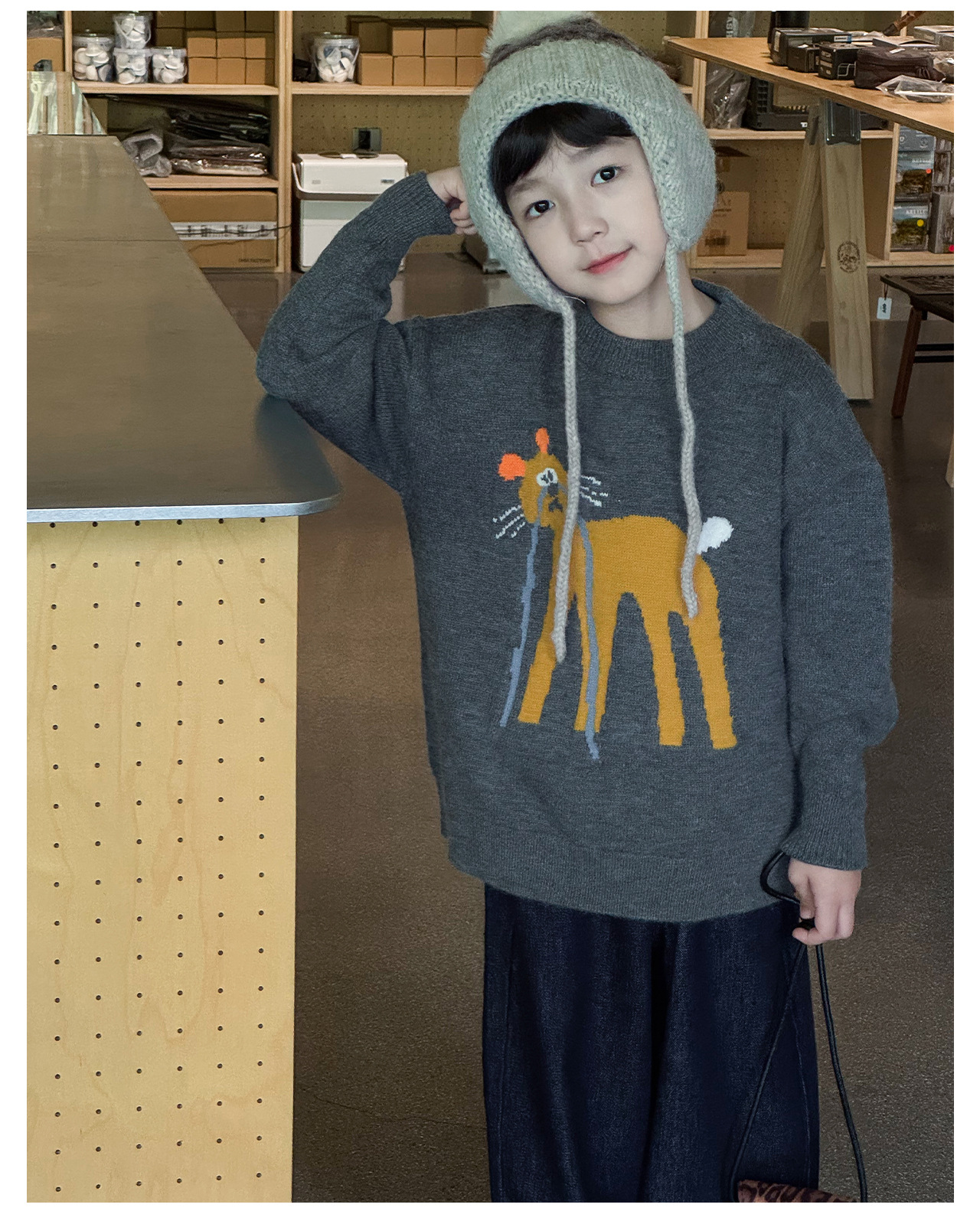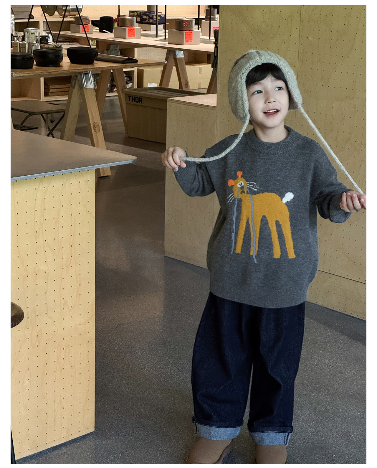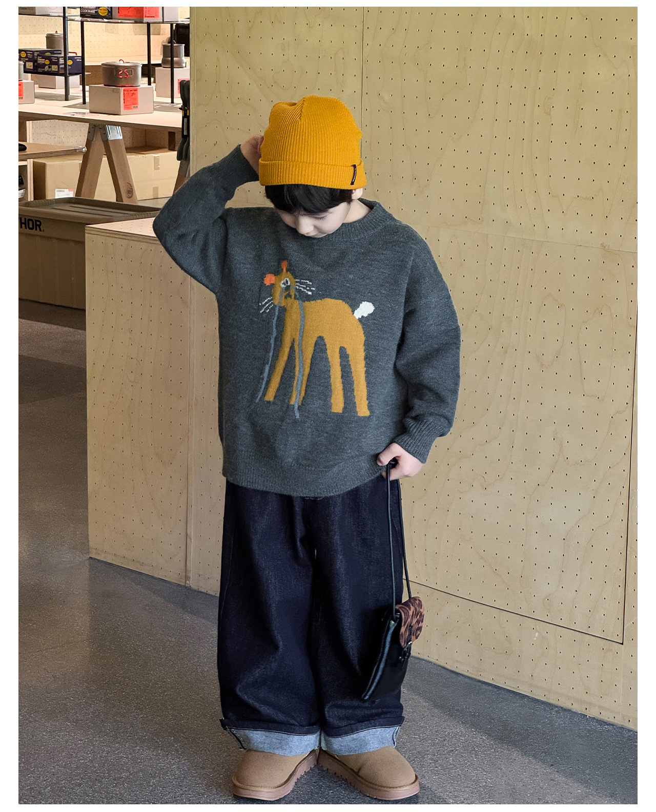 童酷2025男童冬季新款卡通小猫提花宝宝针织衫宽松加厚儿童毛衣潮