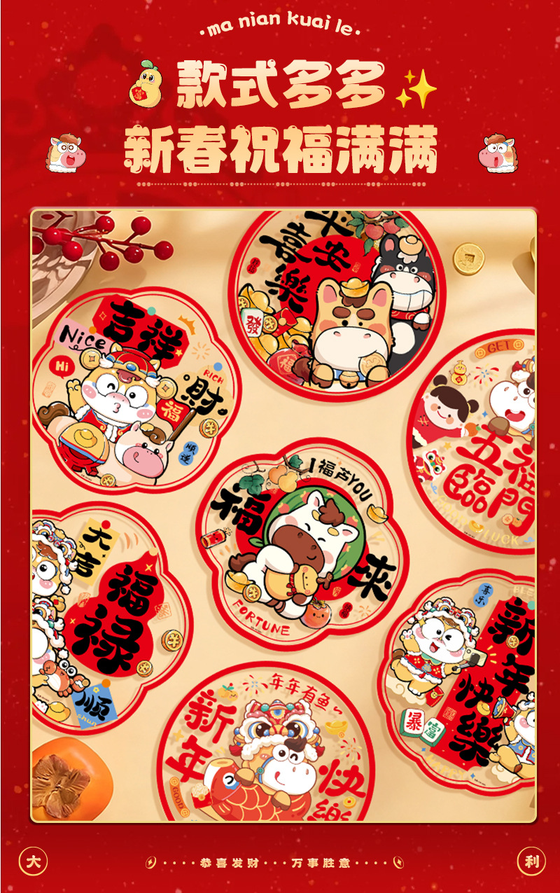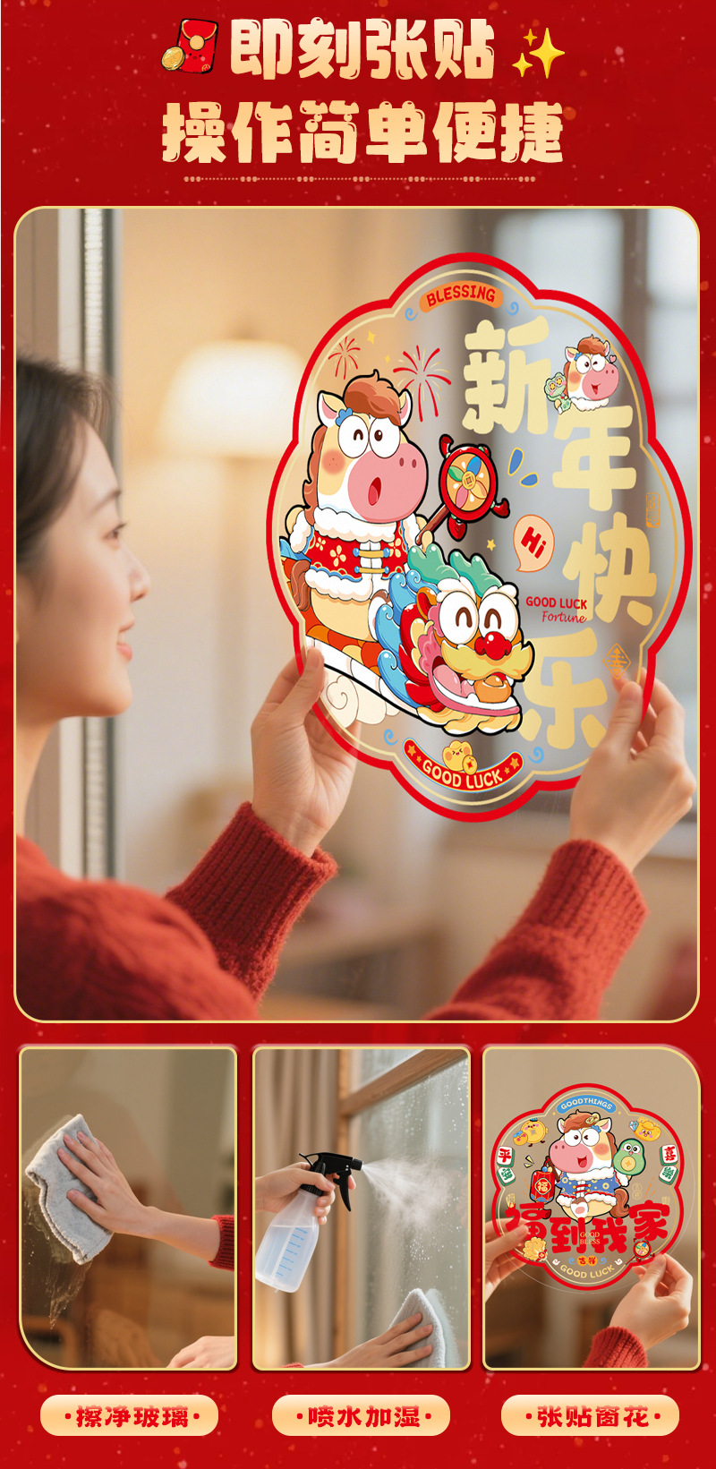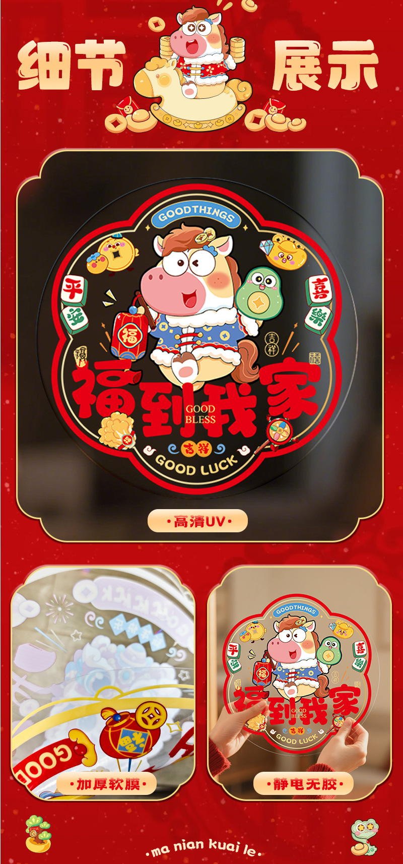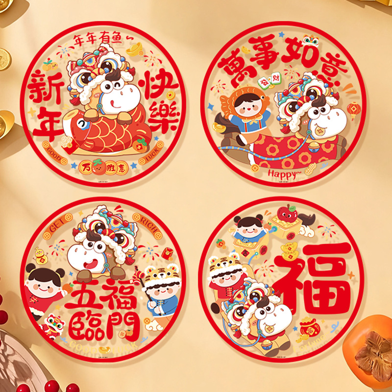 2026新款窗花静电贴新居剪纸马年福字窗贴门贴玻璃贴过年布置装饰