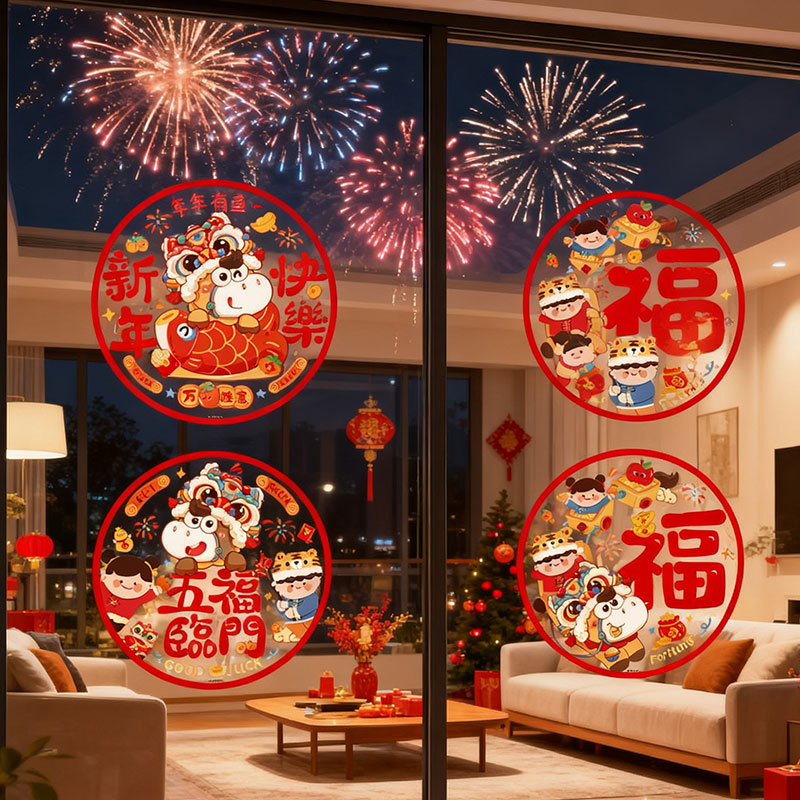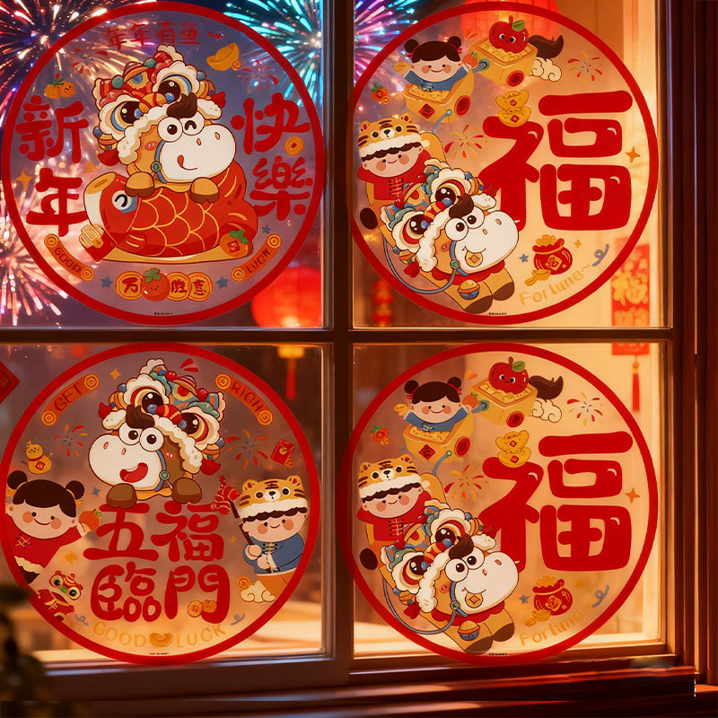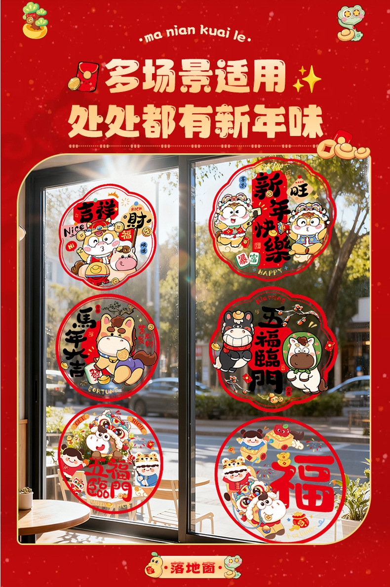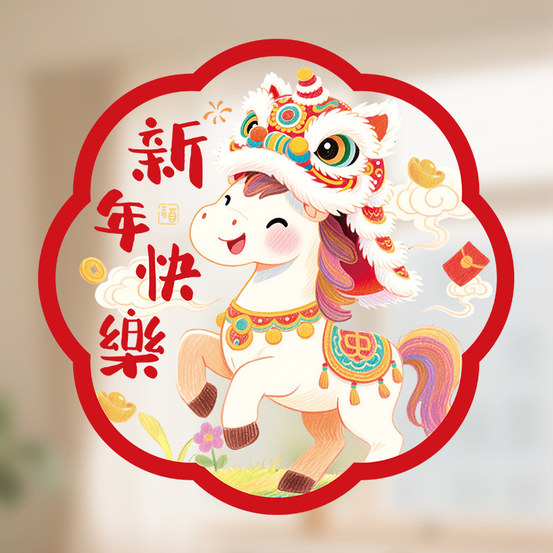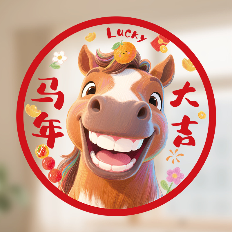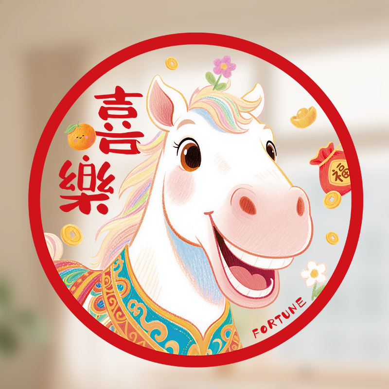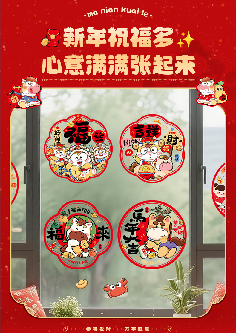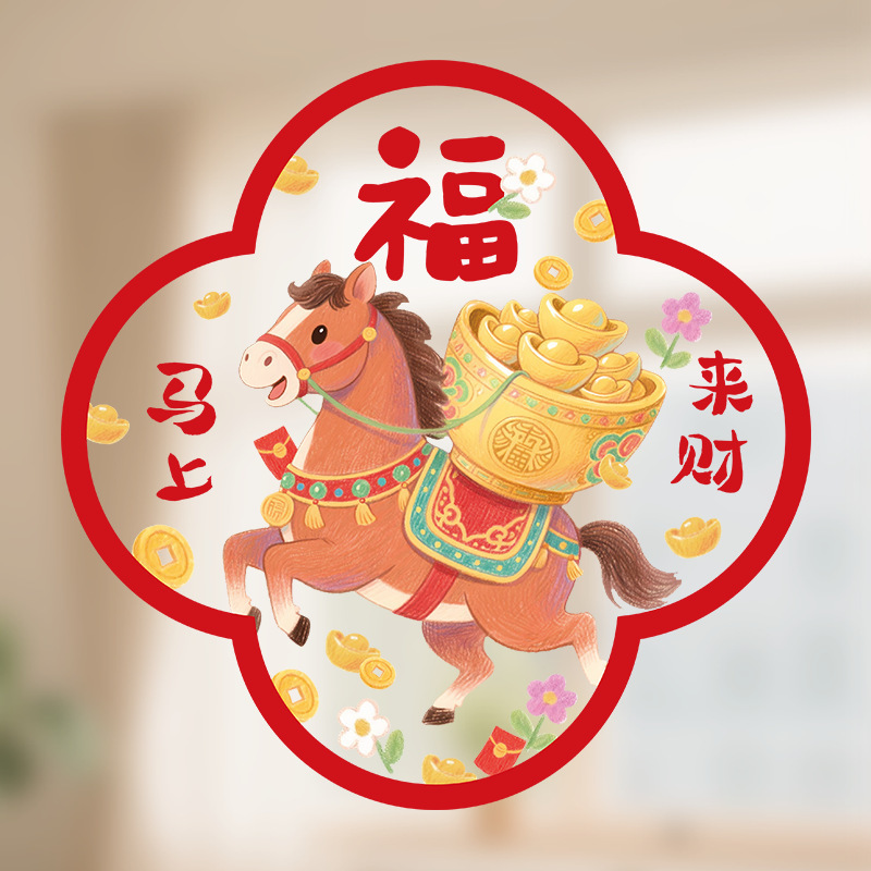新款2026马年生肖福字窗花静电贴春节窗户玻璃贴新年装饰布置用品