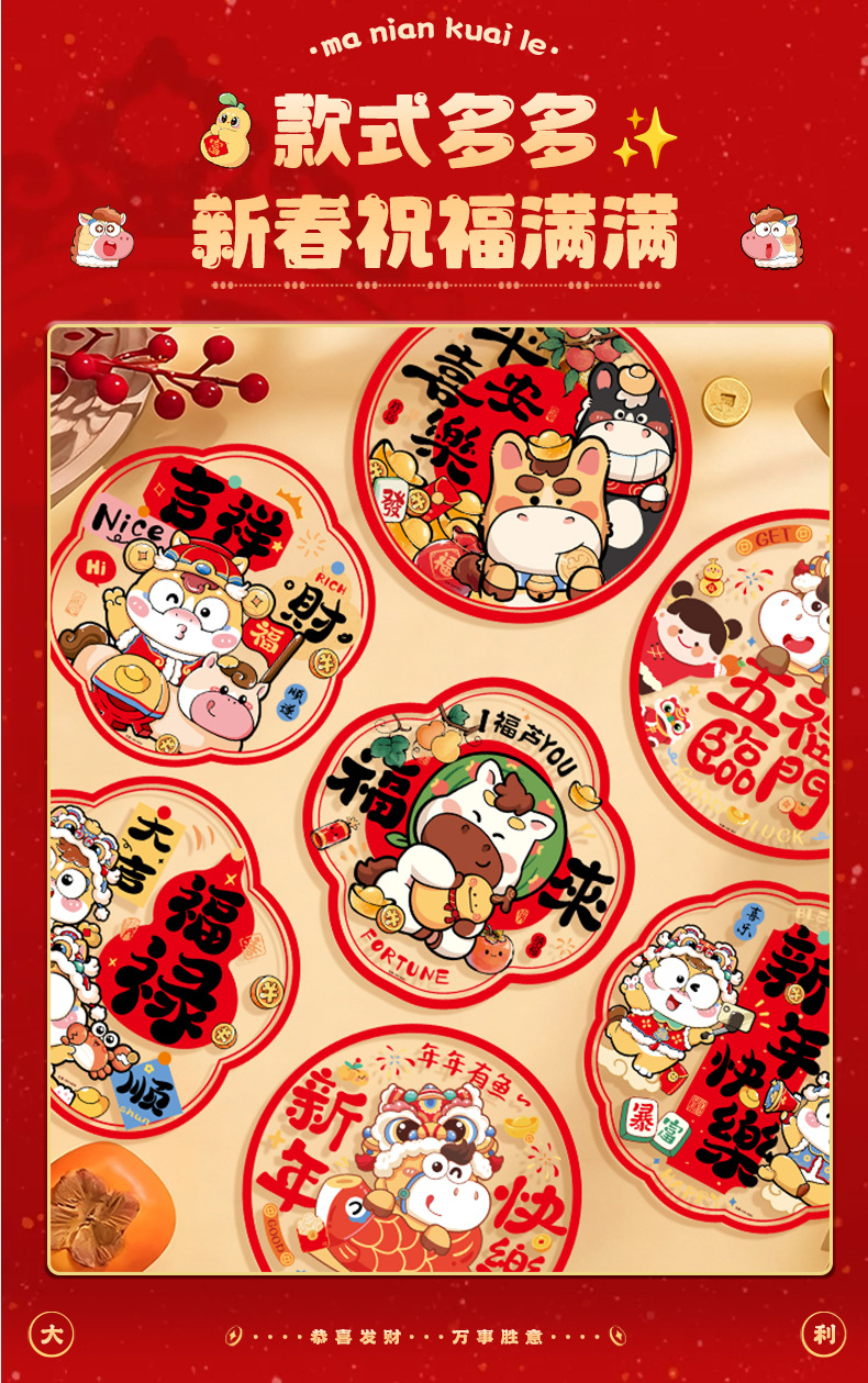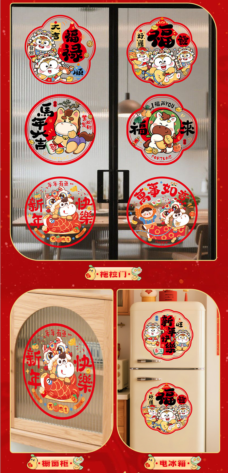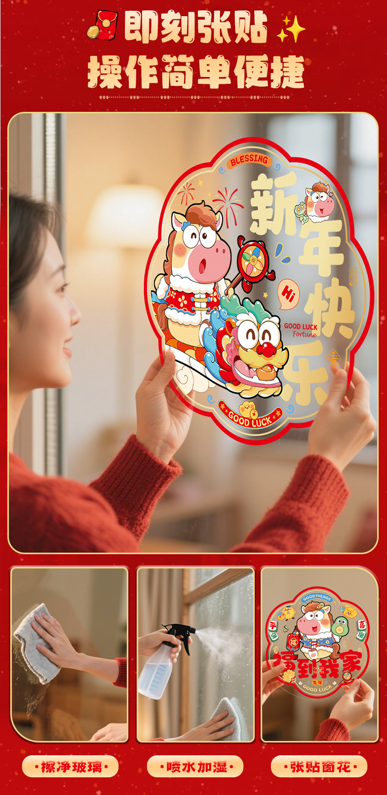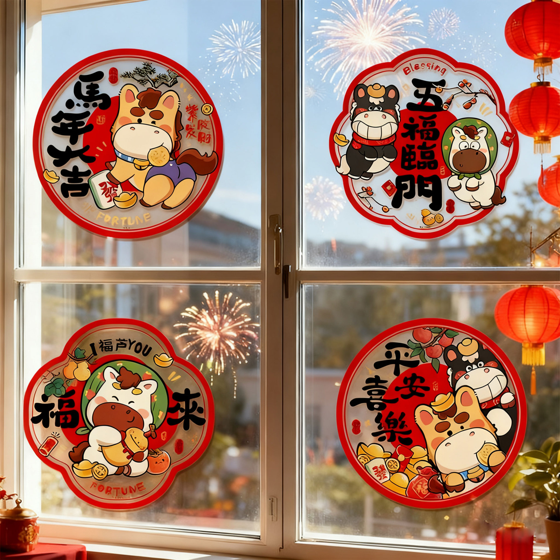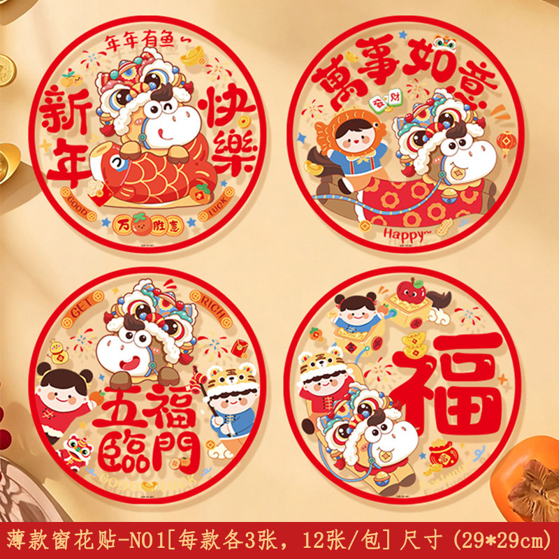 新款2026马年生肖福字窗花静电贴春节窗户玻璃贴新年装饰布置用品
