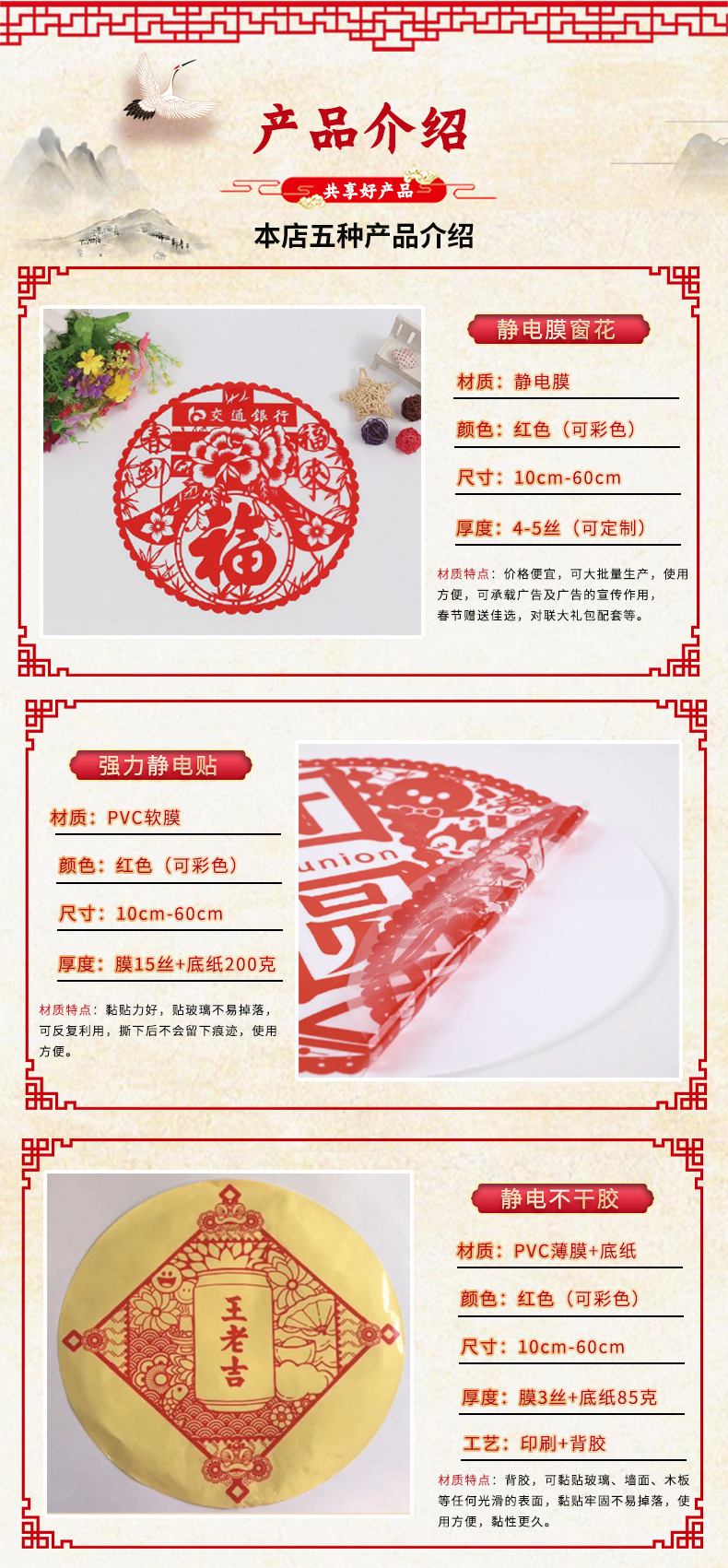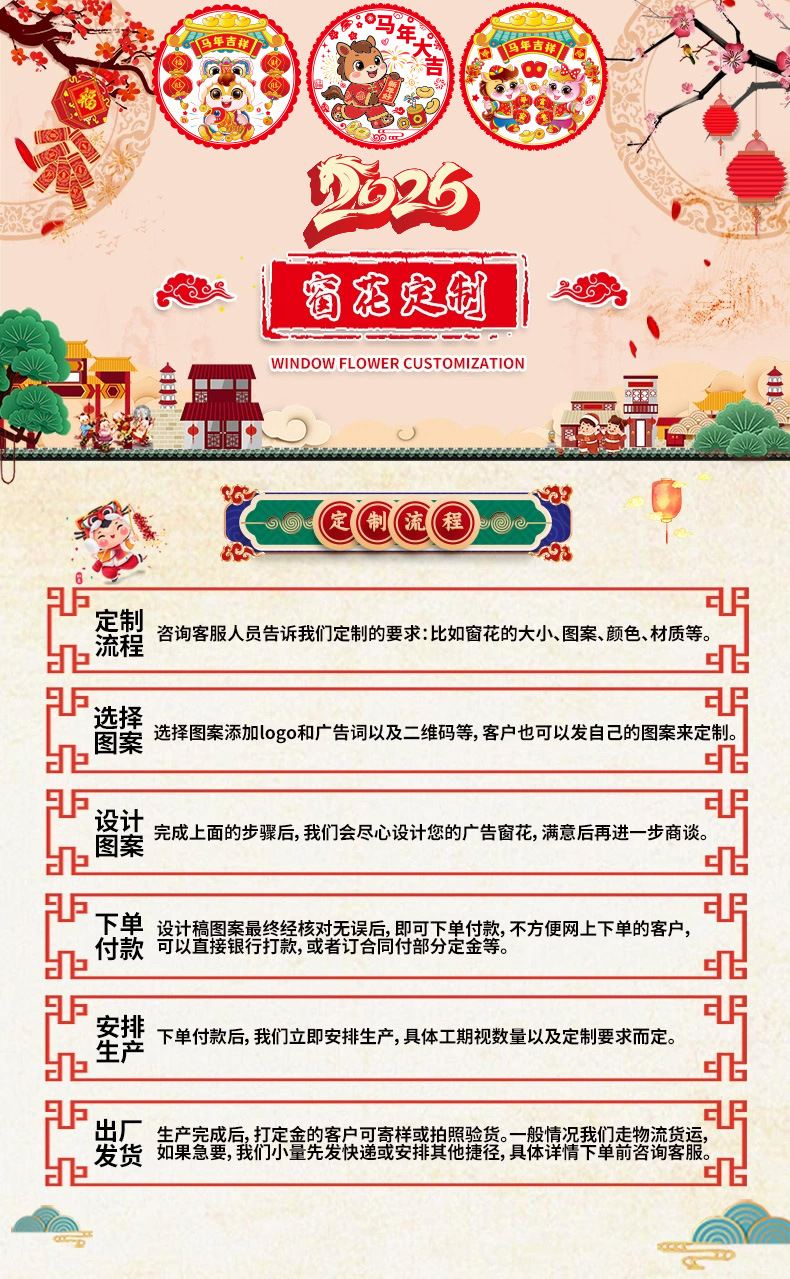2026马年静电膜窗花剪纸厂家直销批发新年新款春节马年窗花福字贴