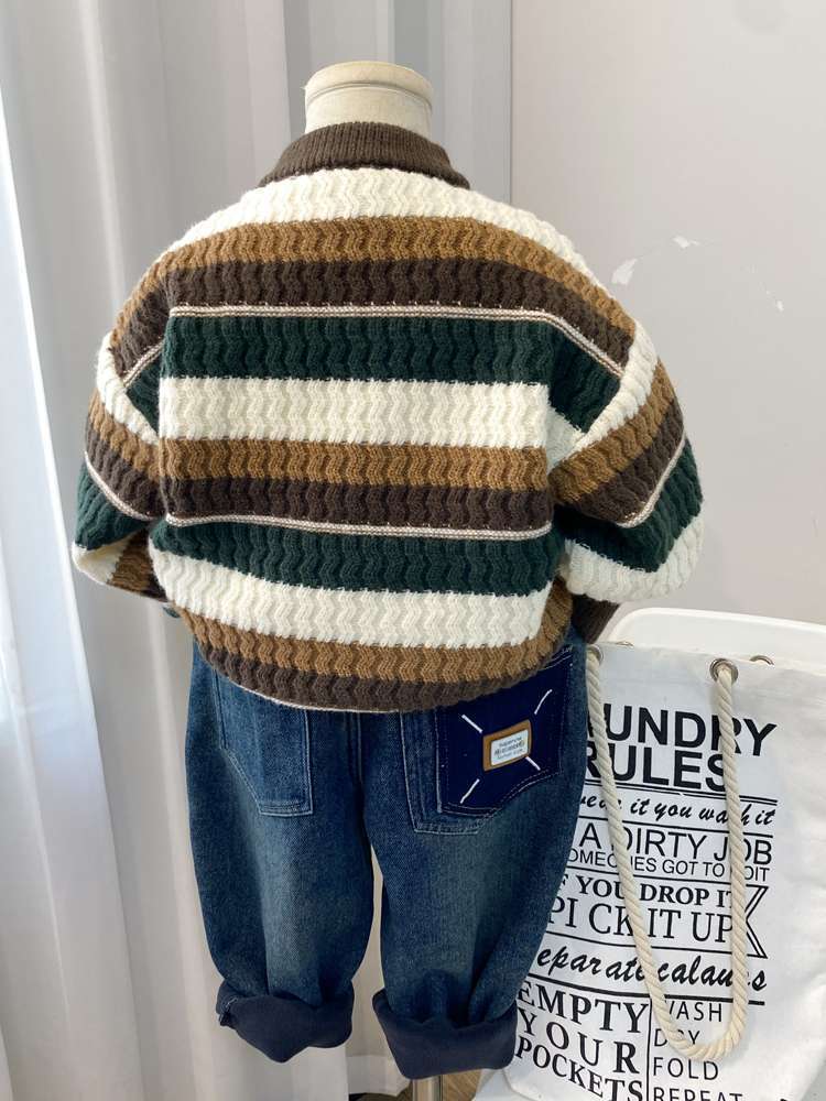 男童毛线衣秋冬新款毛衣儿童加厚保暖衣服韩版洋气条纹打底衫
