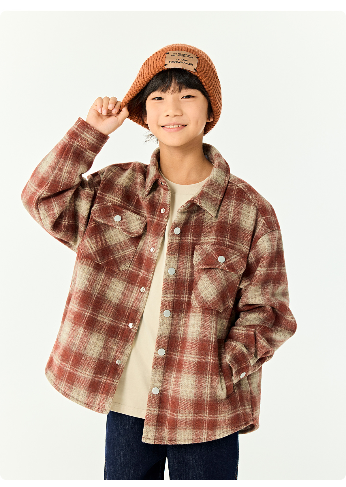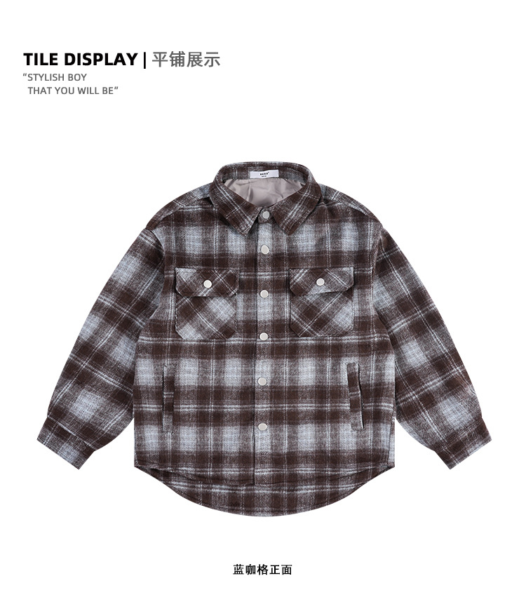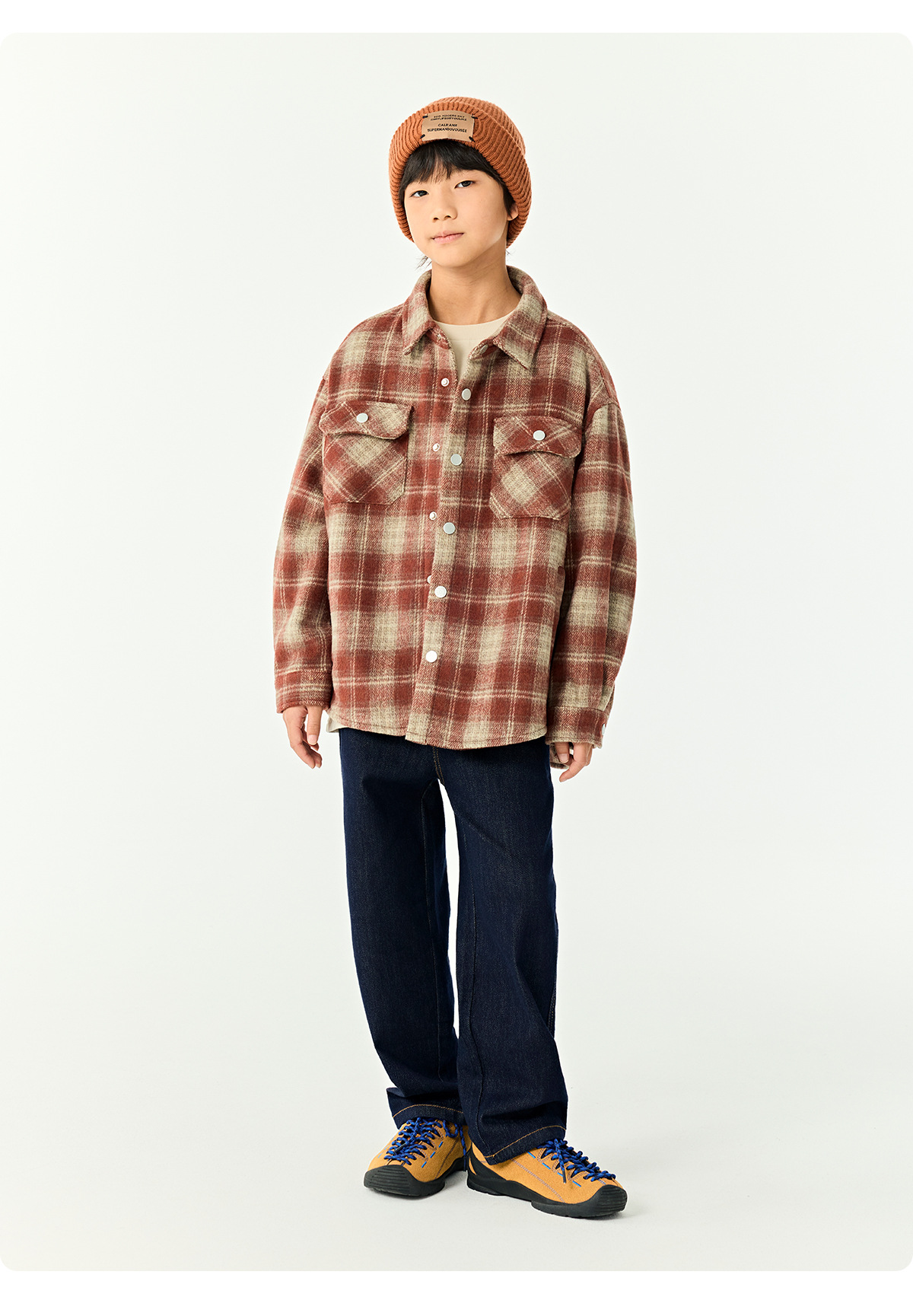 童装25秋冬加厚女男童磨毛保暖格子衬衫外套儿童中大童休闲上衣