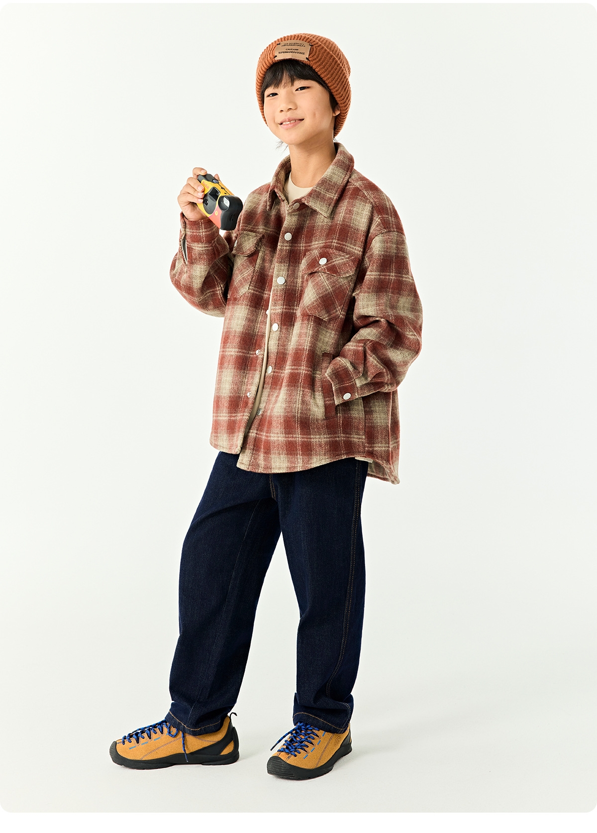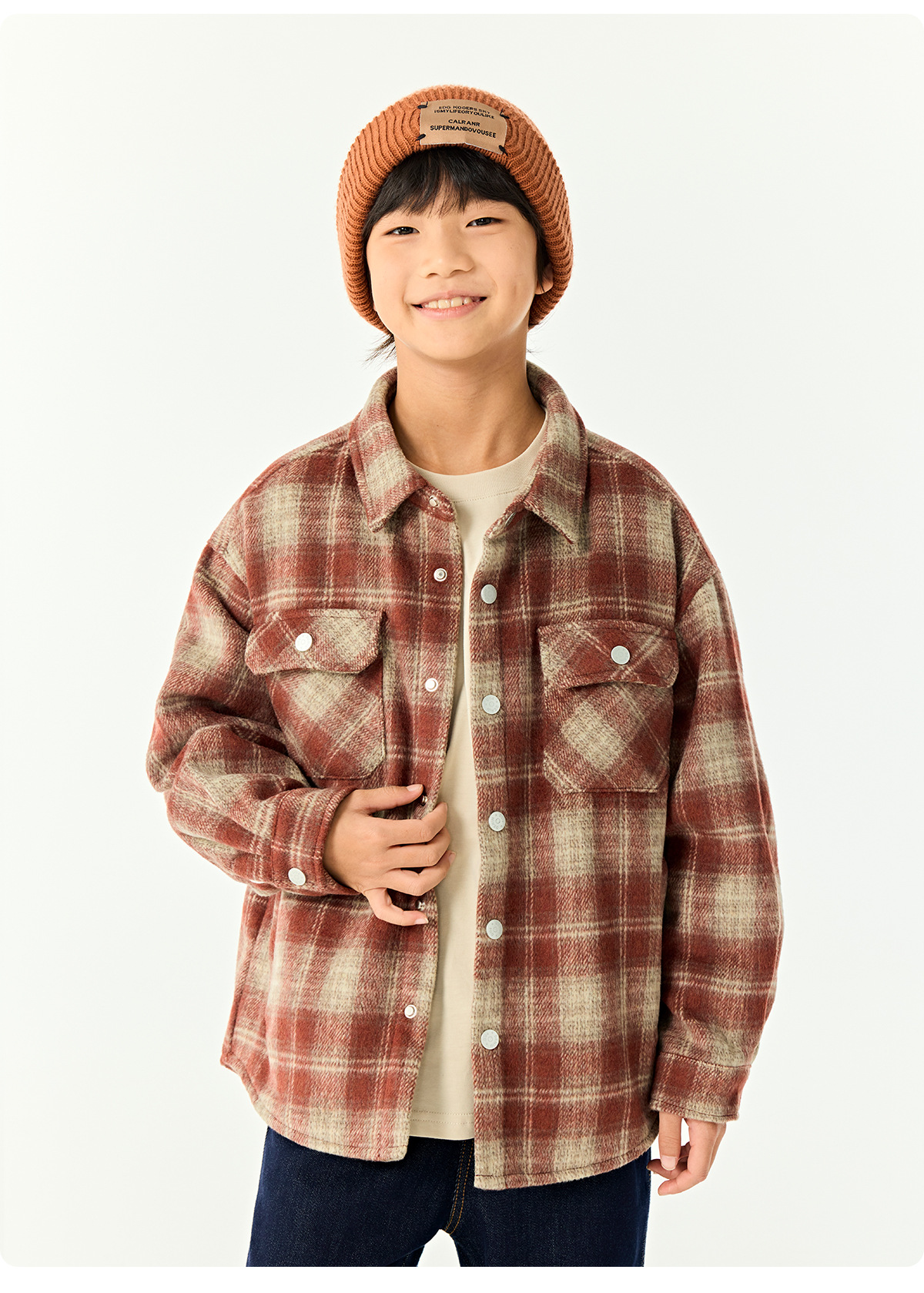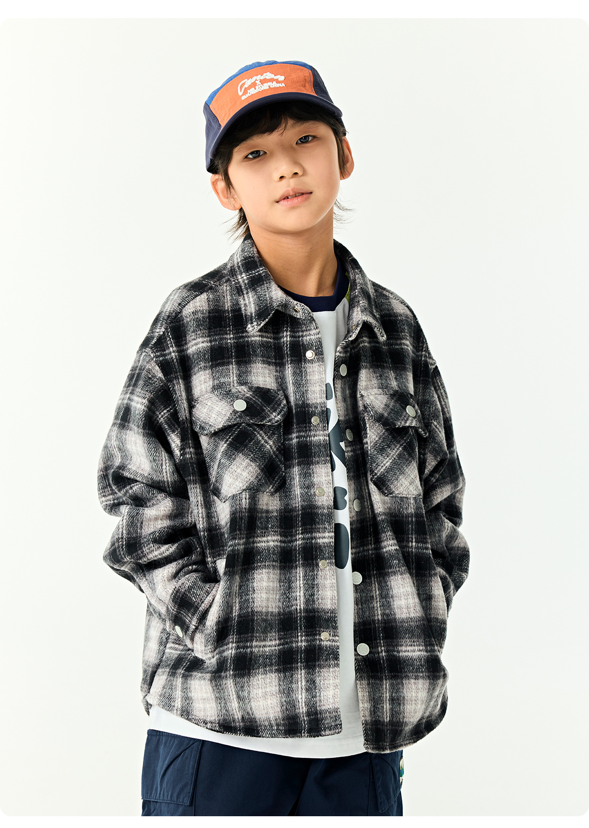 童装25秋冬加厚女男童磨毛保暖格子衬衫外套儿童中大童休闲上衣
