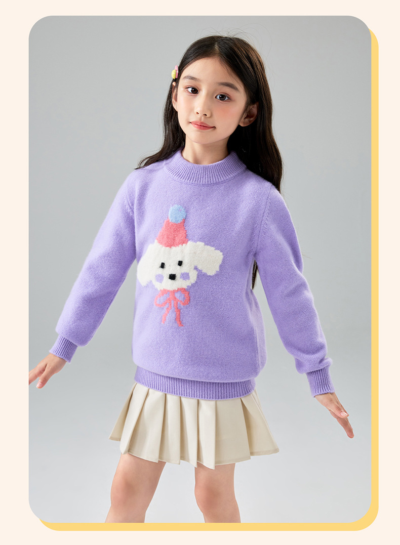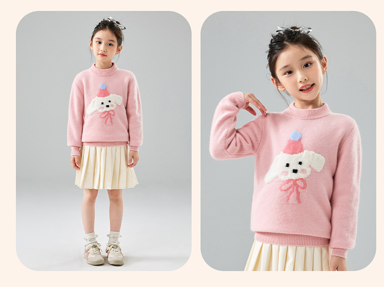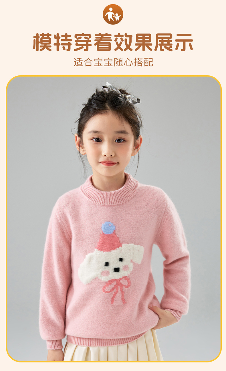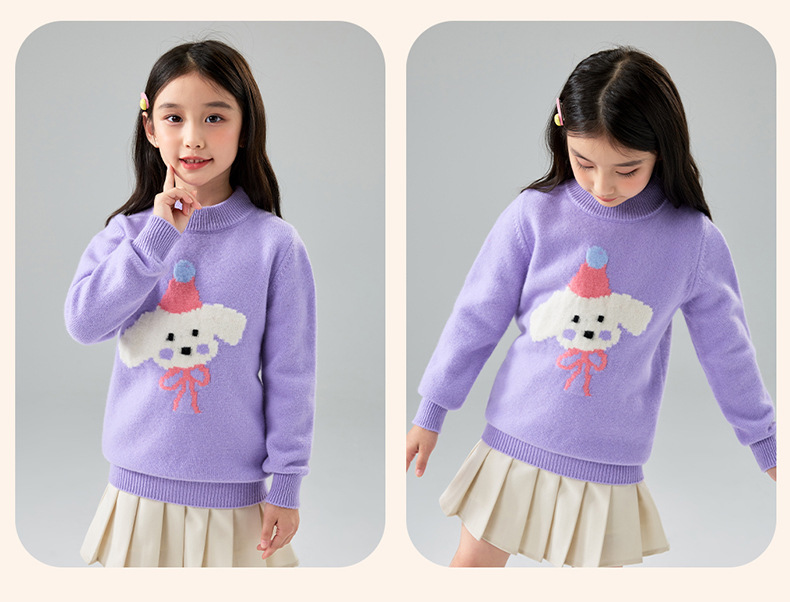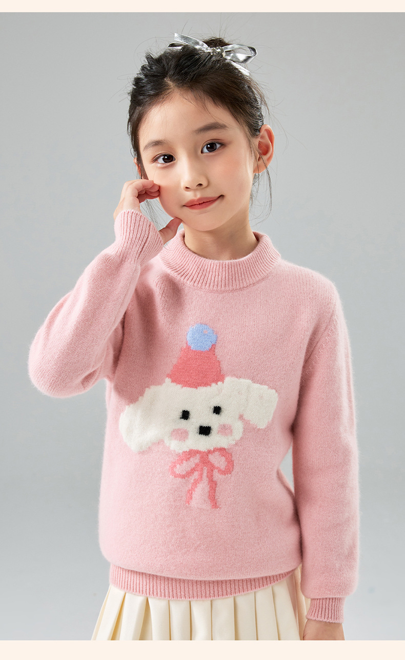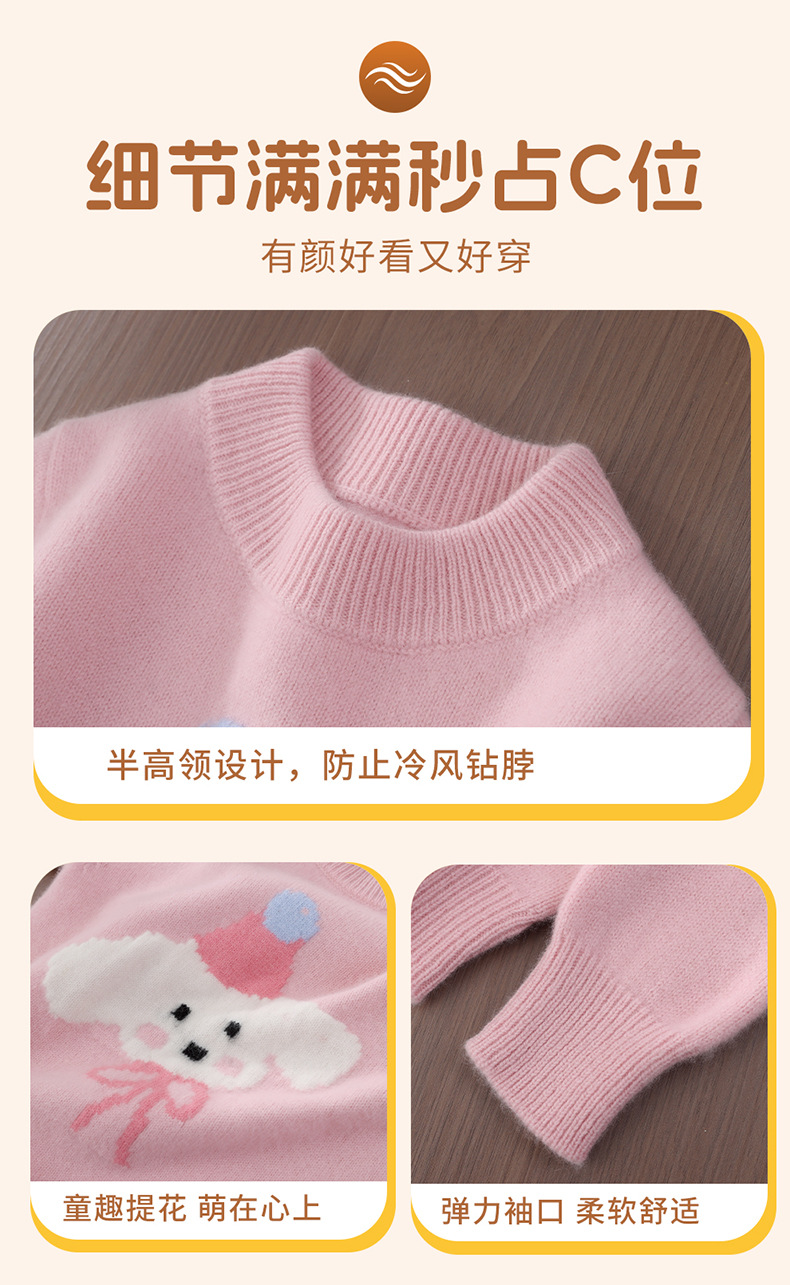 100%羊毛儿童羊毛衫半高领卡通提花女童加厚保暖针织打底衫毛衣