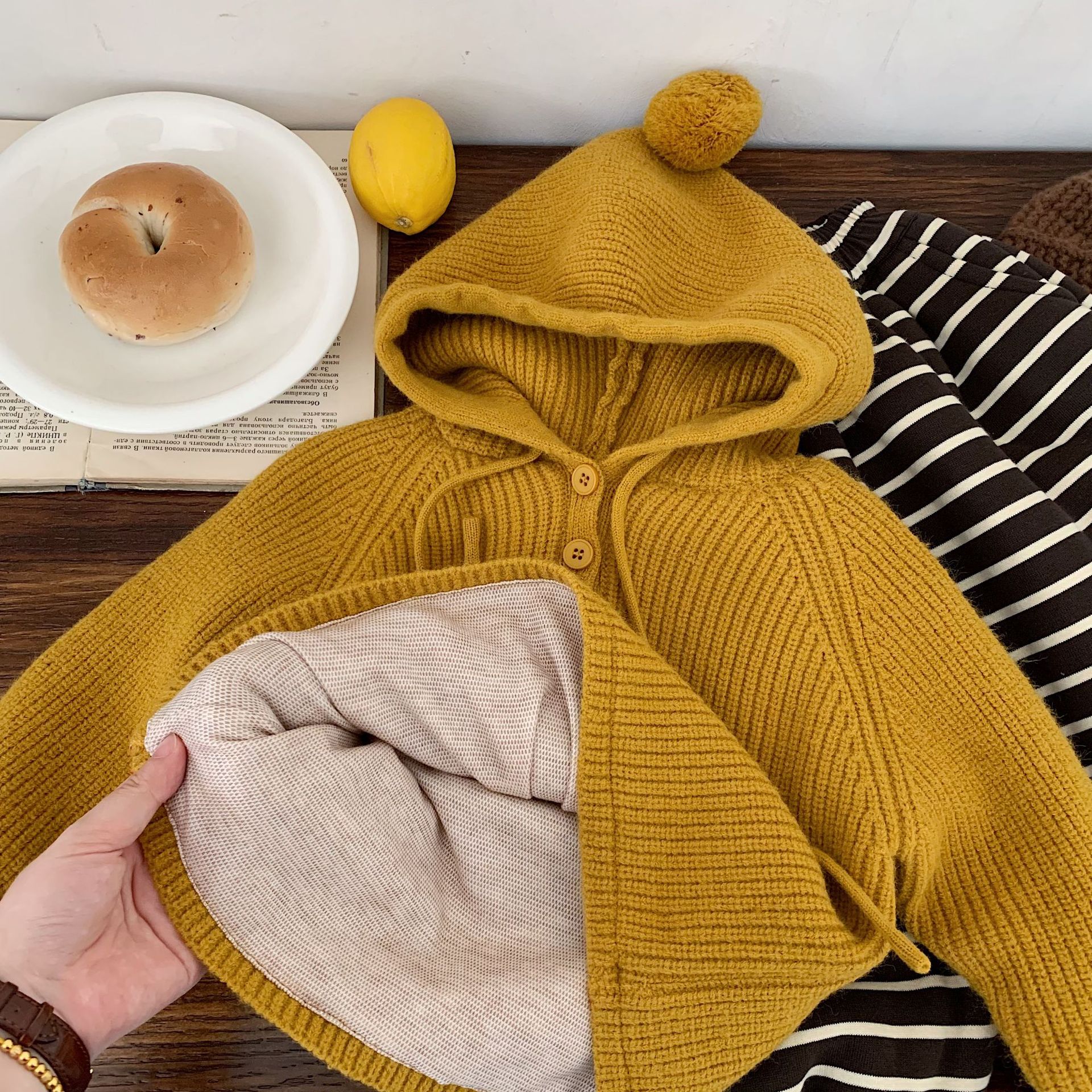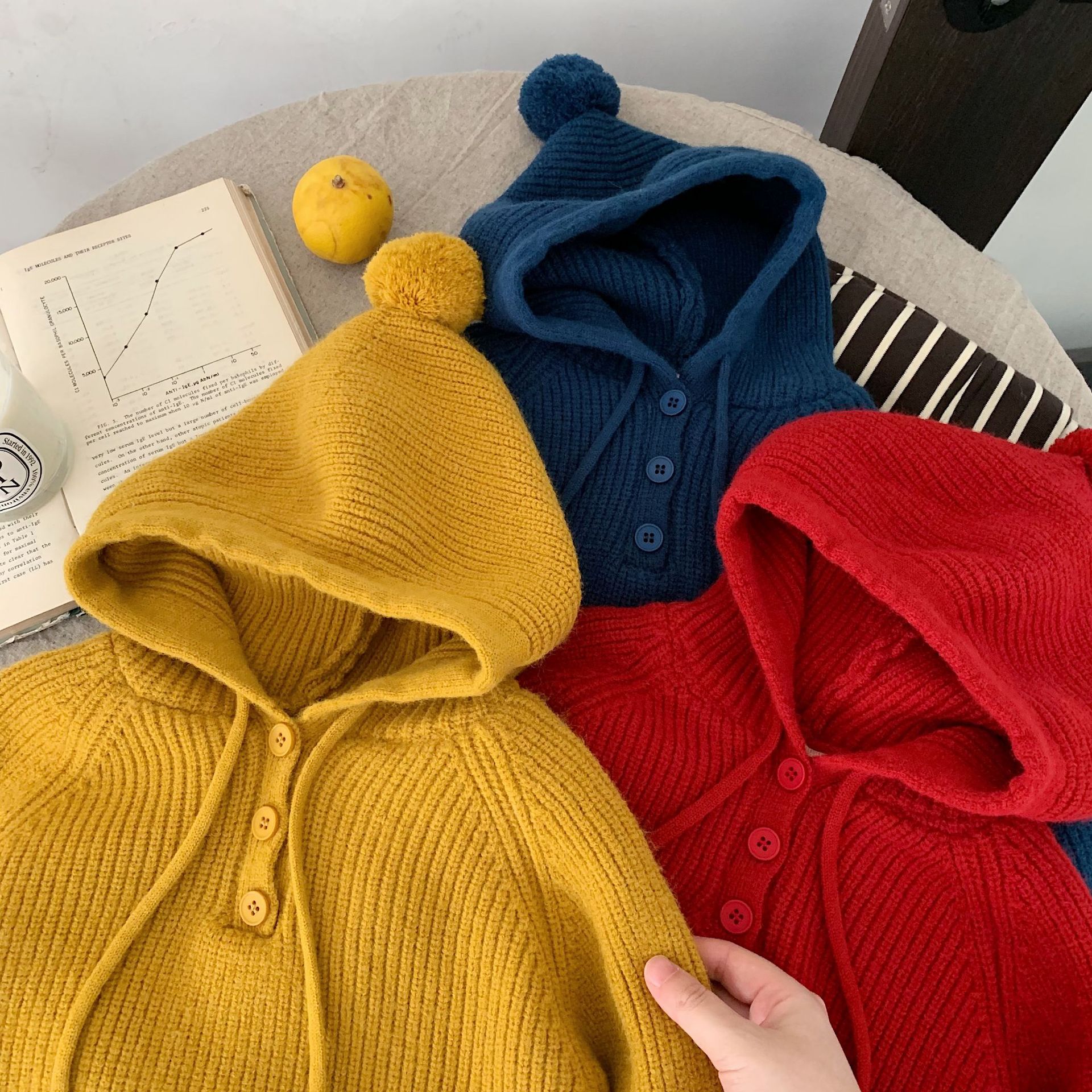 儿童加厚毛衣2025冬季新品中小童连帽男童洋气韩版女童毛线衫上衣
