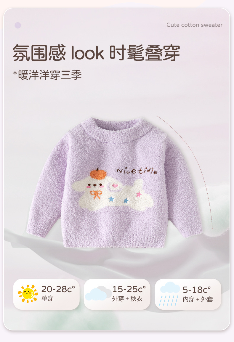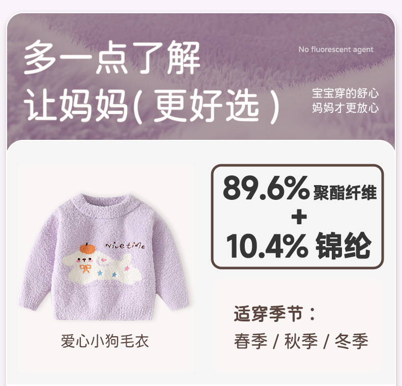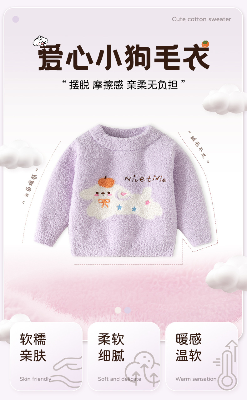 爱心小狗云感柔软婴儿毛衣A类加厚款女童毛衣半边绒蓬松宝宝毛衣