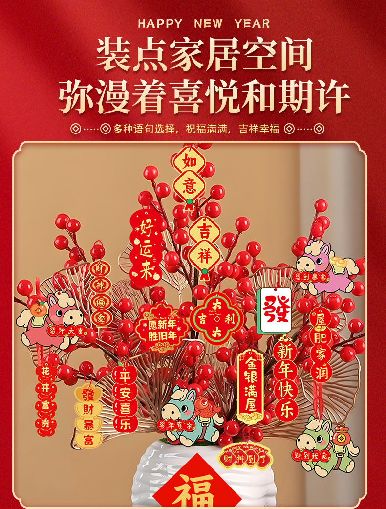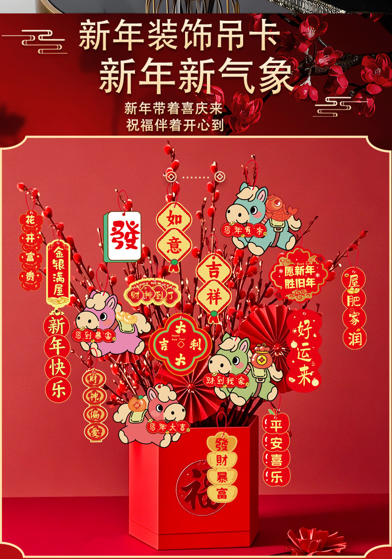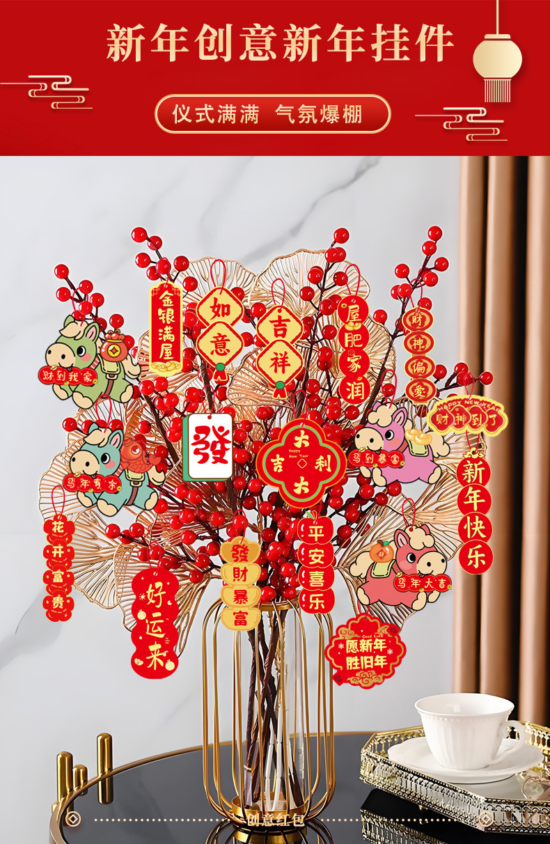 客厅春节福桶挂件年宵花吊卡挂饰抱抱桶新年小挂件挂饰装饰用品