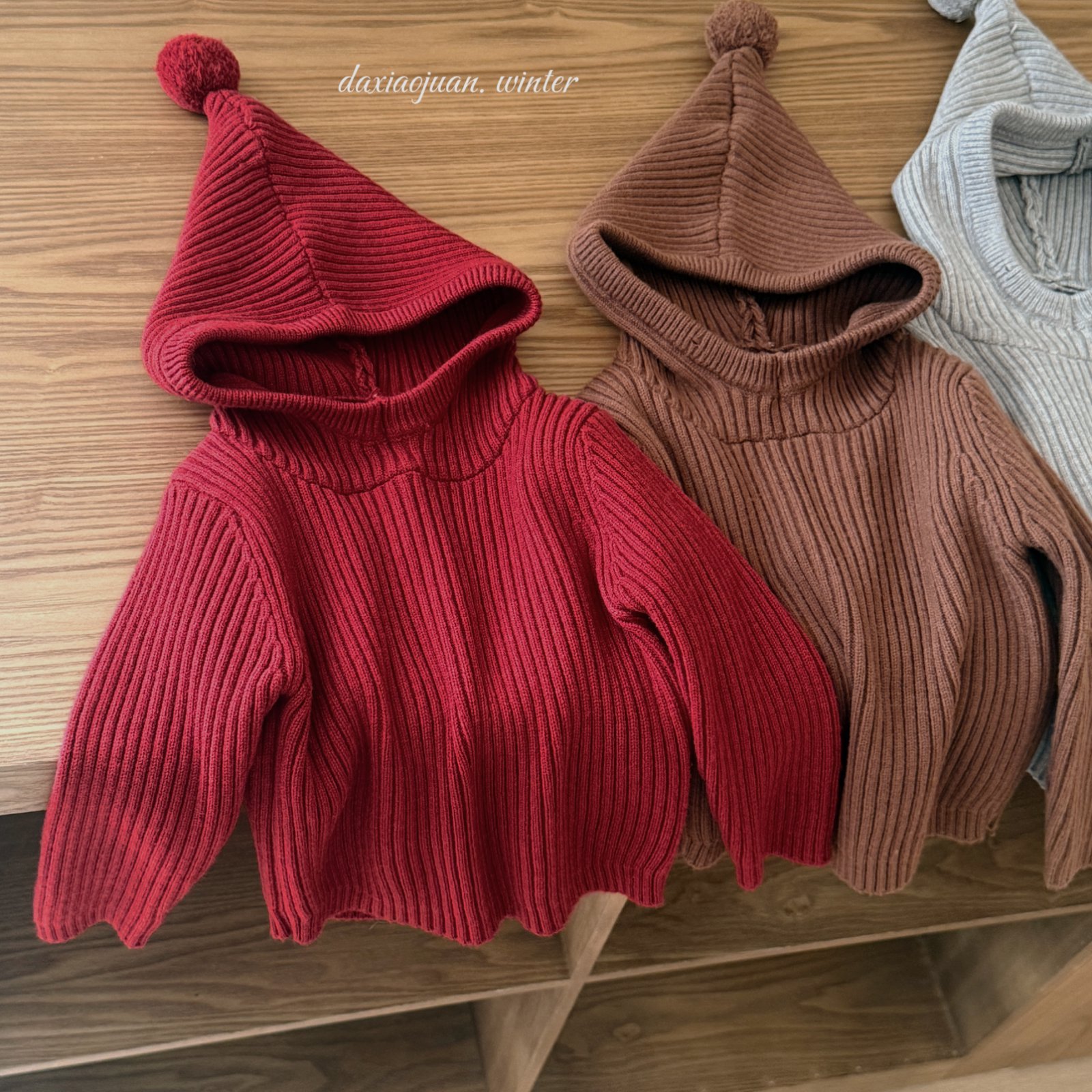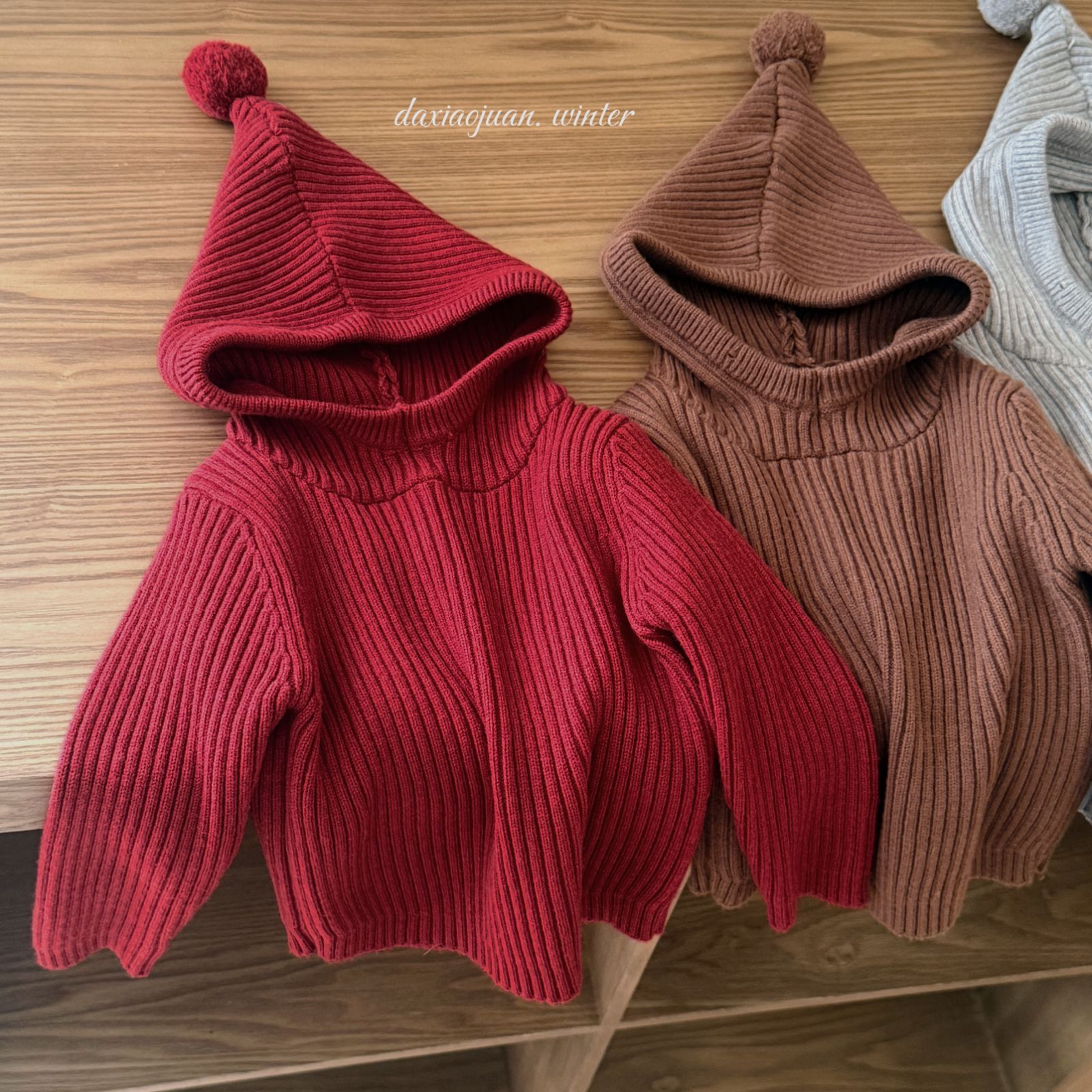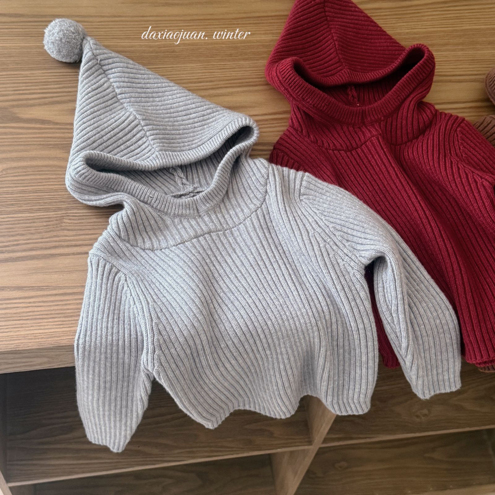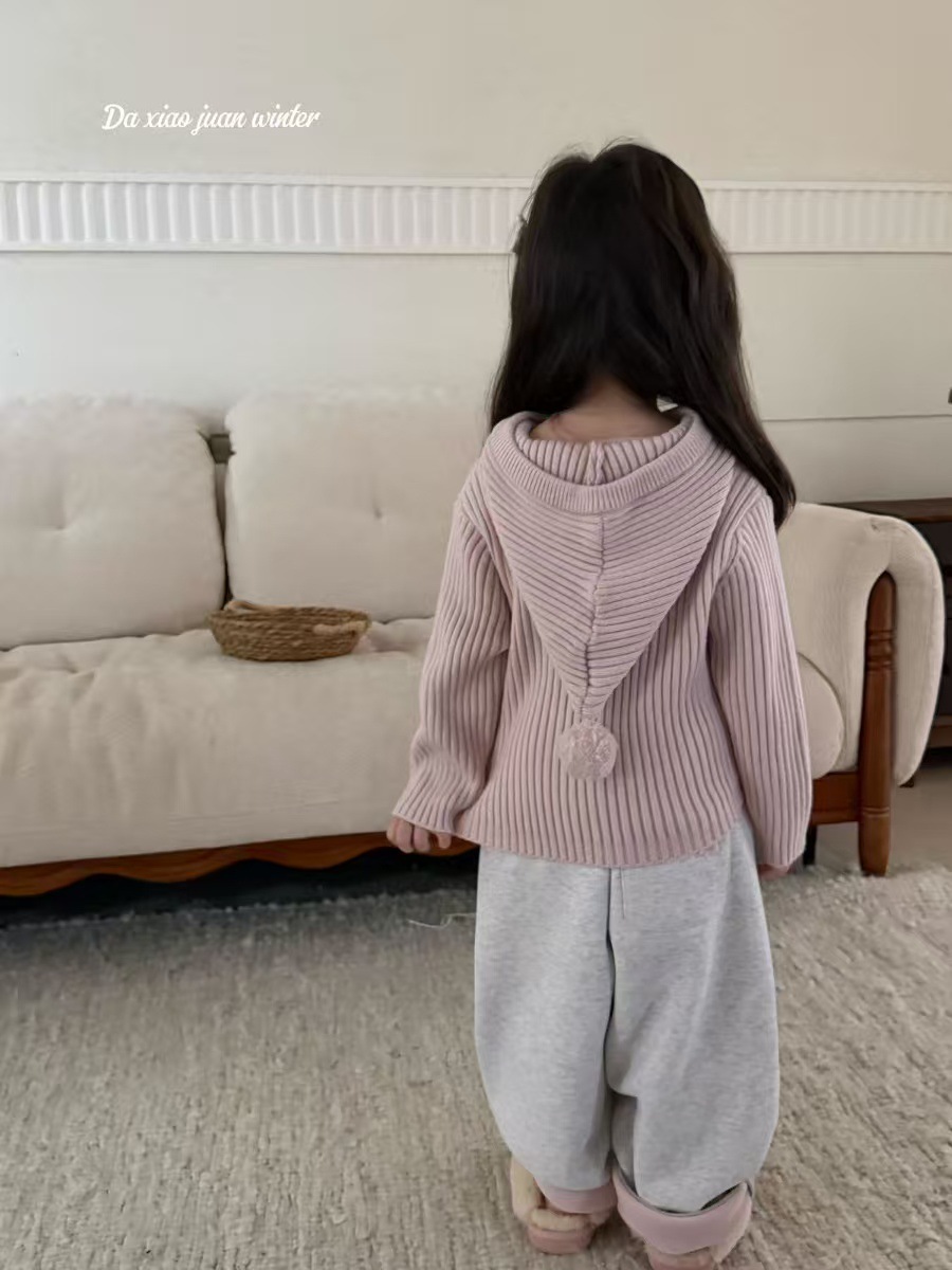大小卷儿童毛衣25深秋冬新款男宝女宝韩版纯色尖尖帽针织百搭毛衣