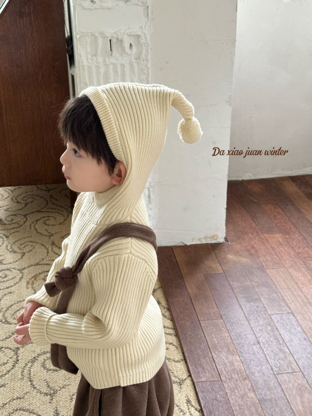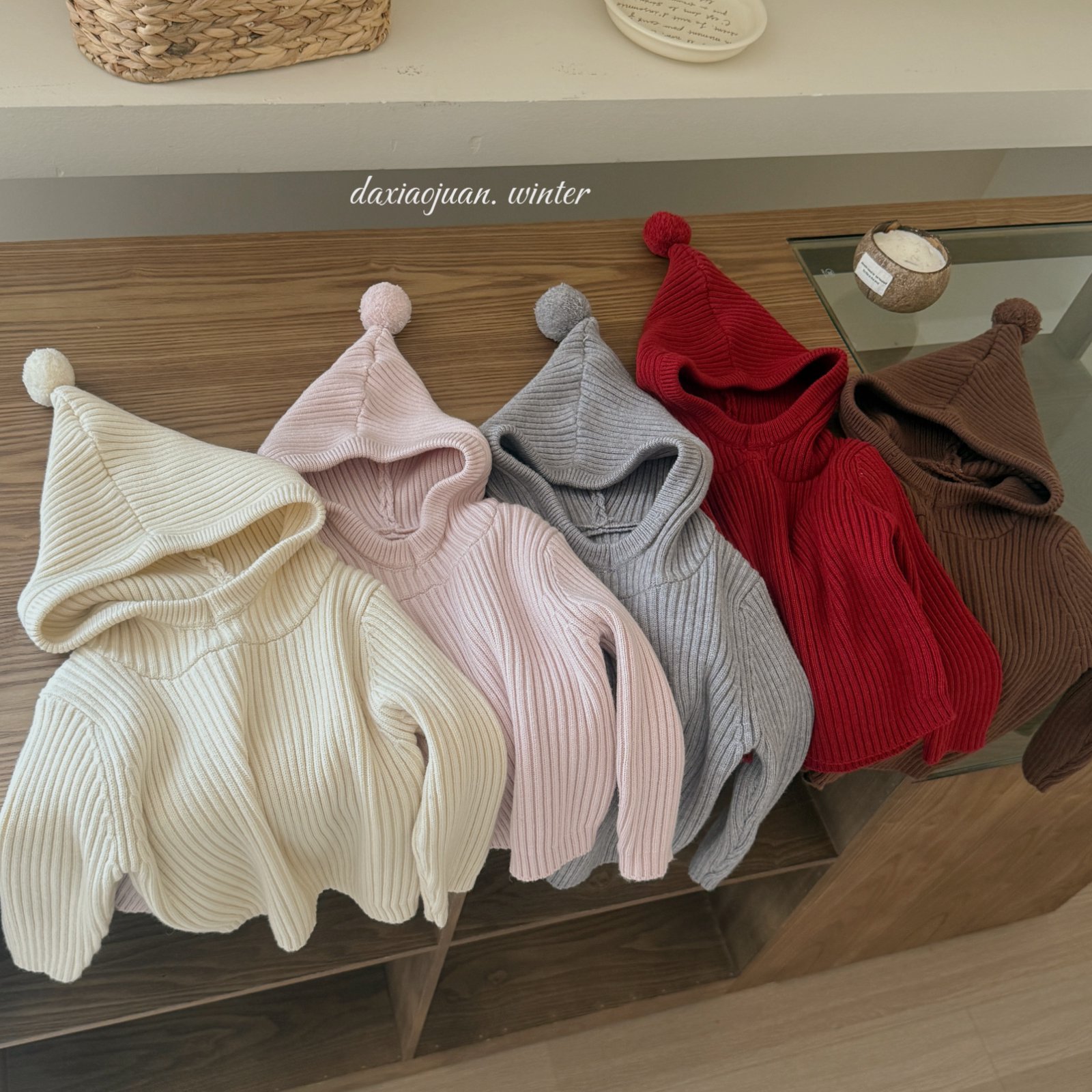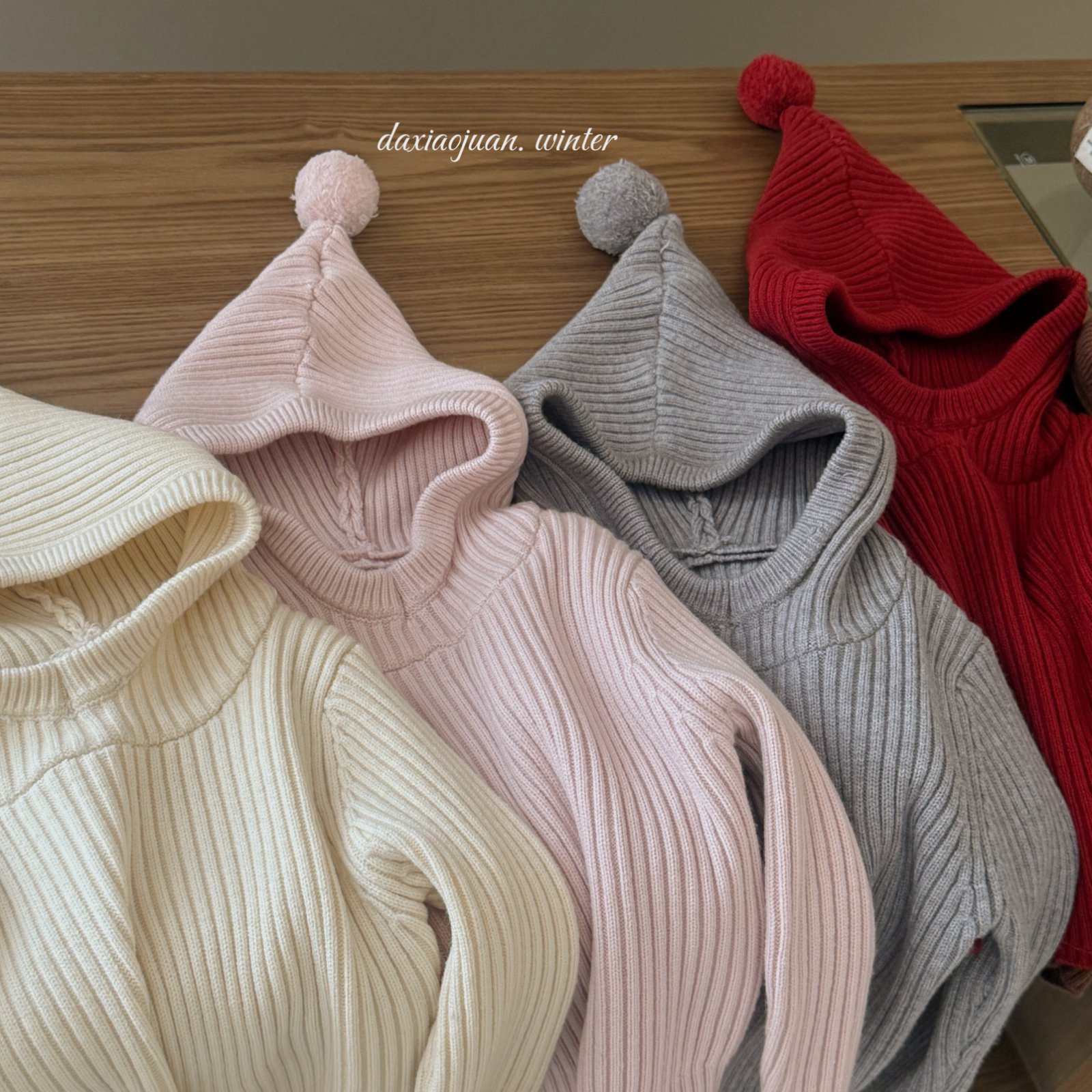 大小卷儿童毛衣25深秋冬新款男宝女宝韩版纯色尖尖帽针织百搭毛衣