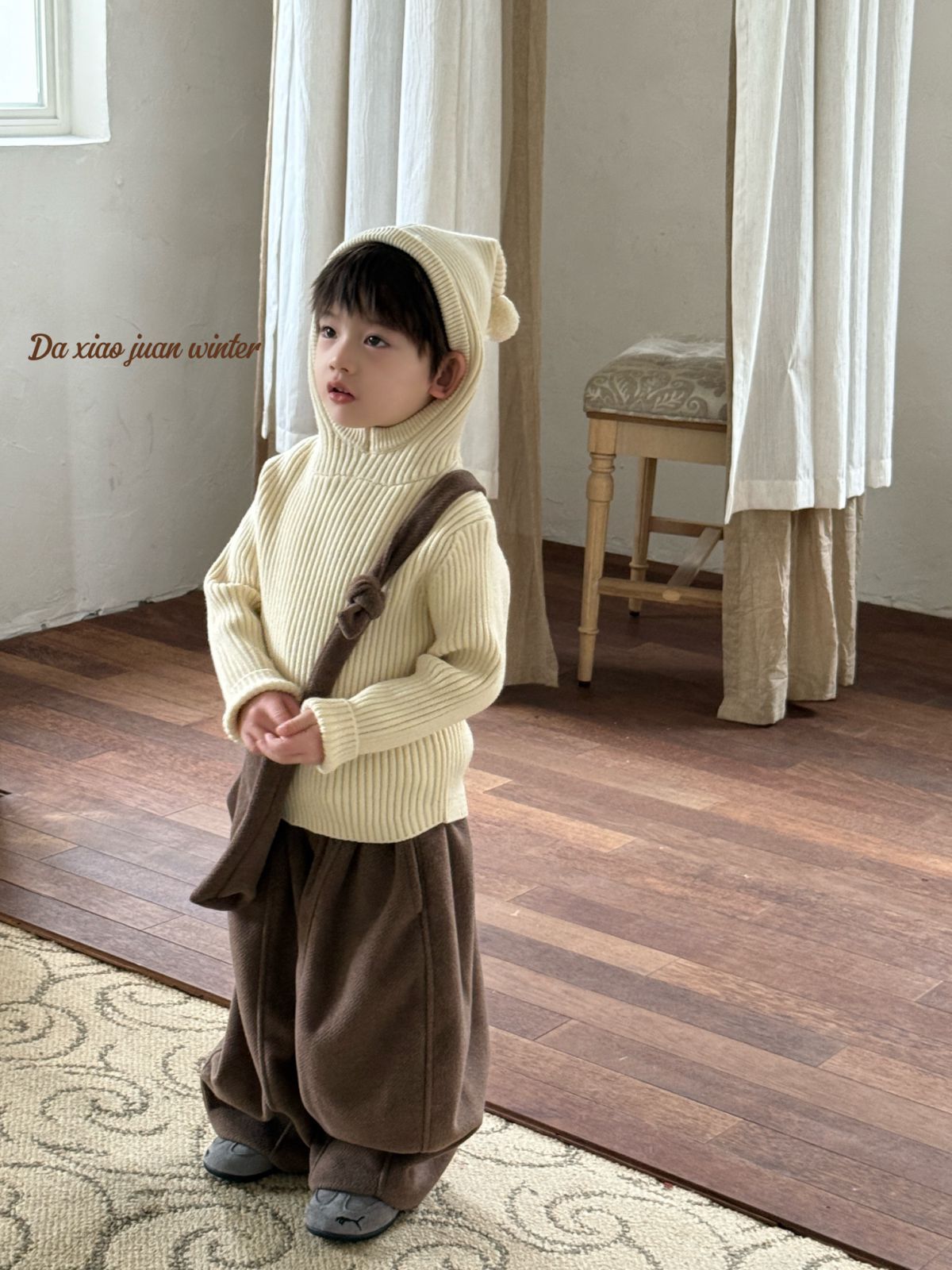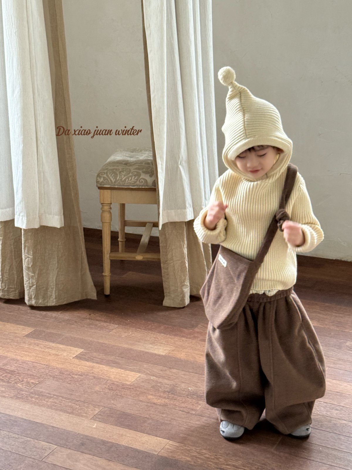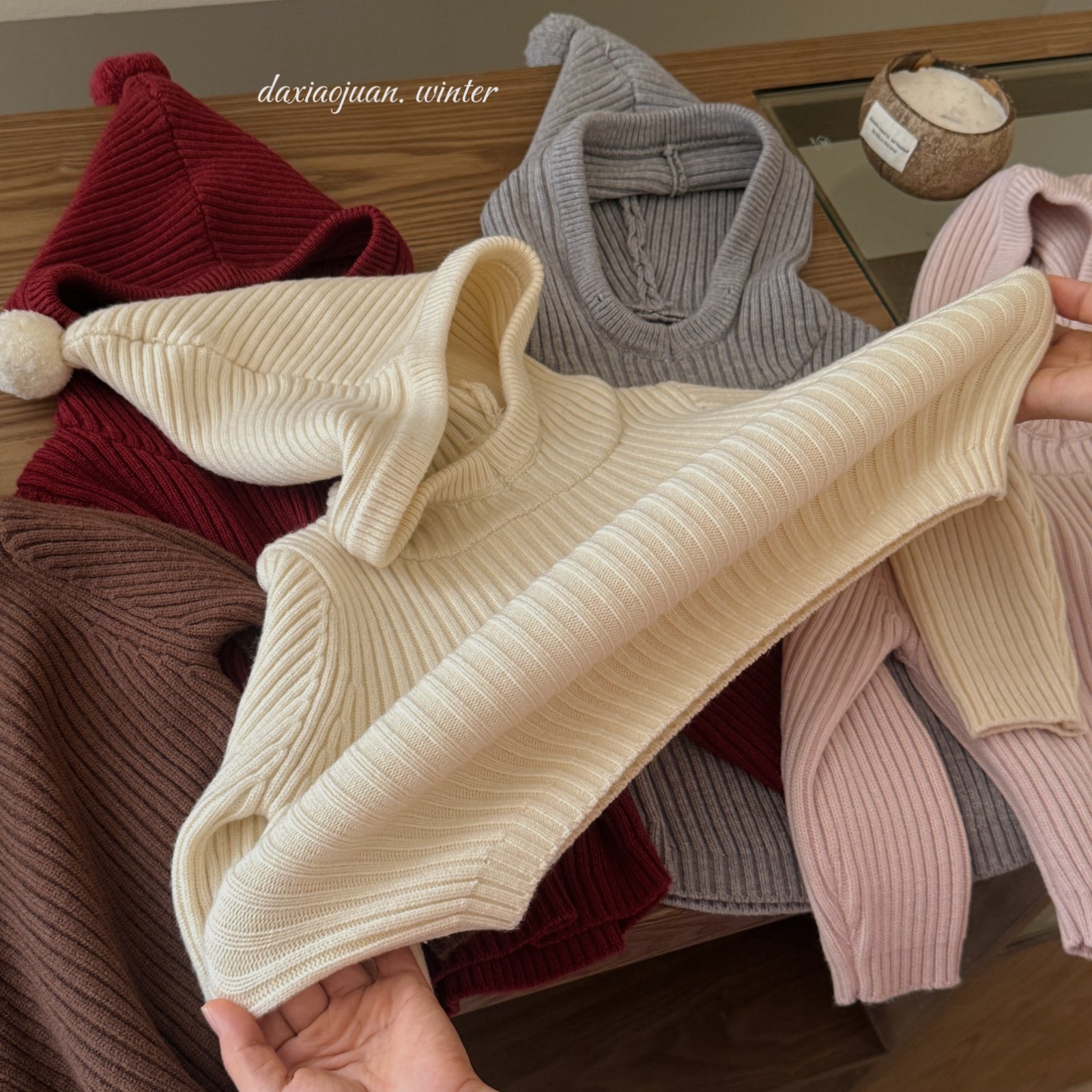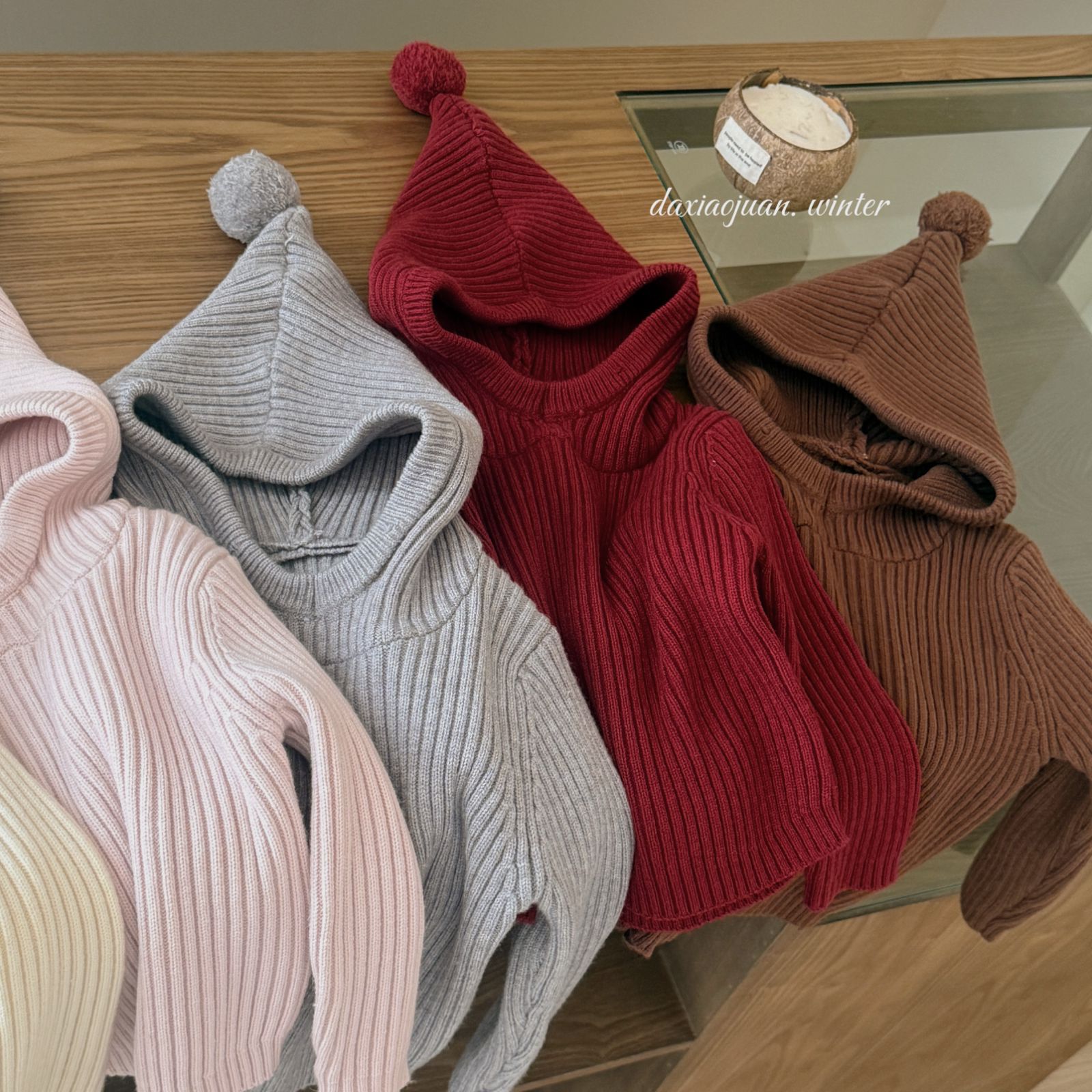 大小卷儿童毛衣25深秋冬新款男宝女宝韩版纯色尖尖帽针织百搭毛衣