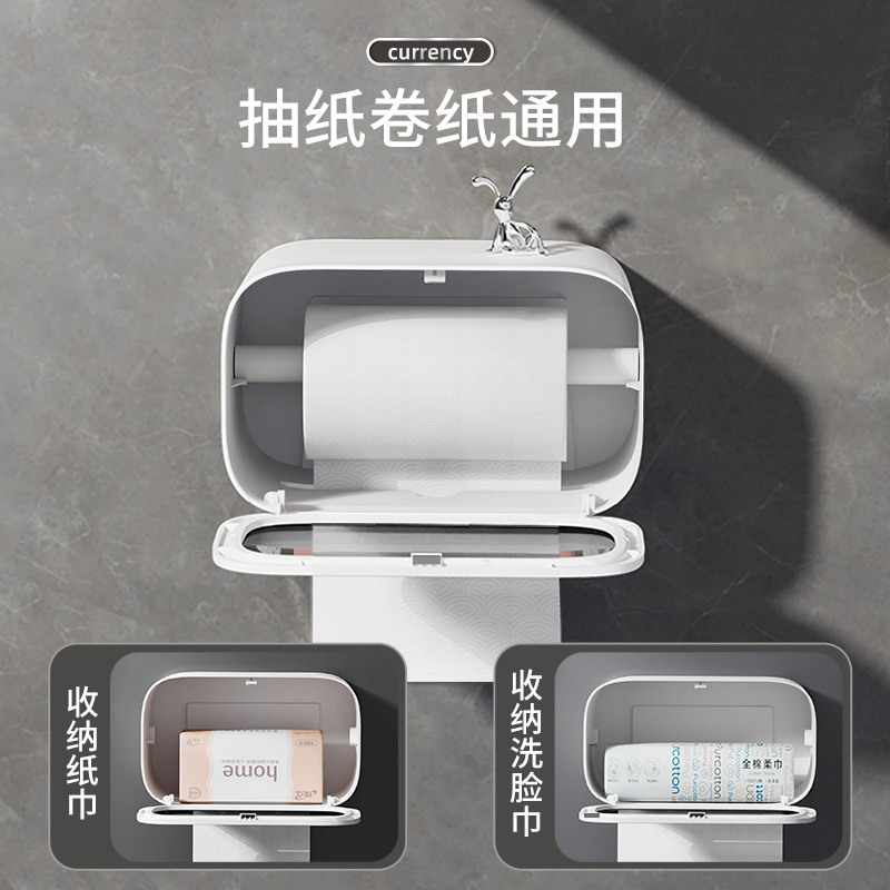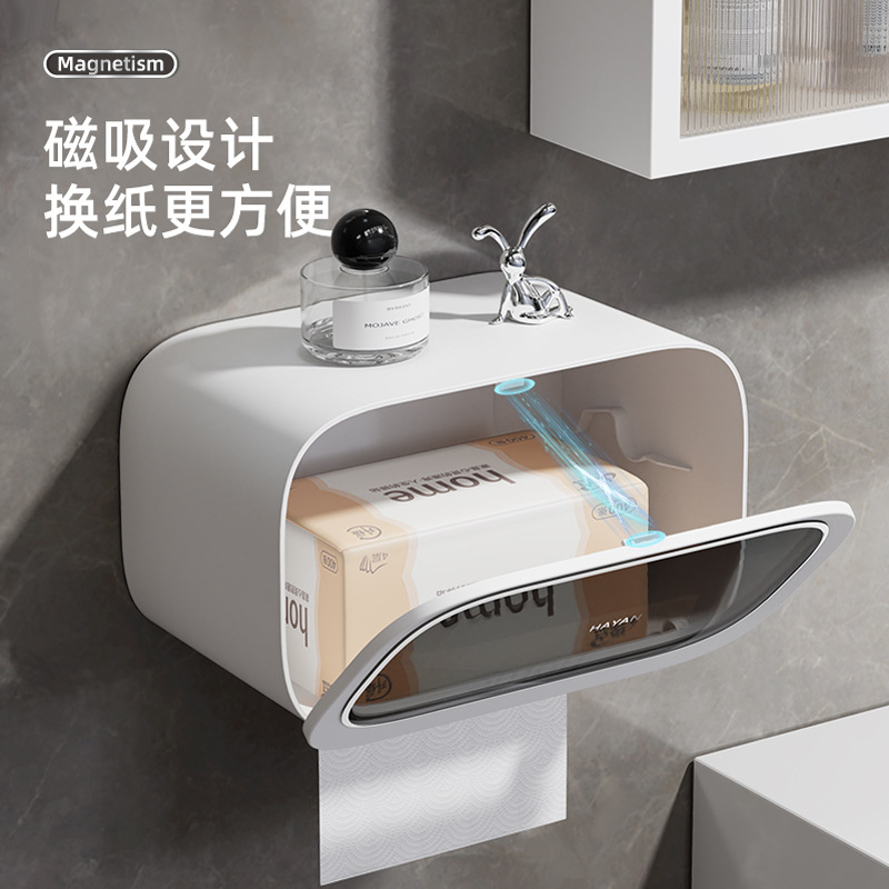 HAYAN海迎纸巾盒壁挂式厕所马桶旁卷纸架2024高级感手纸盒厕纸盒