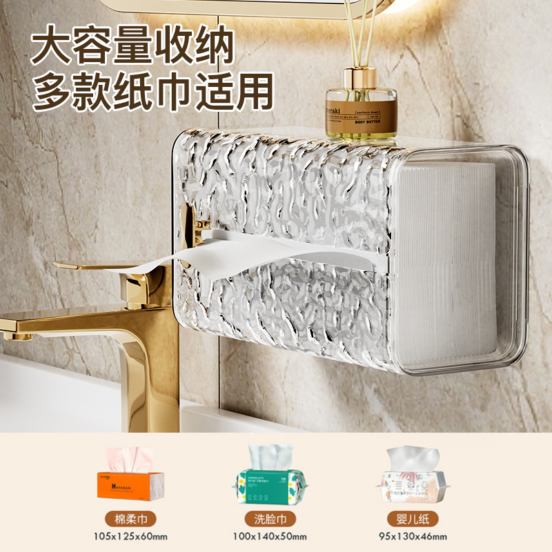 家用桌面纸巾盒ins冰川纹高颜值简约卫生间多功能壁挂式抽纸盒
