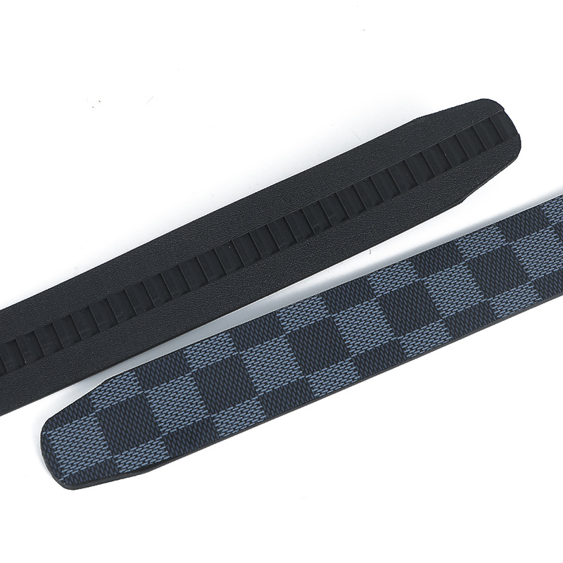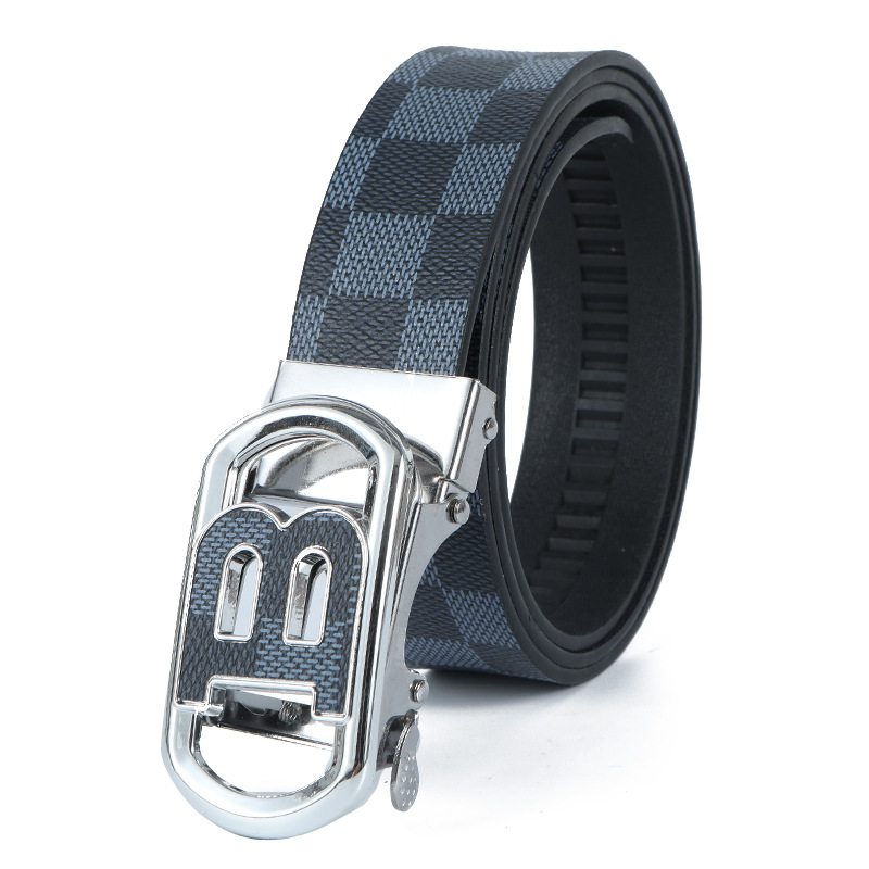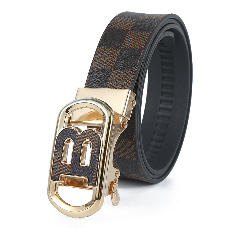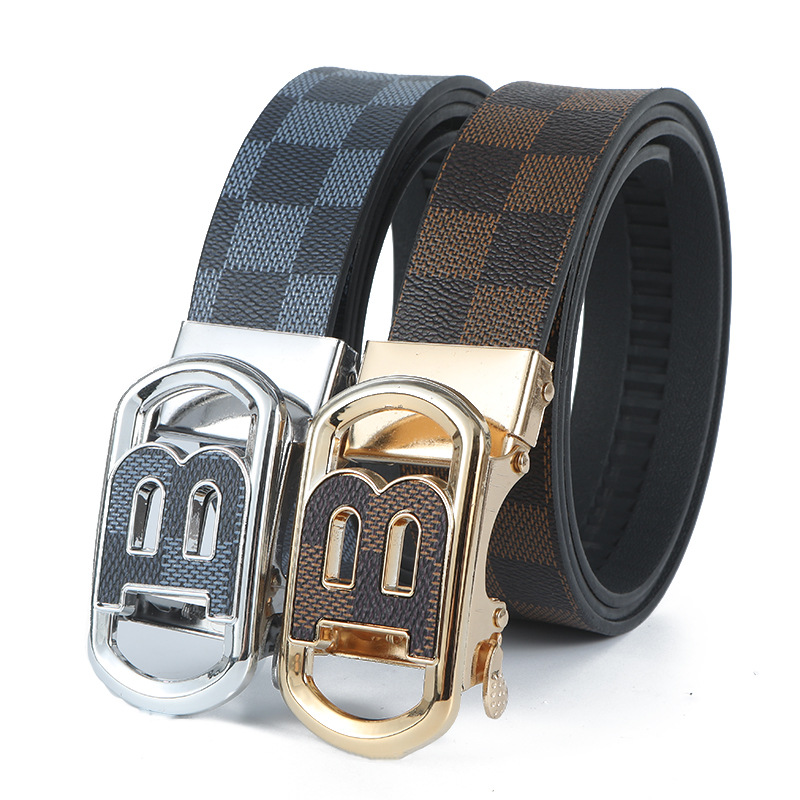 新款皮带男士时尚休闲百搭B字母自动扣腰带灌胶格子纹裤腰带批发