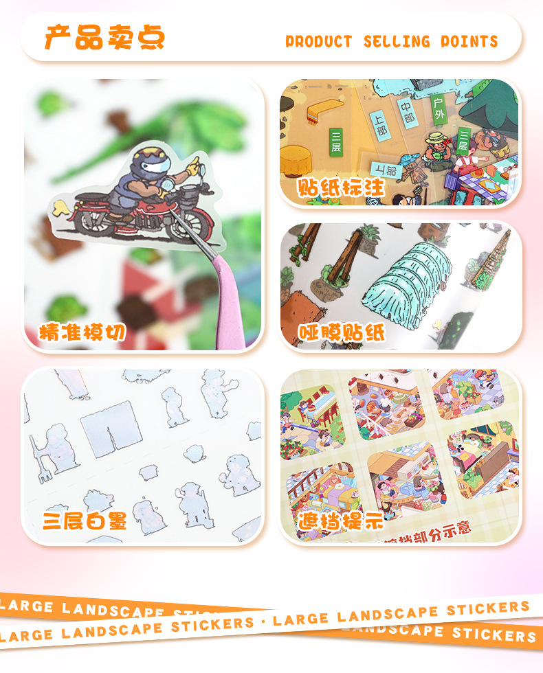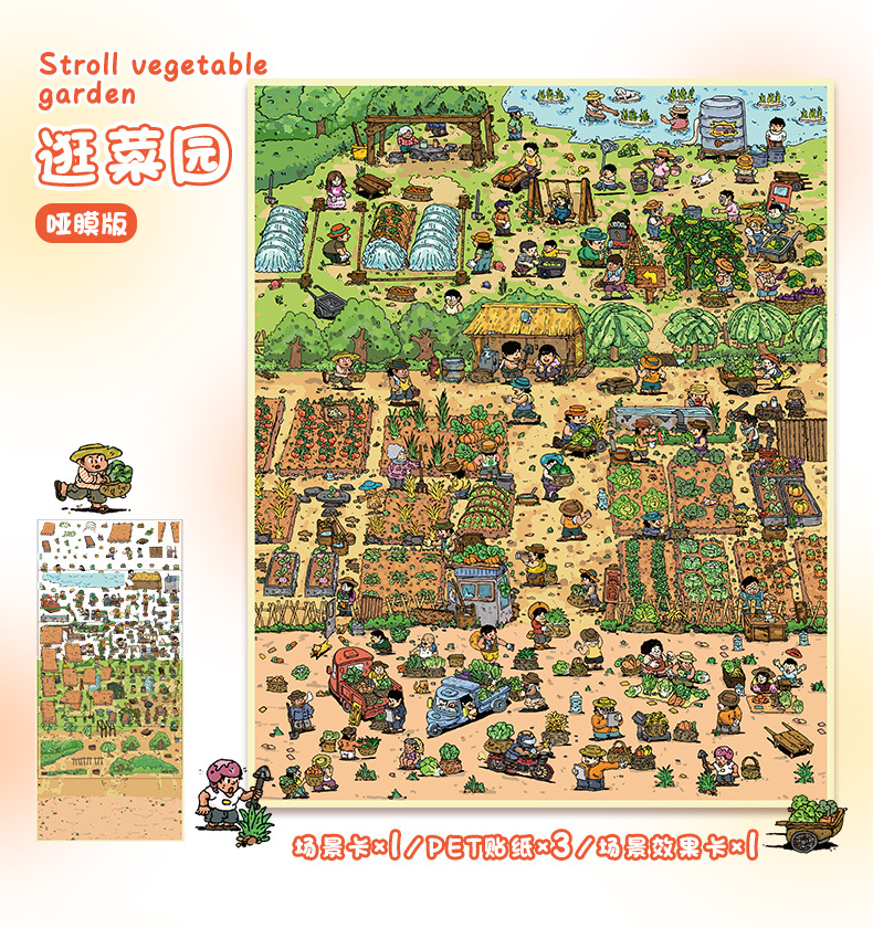 82.0艺蓝造景贴纸加大号逛菜园场景贴纸3D立体微缩场景贴纸手帐贴