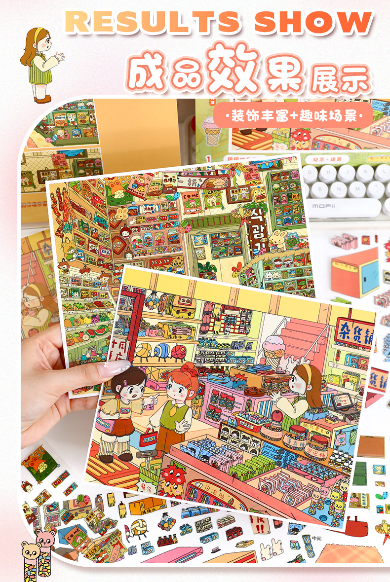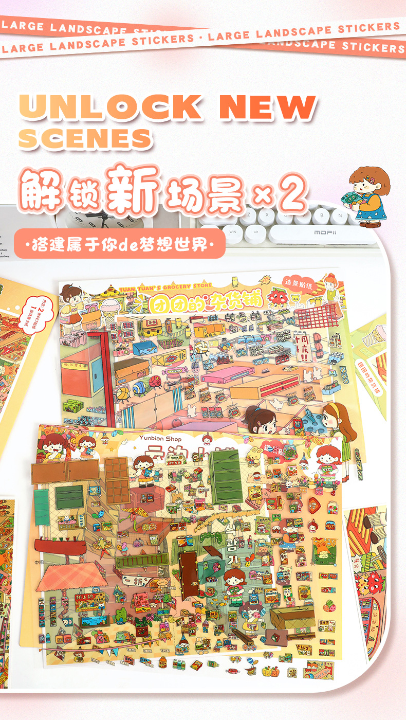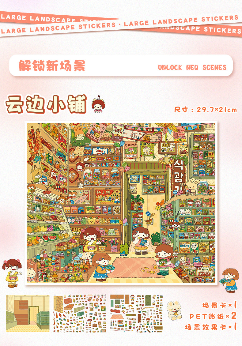 99.0特油艺蓝造景贴纸特油亮膜码货场景贴纸微缩场景拼贴手账贴纸