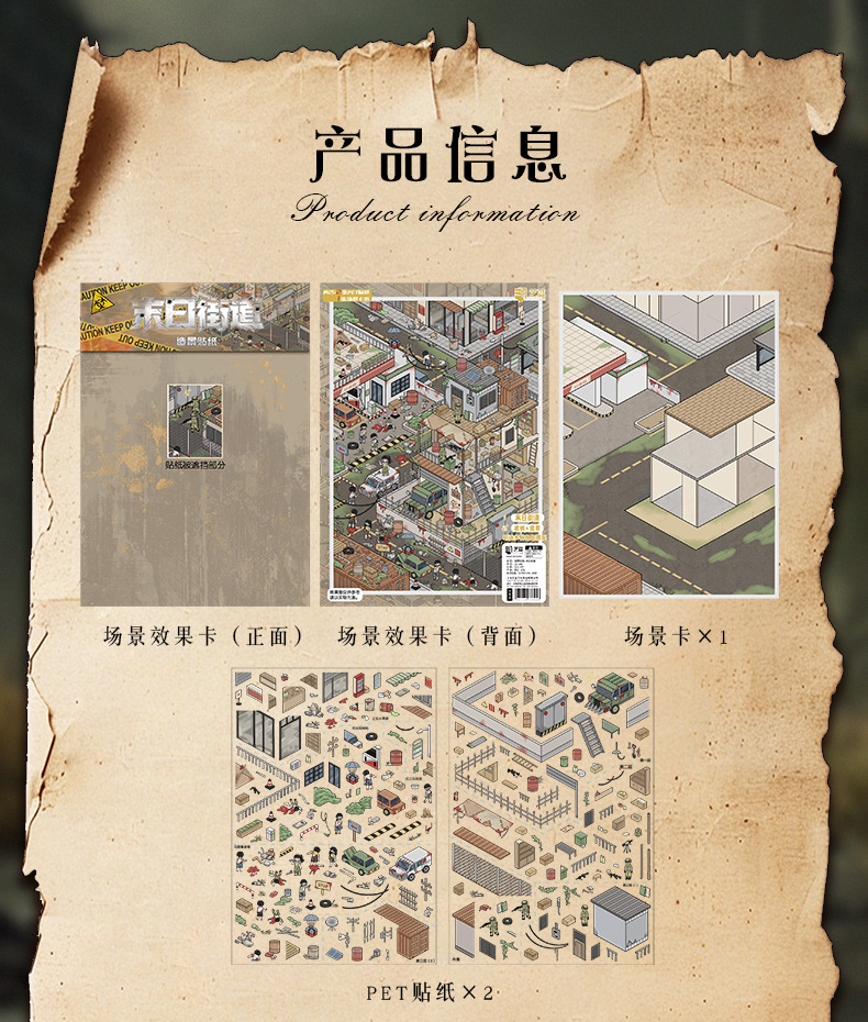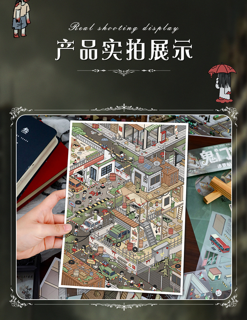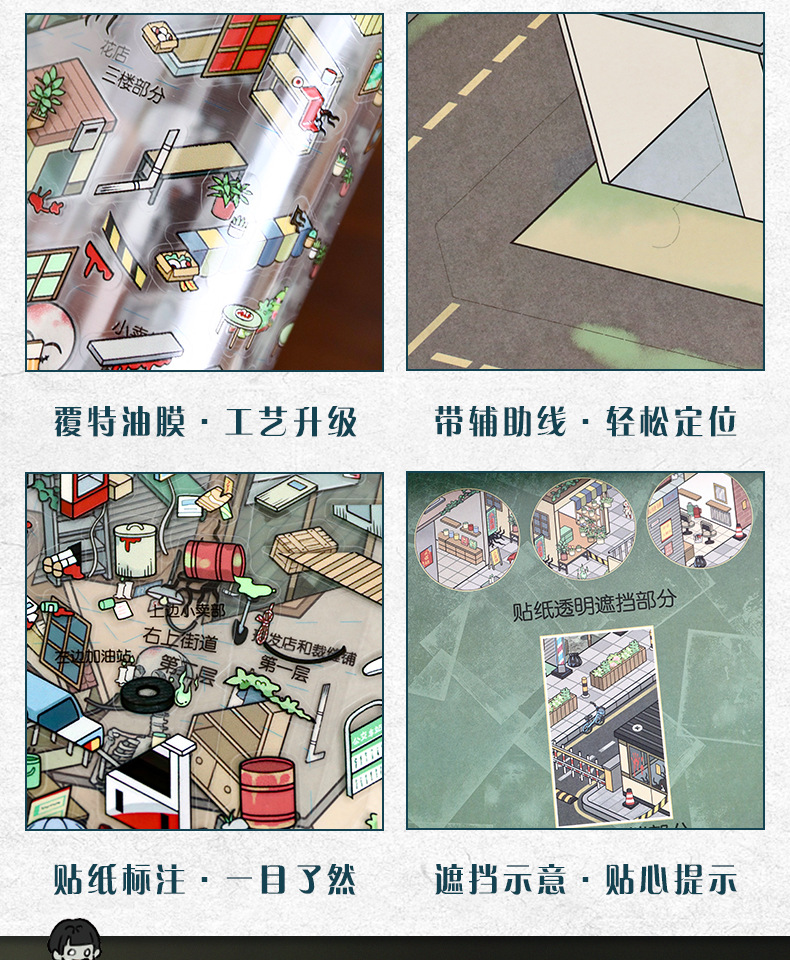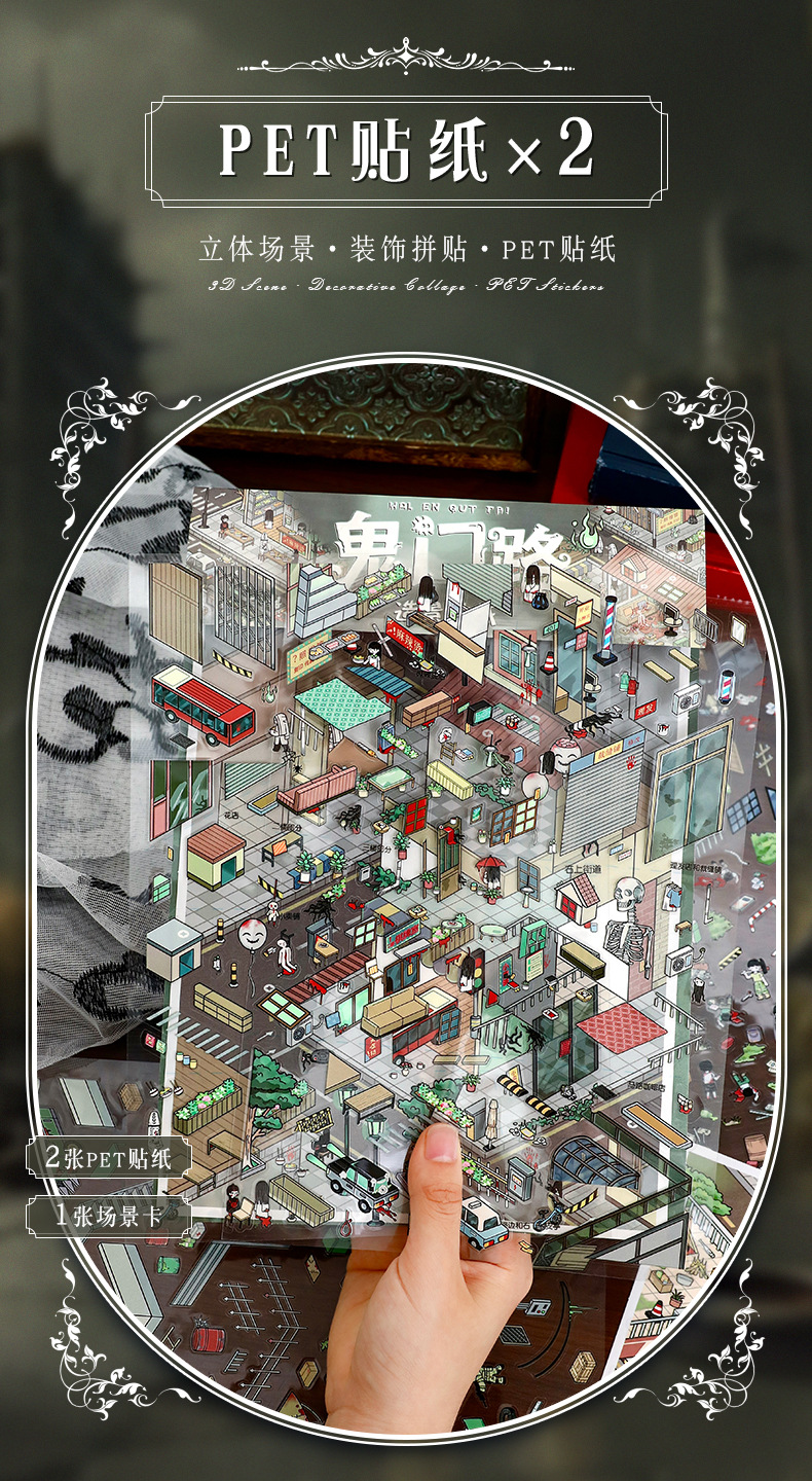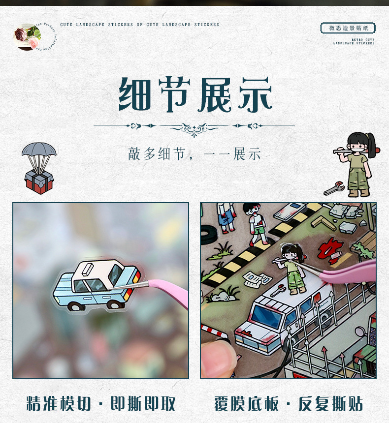 103.0微恐系列贴纸艺蓝造景贴纸特油街景场景贴纸微缩场景手账贴