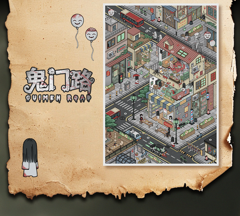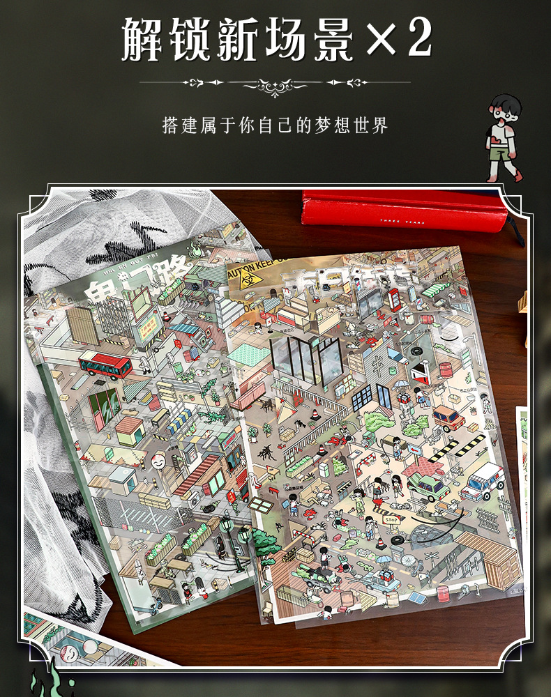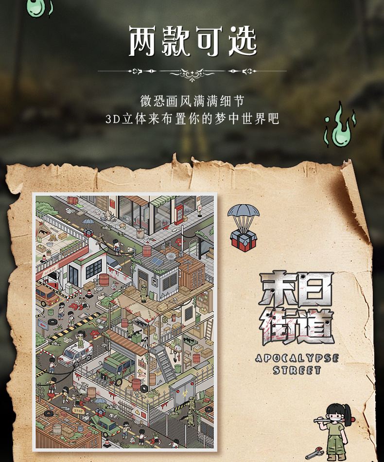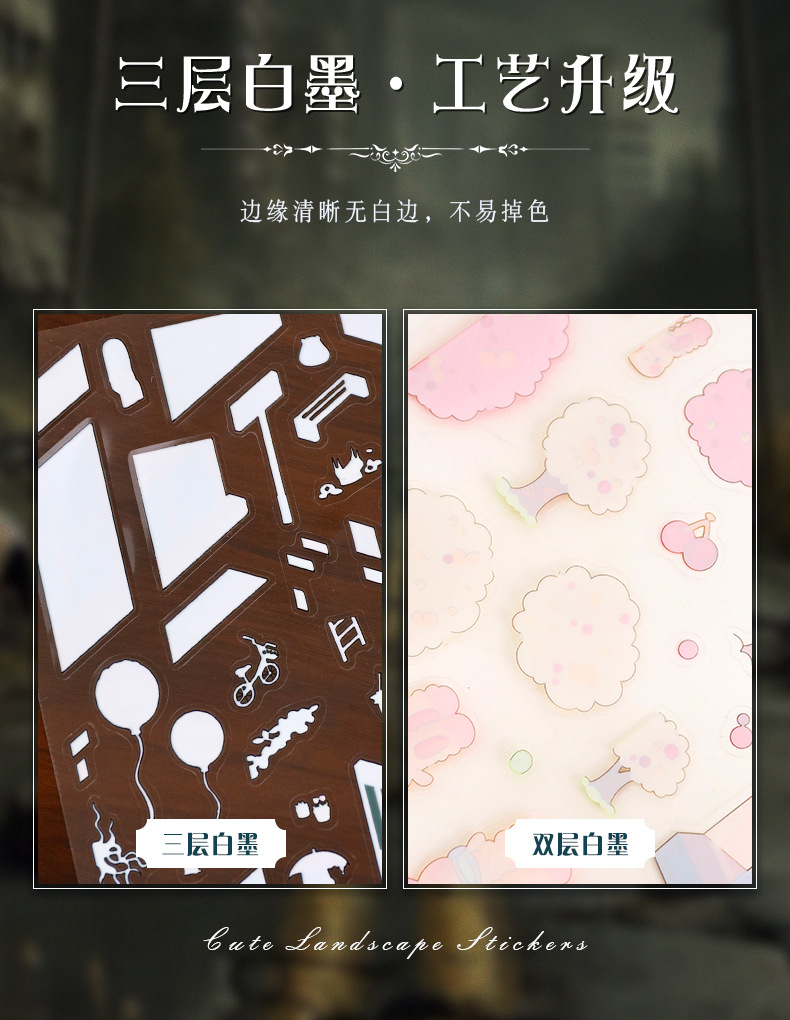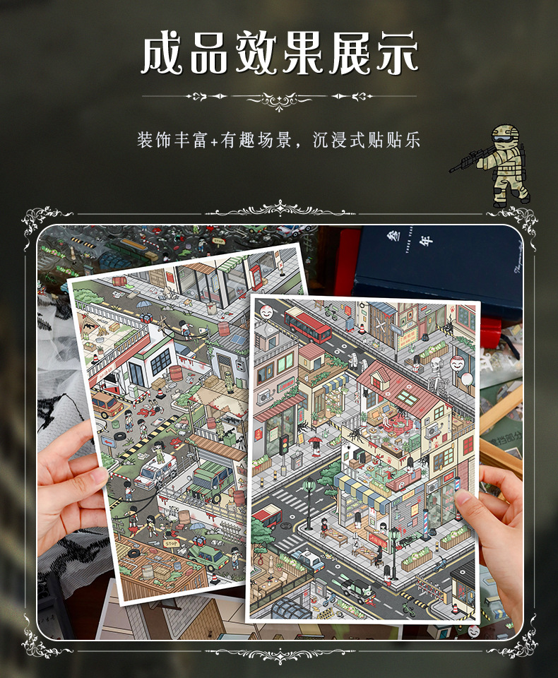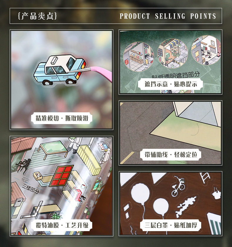 103.0微恐系列贴纸艺蓝造景贴纸特油街景场景贴纸微缩场景手账贴