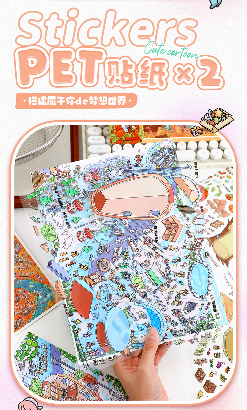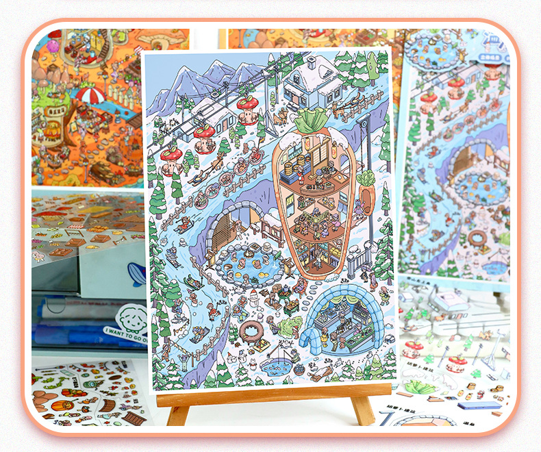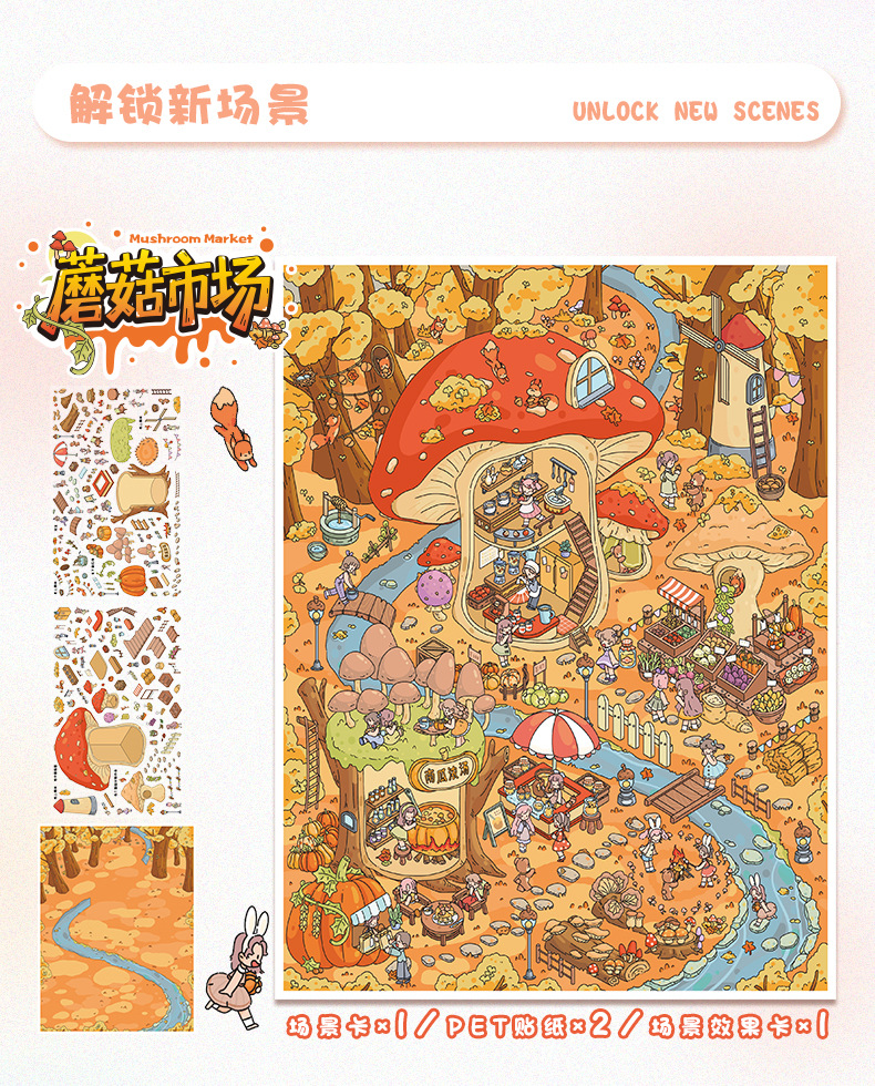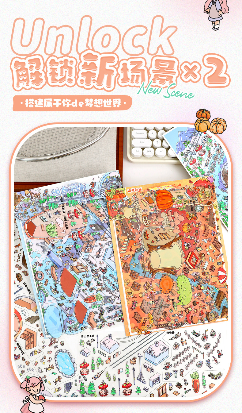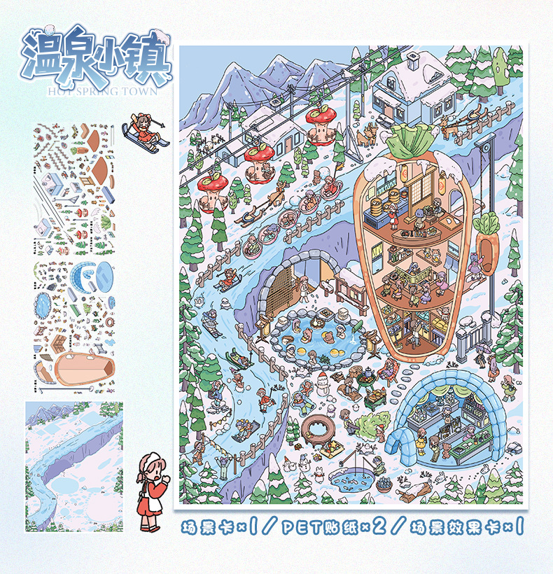 104.0秋冬小镇系列特油贴纸艺蓝造景贴纸可爱微缩场景贴纸手账diy