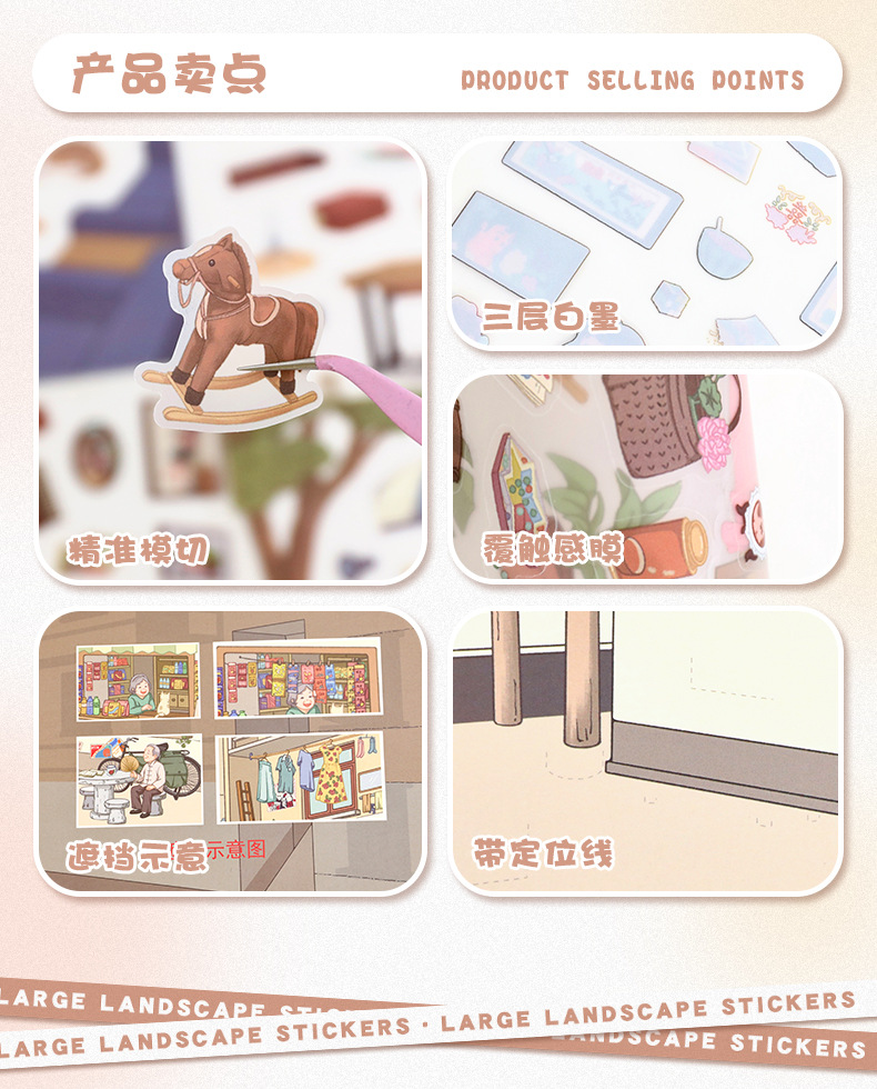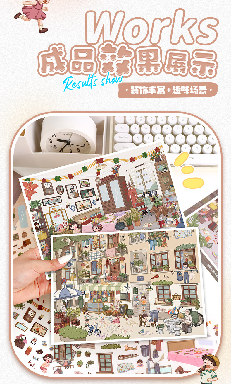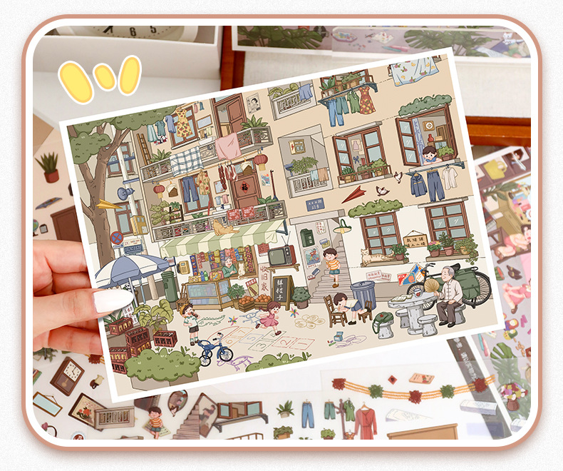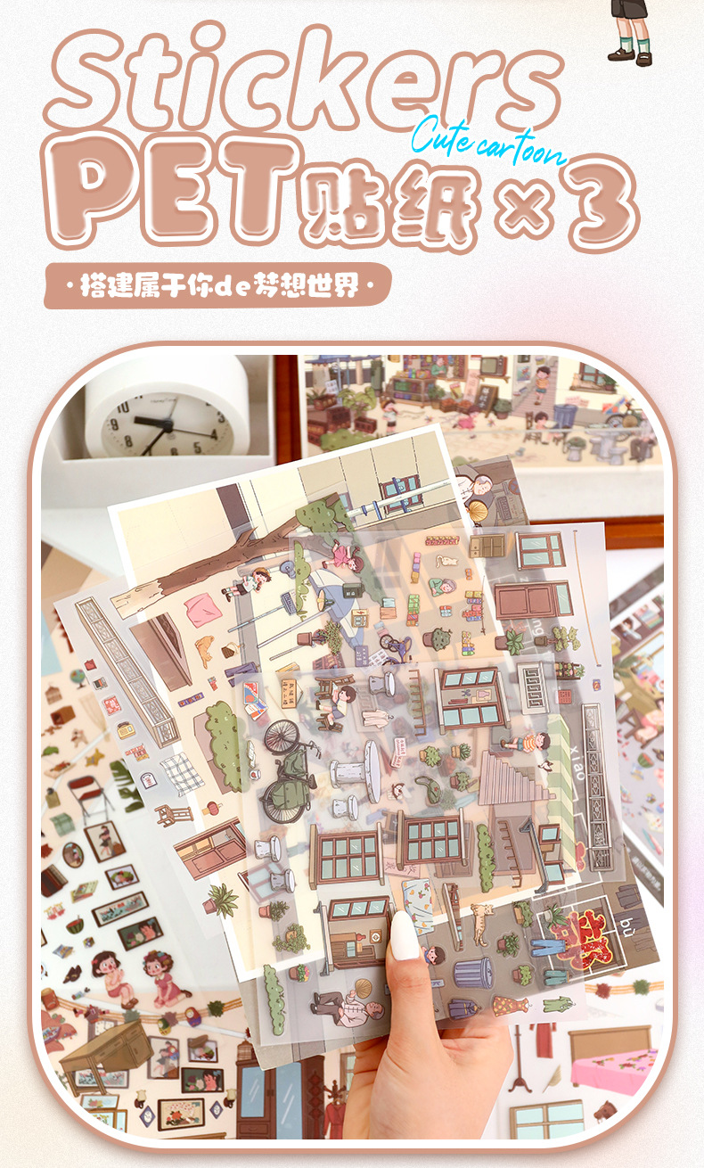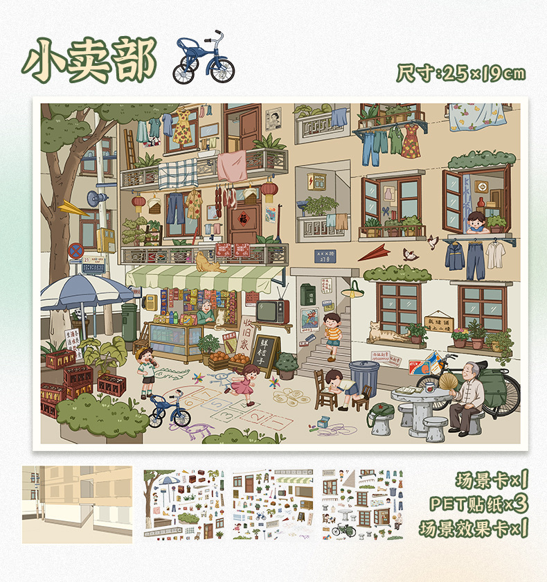 101.0触感膜艺蓝造景贴纸复古怀旧场景贴纸微缩场景儿童手账贴纸
