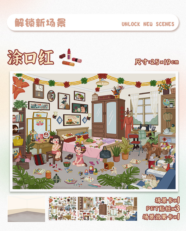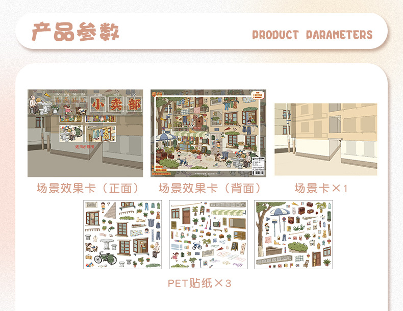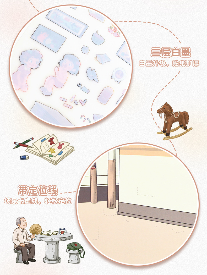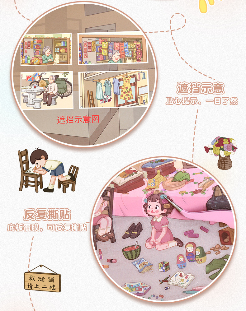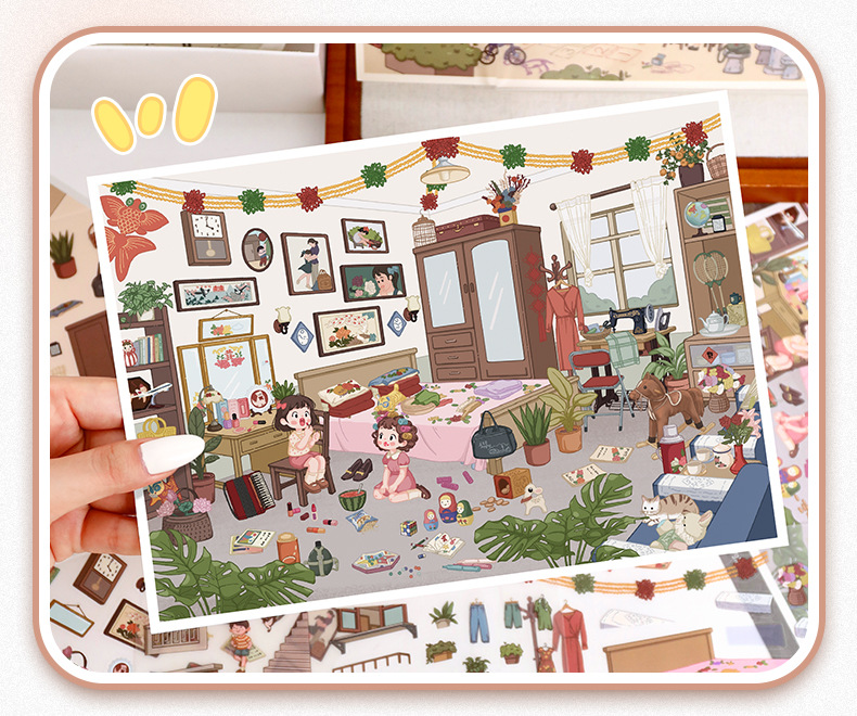 101.0触感膜艺蓝造景贴纸复古怀旧场景贴纸微缩场景儿童手账贴纸