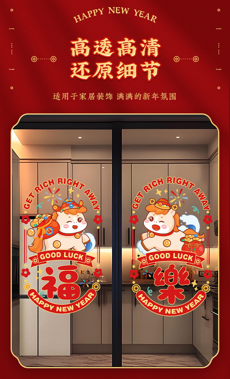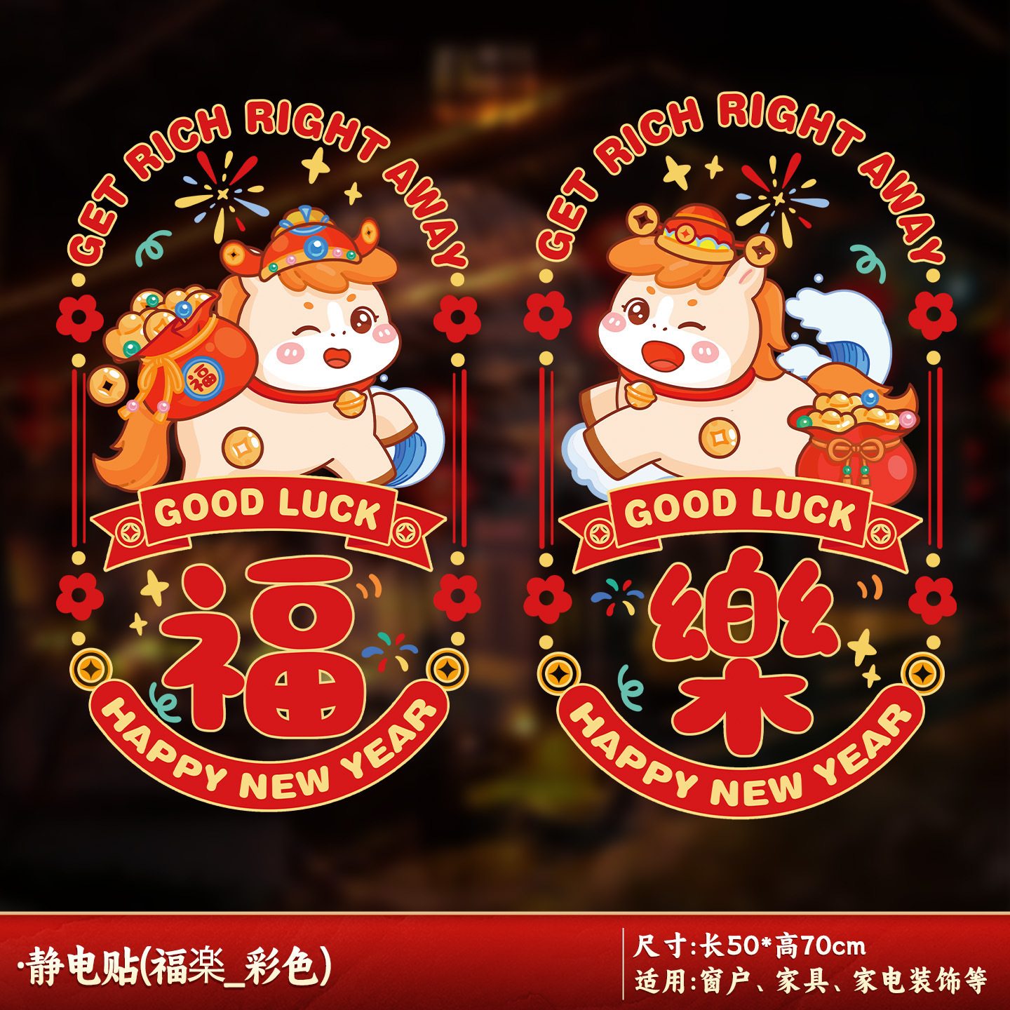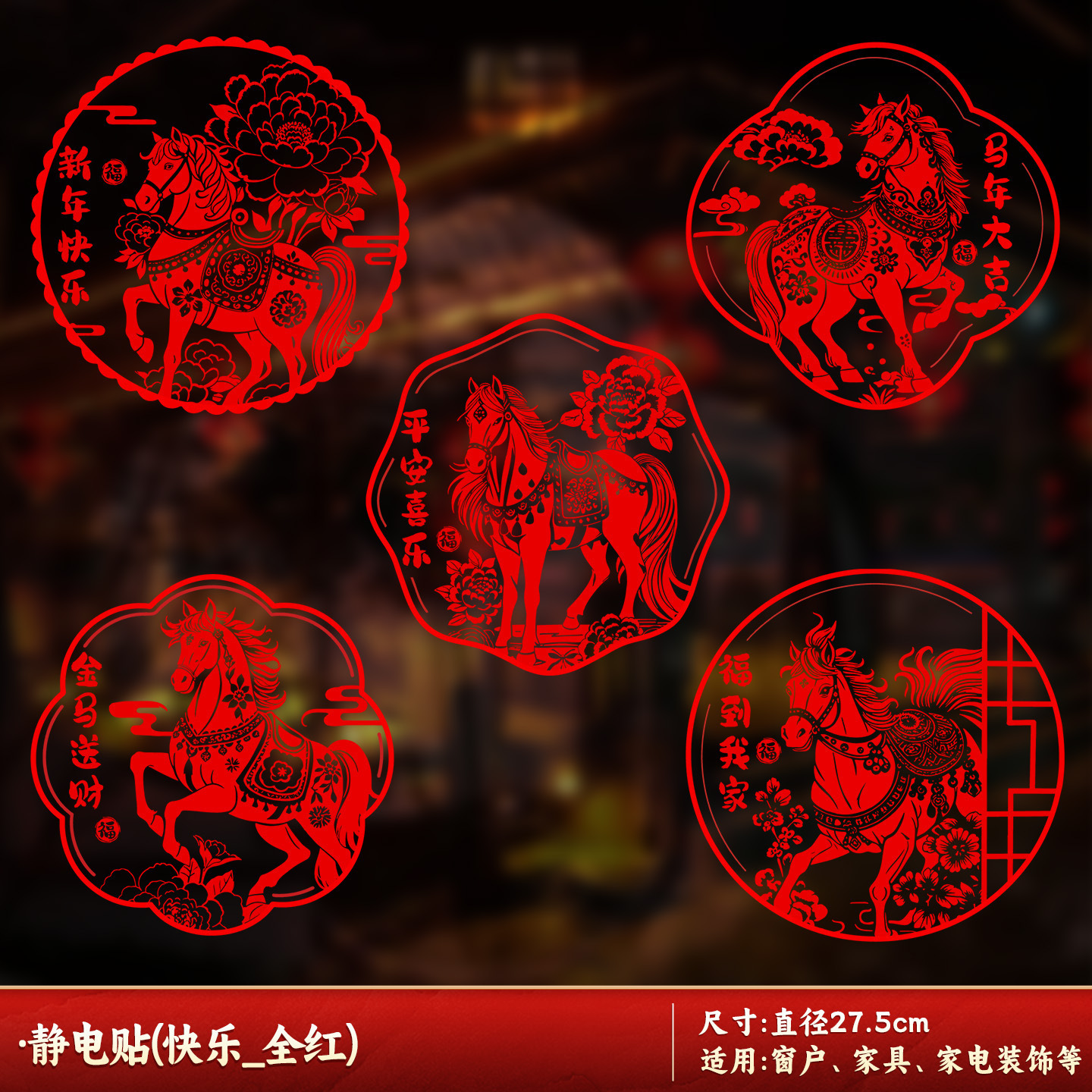 2026马年窗花静电贴新年装饰玻璃门贴纸春节过年氛围布置福字窗贴
