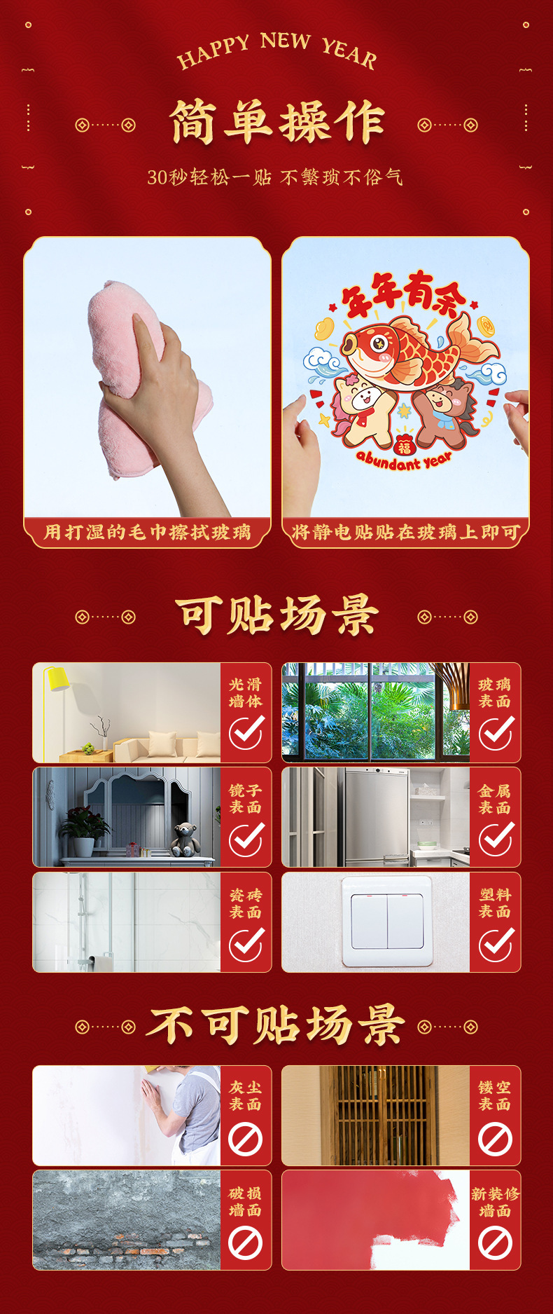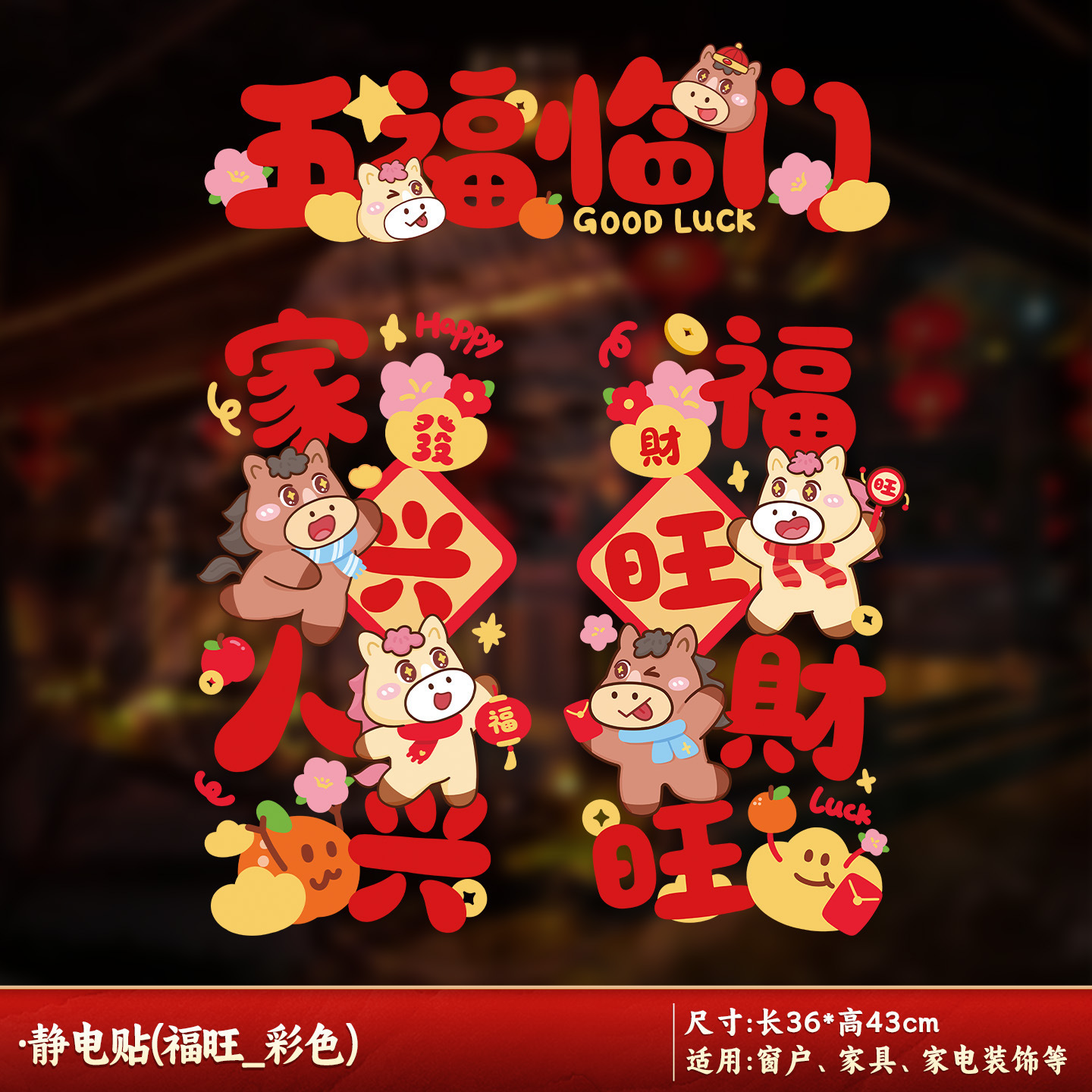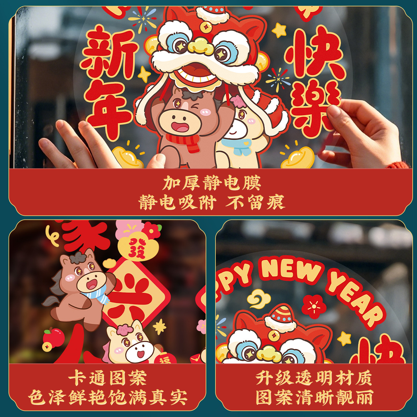 2026马年窗花静电贴新年装饰玻璃门贴纸春节过年氛围布置福字窗贴