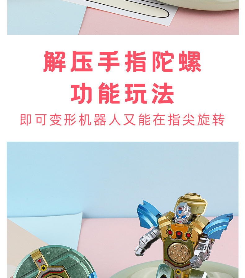 儿童变形机器人陀螺金刚玩具男孩指尖旋转机械解压神器机甲转转乐