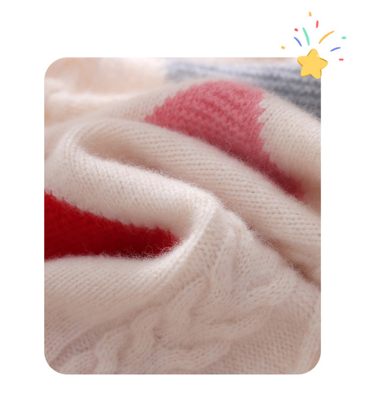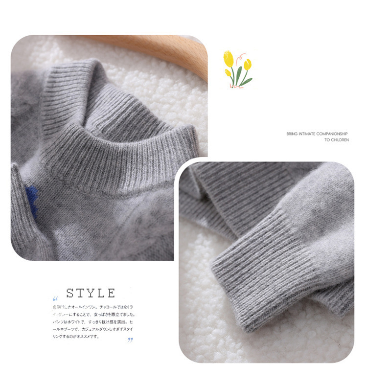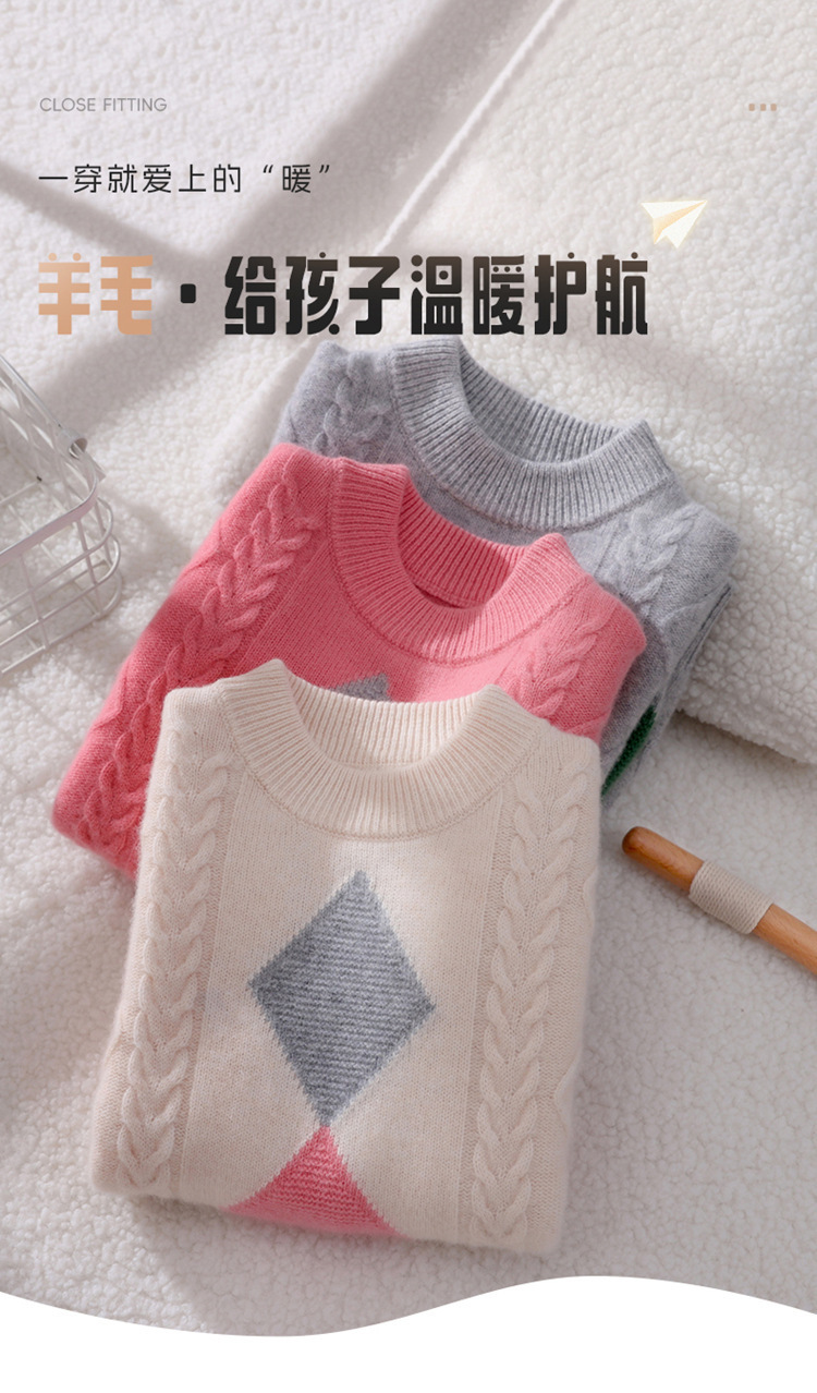 儿童拼色菱形半高领羊毛毛衣男女童插肩打底套头羊毛打底上衣