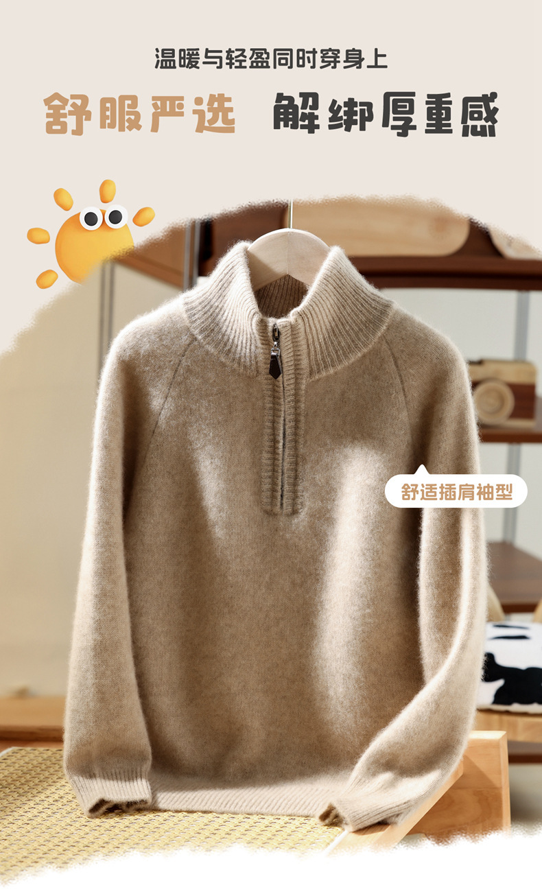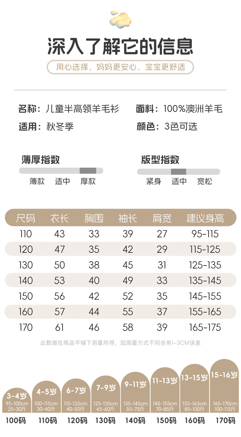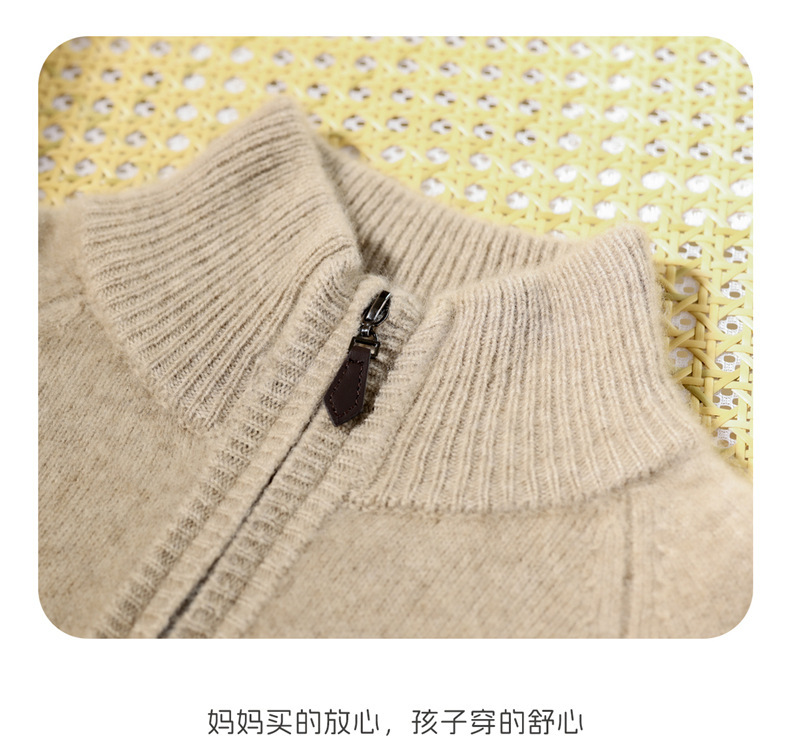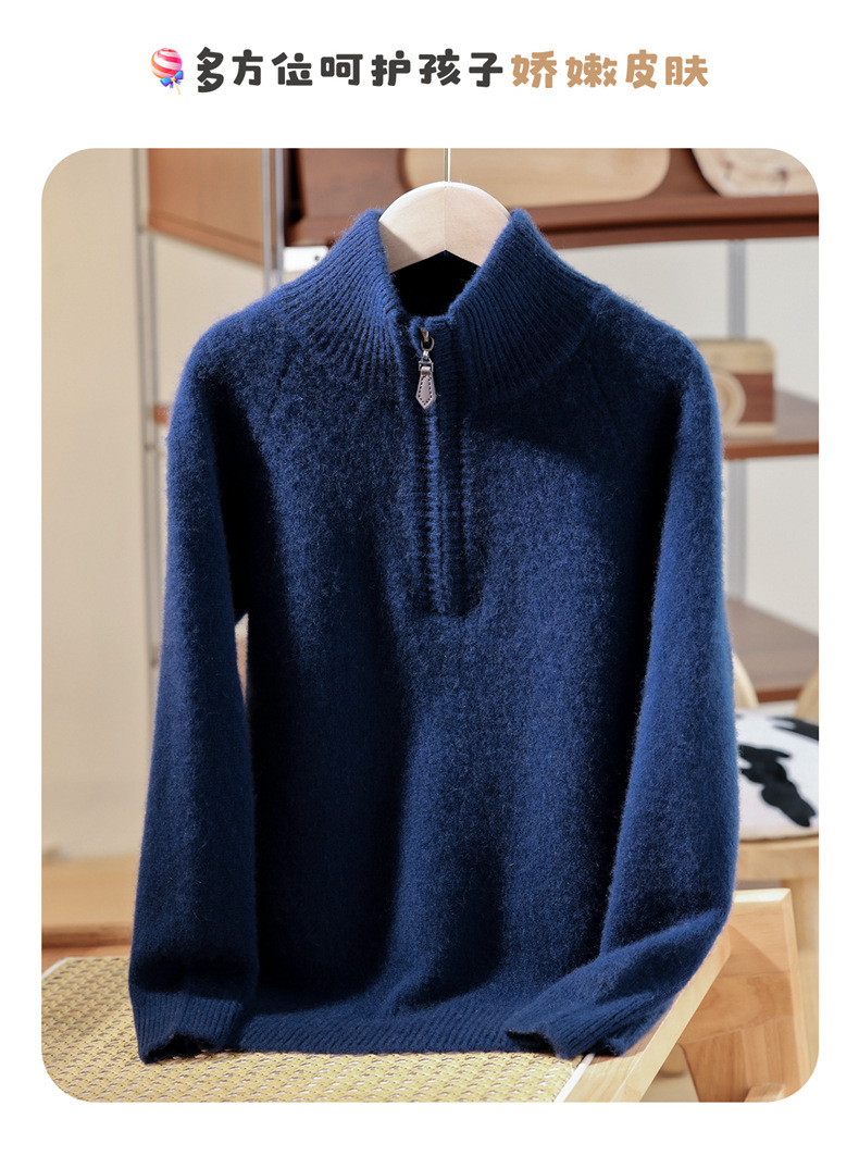 100羊毛衫儿男半高领半拉链加厚打底毛衣男女童秋冬羊绒针织上衣