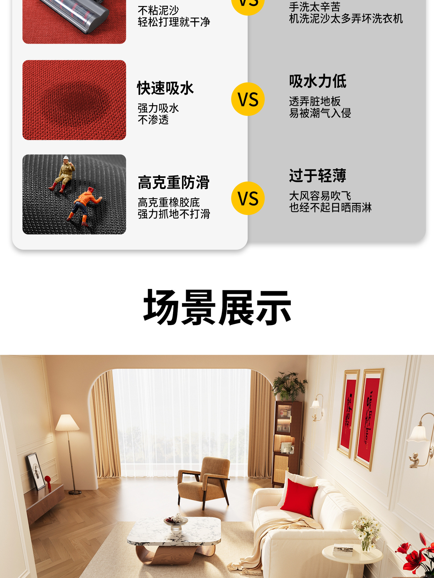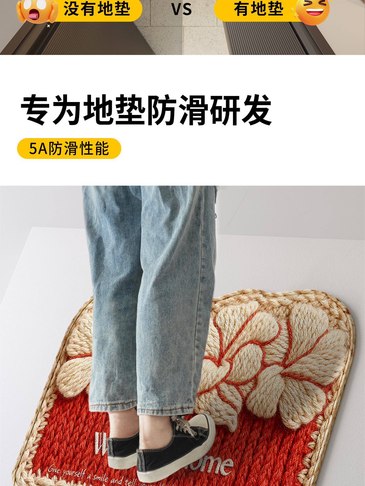 仿毛线法式入户门地垫进门口脚垫防滑吸水小香风玄关垫轻奢地毯子