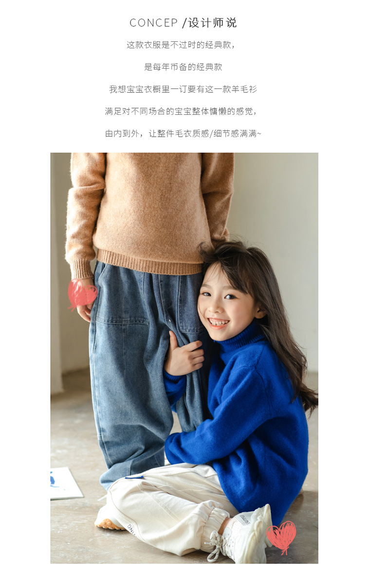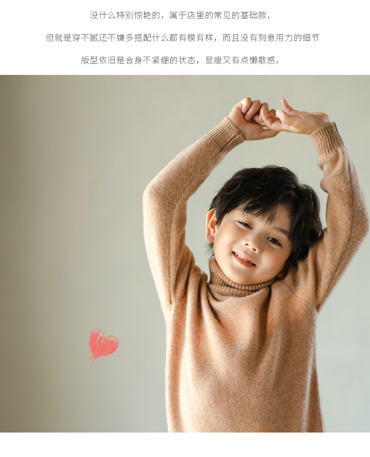 纯羊毛24秋冬新款高领儿童羊绒衫男孩女童薄款打底针织衫宝宝毛衣