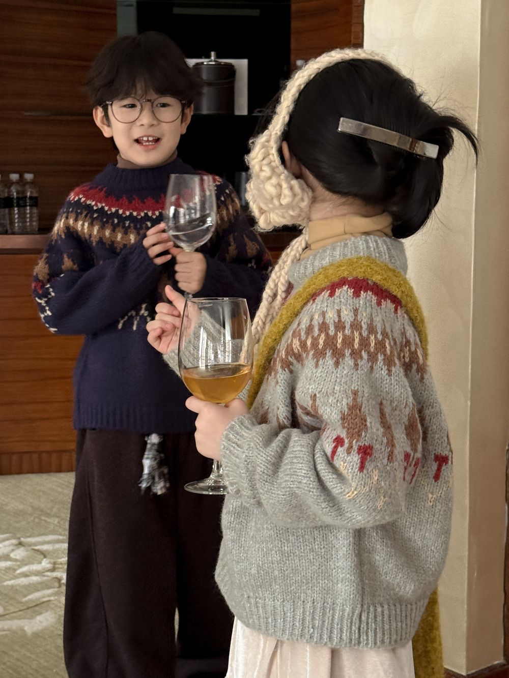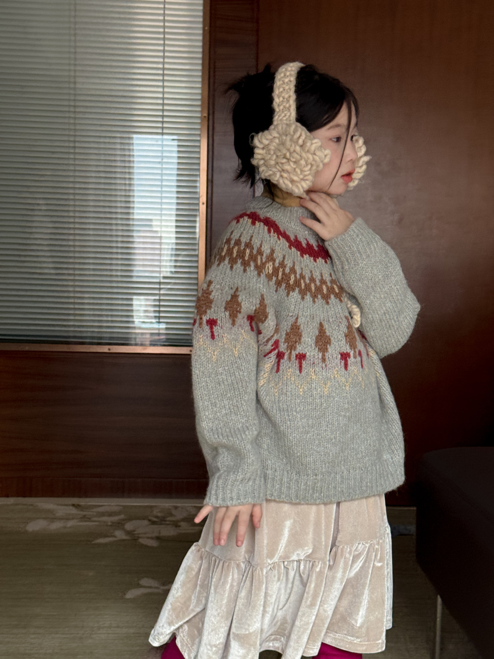 童毛衣2025秋冬韩版男女童圆领加厚费尔岛毛衣慵懒套头百搭款针织