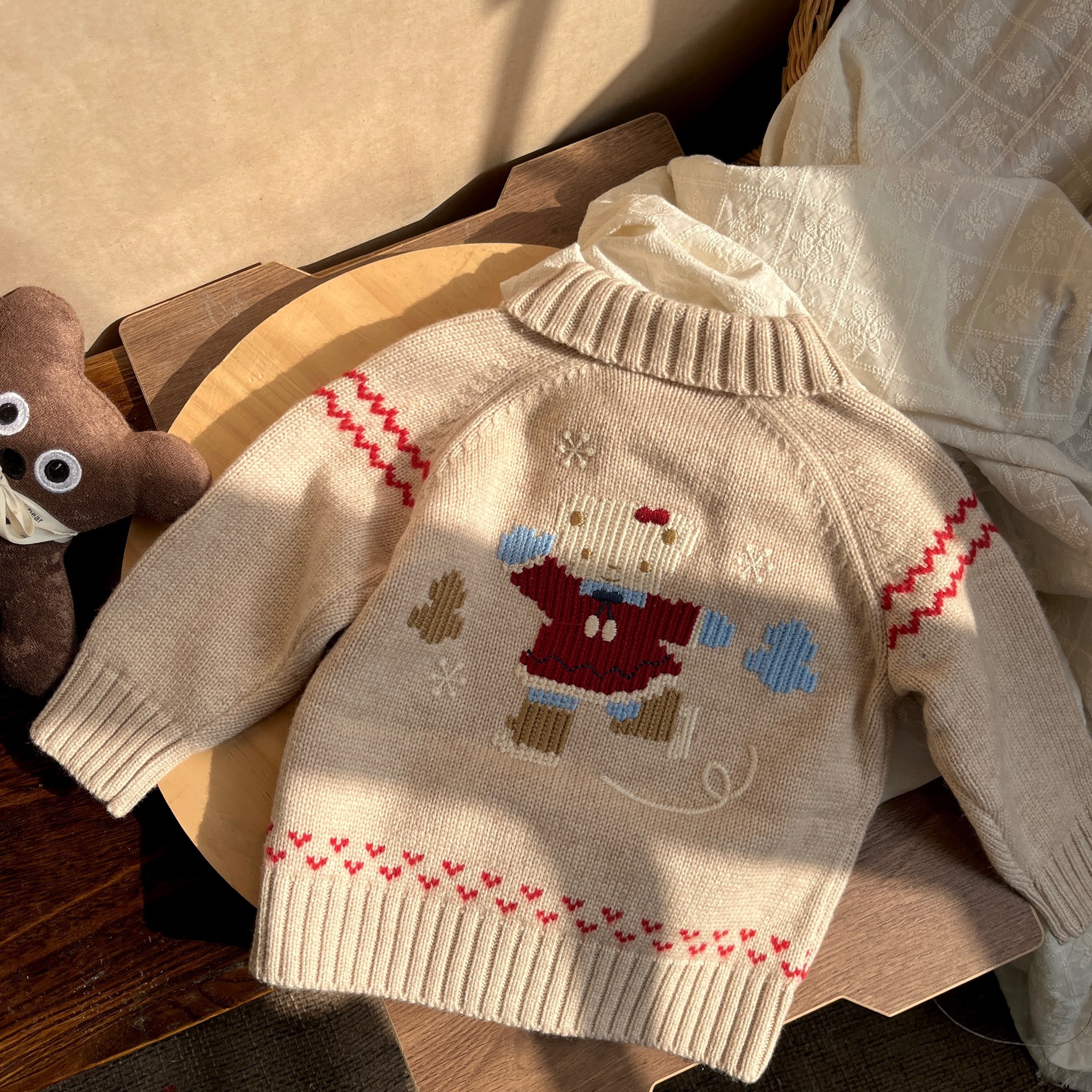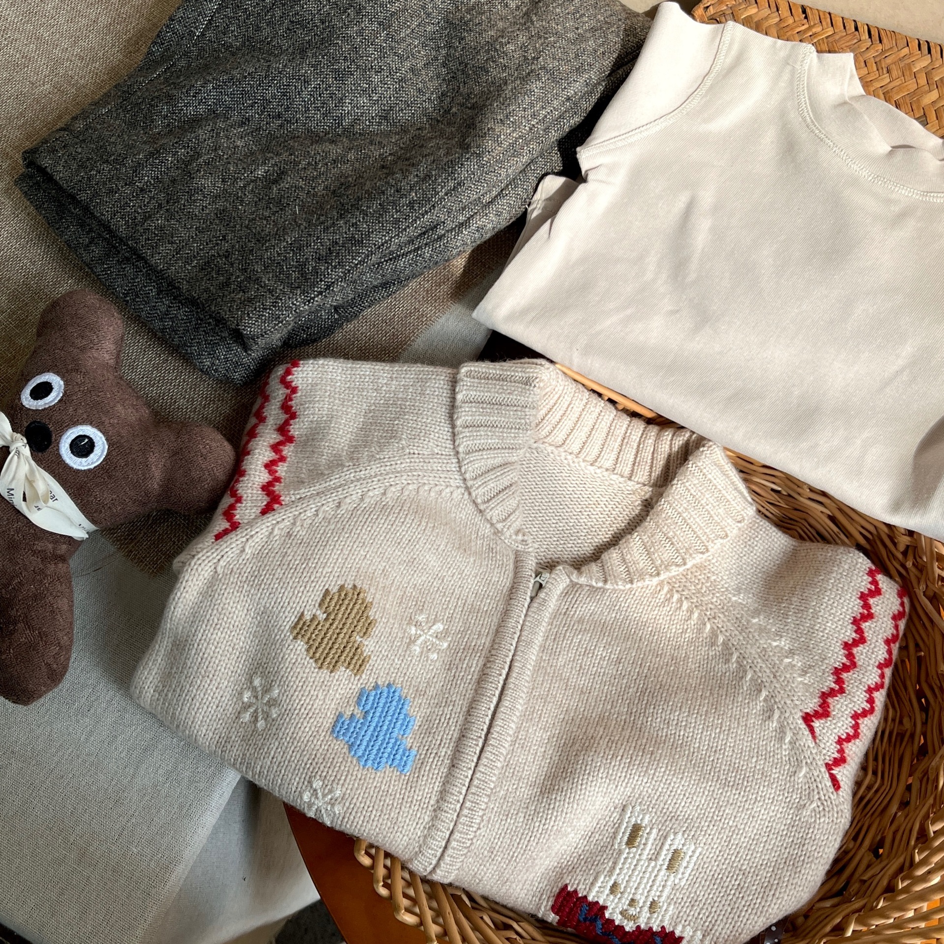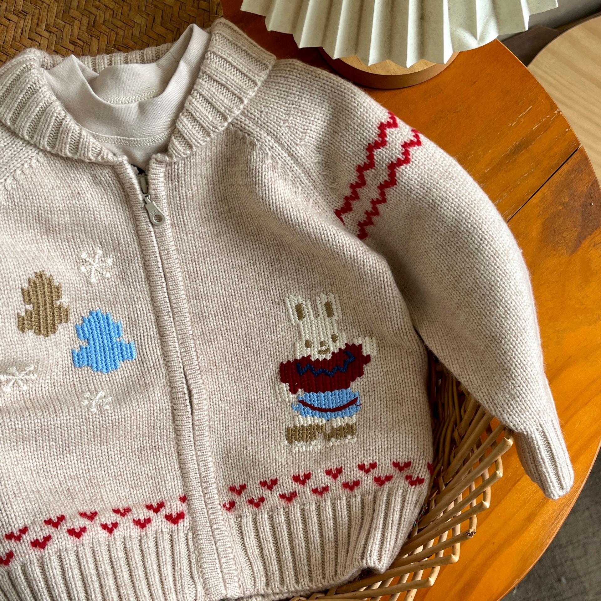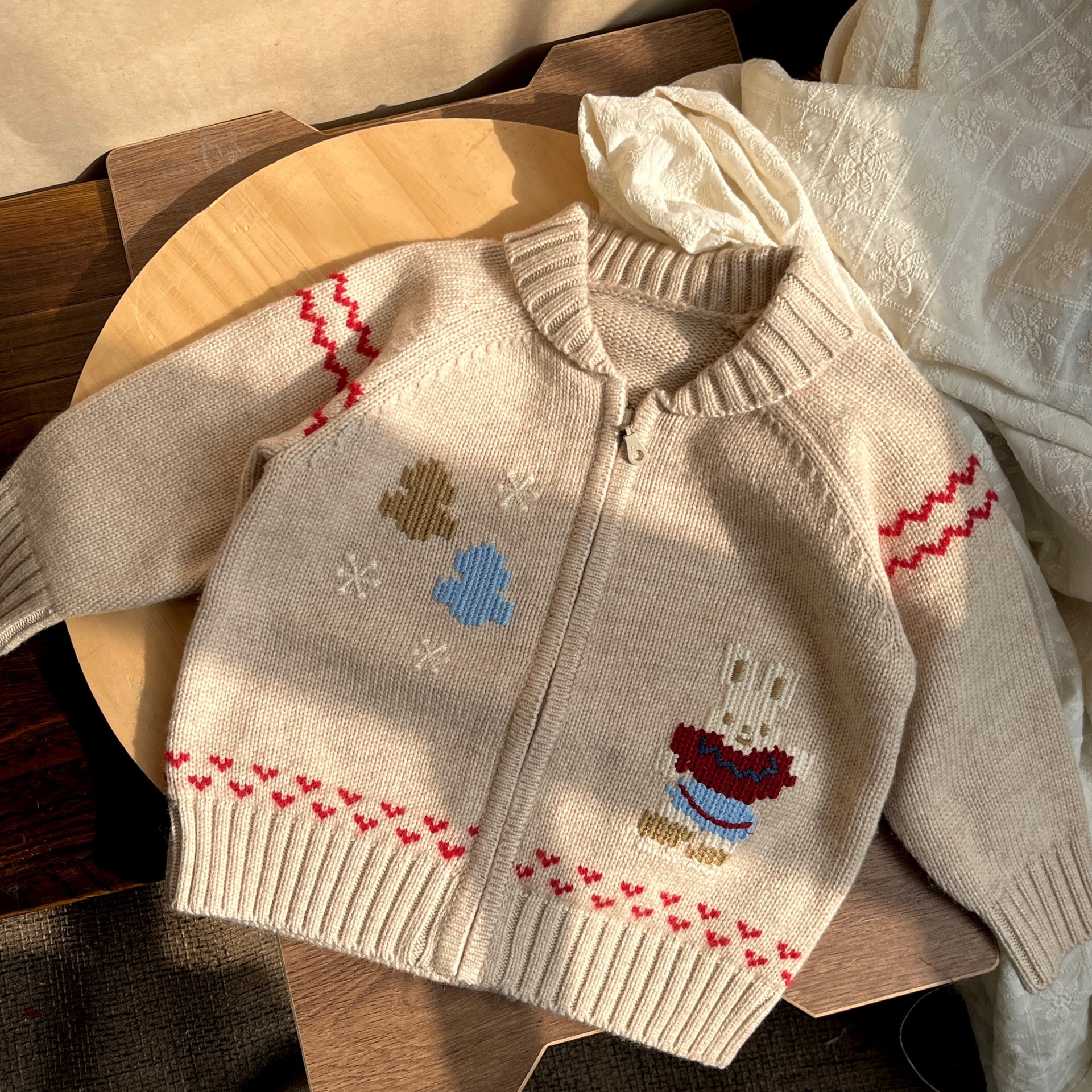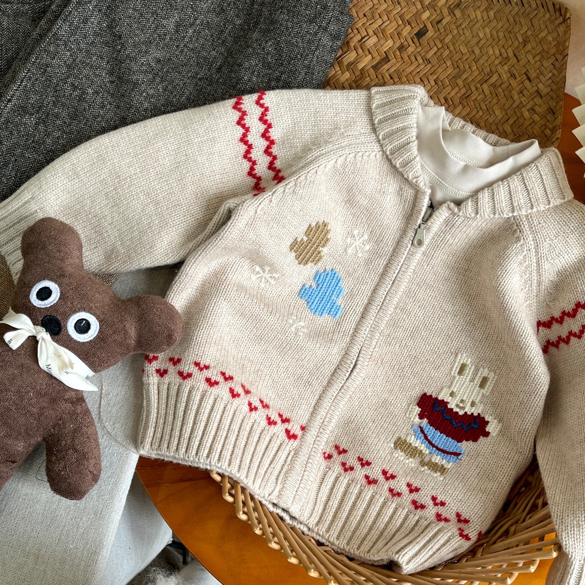 女童冬季韩系绣花毛衣开衫儿童绵羊毛混纺针织衫宝宝外套潮