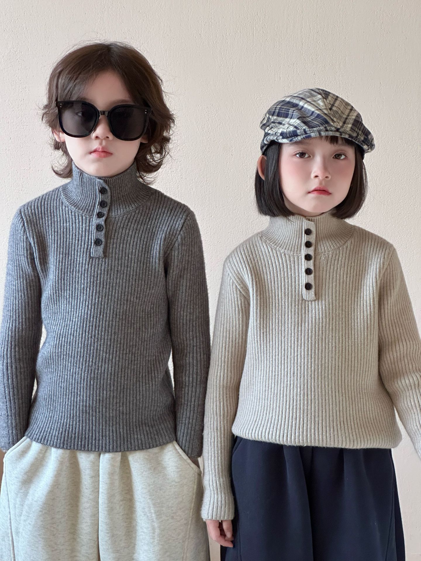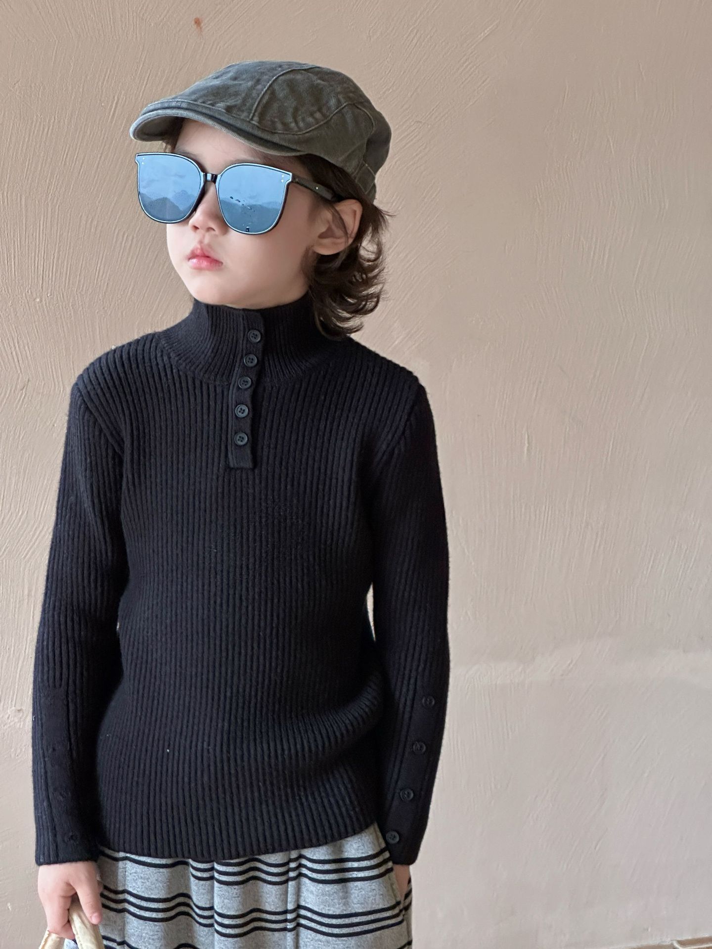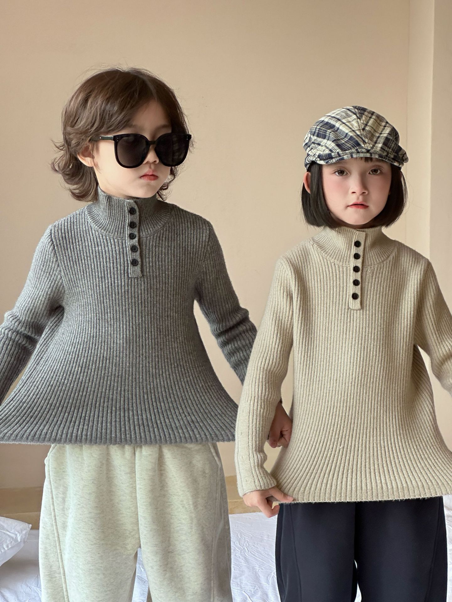 2025冬季新款韩版儿童水貂绒加厚毛衣打底衫男女童修身弹力上衣潮