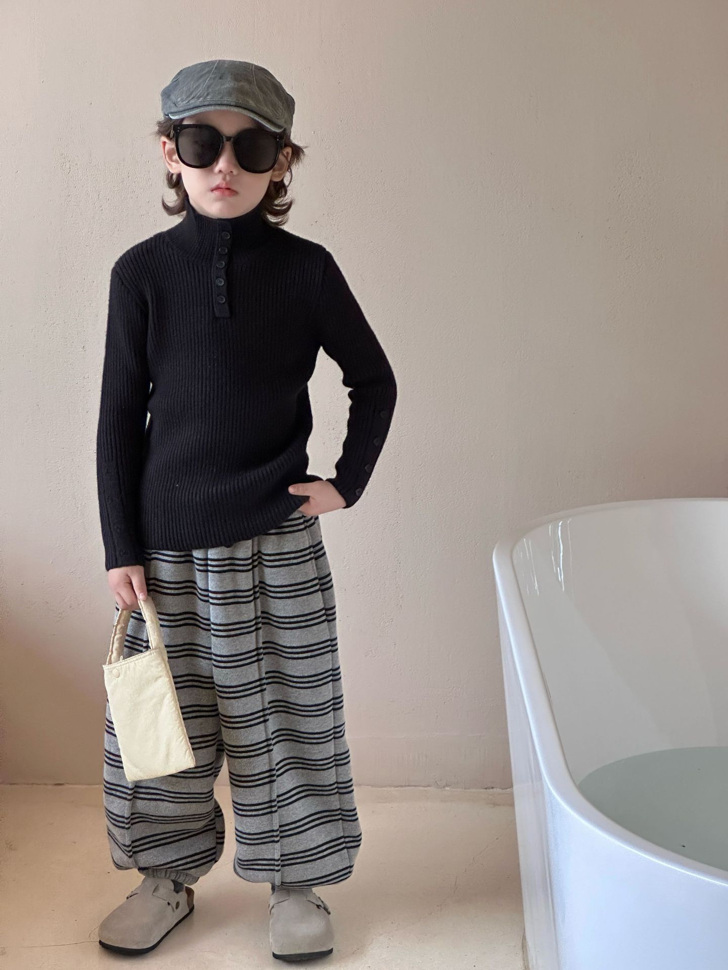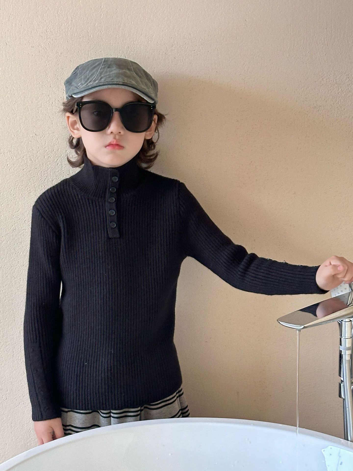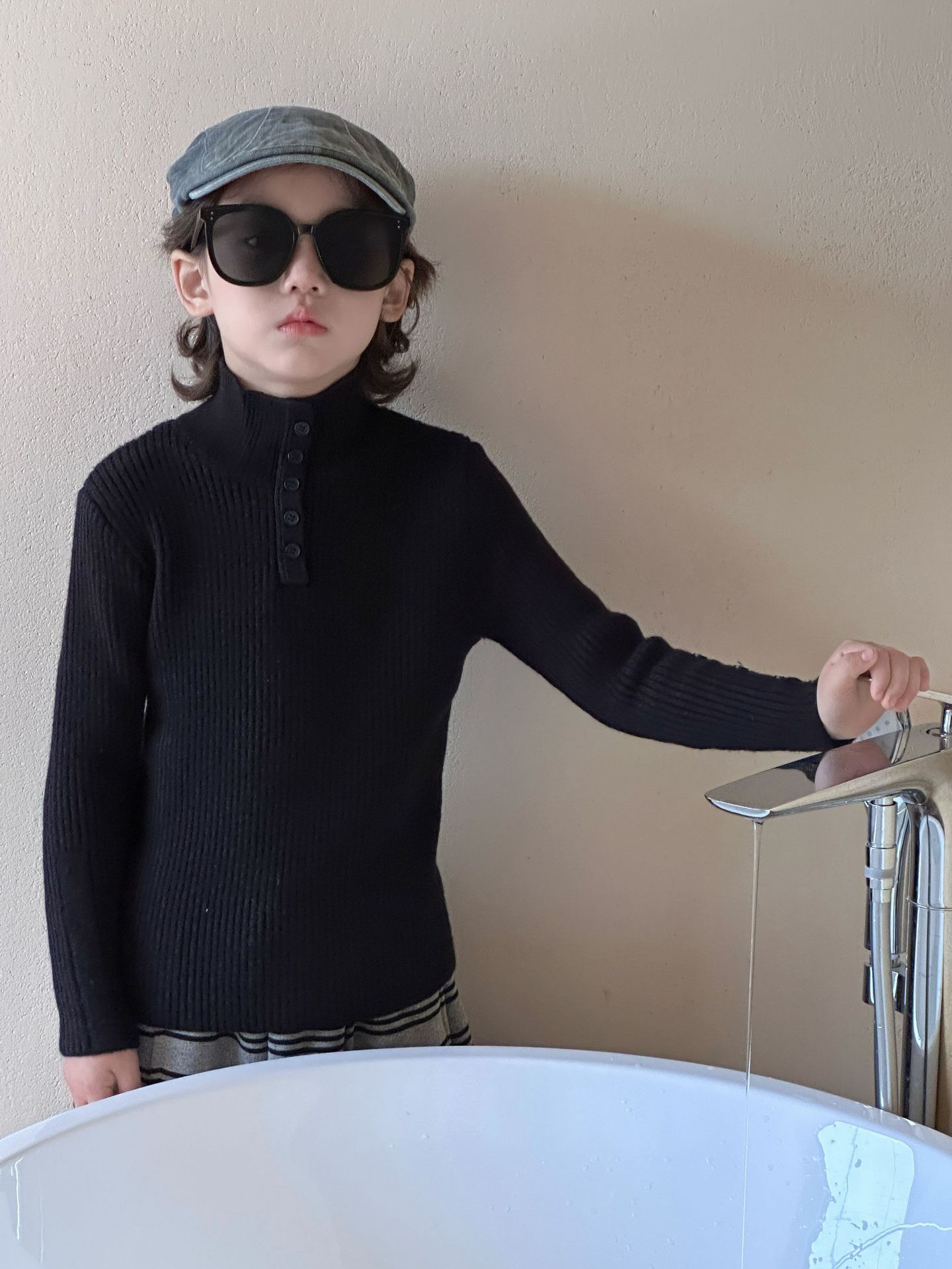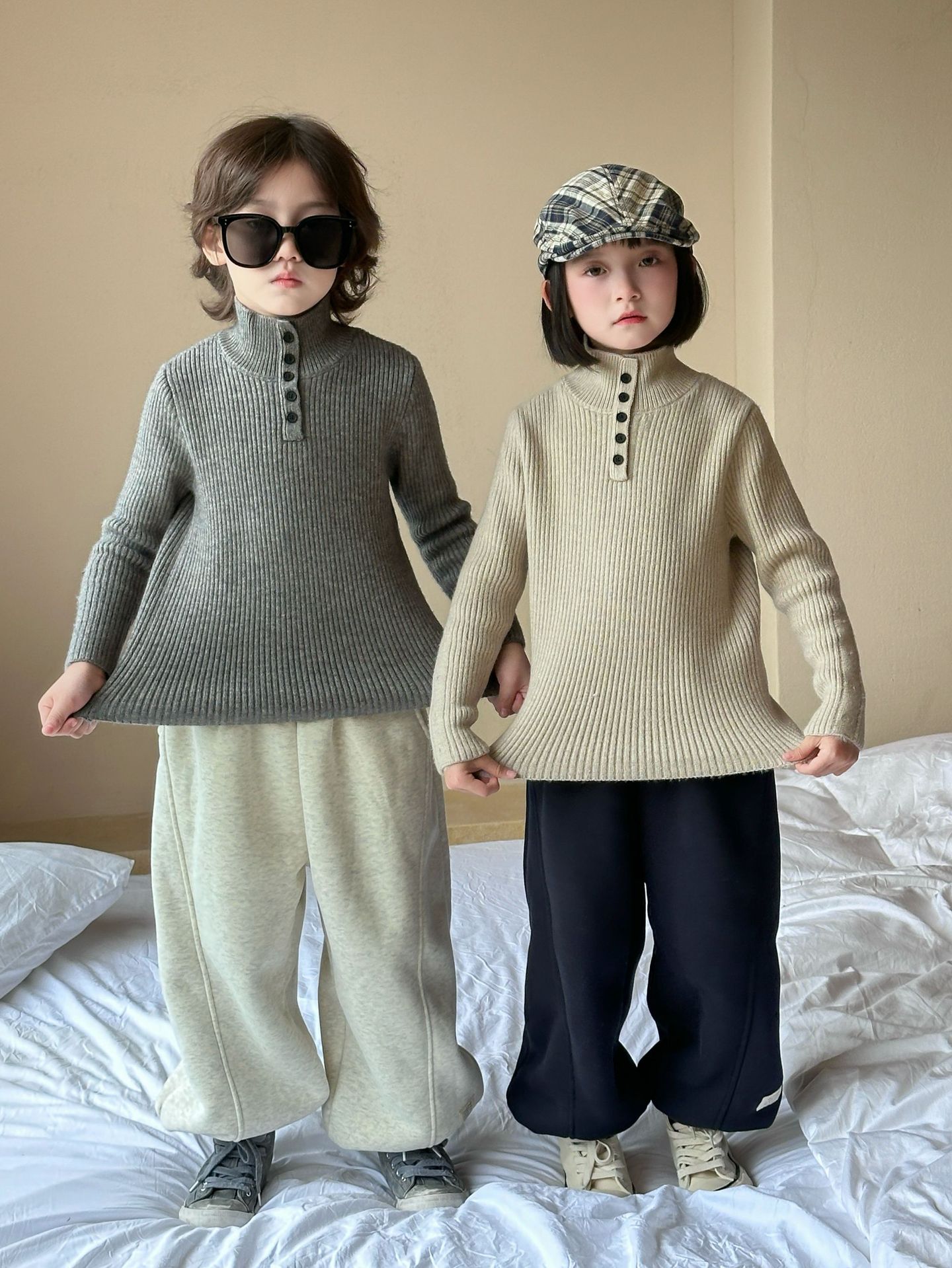 2025冬季新款韩版儿童水貂绒加厚毛衣打底衫男女童修身弹力上衣潮