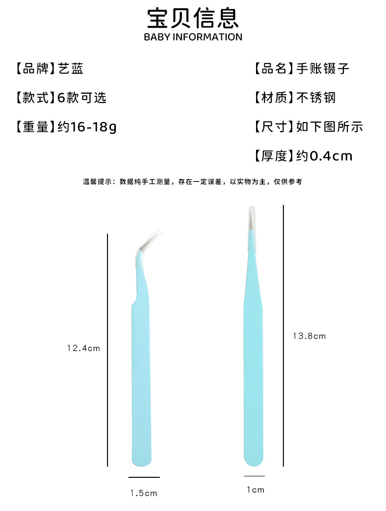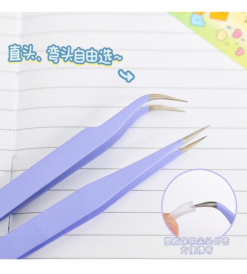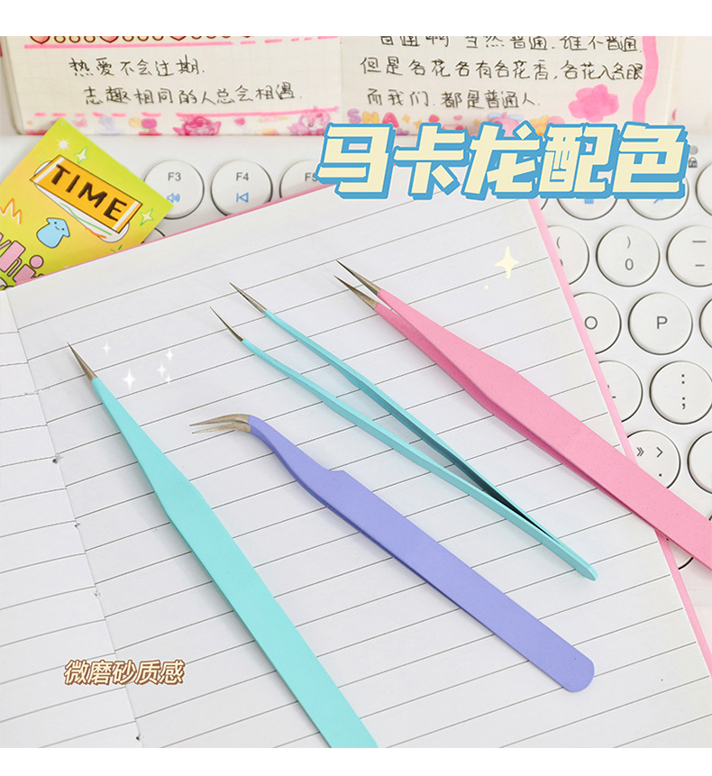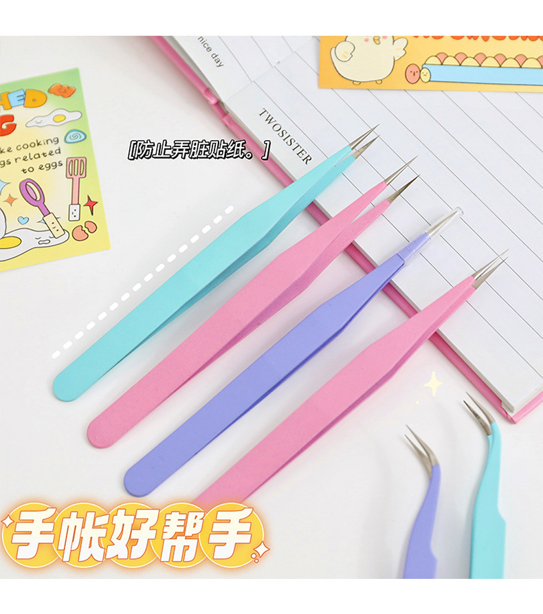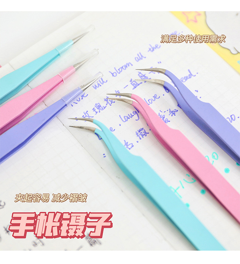 马卡龙彩色手账镊子加厚弯头美甲镊子手工手帐工具不锈钢睫毛镊子