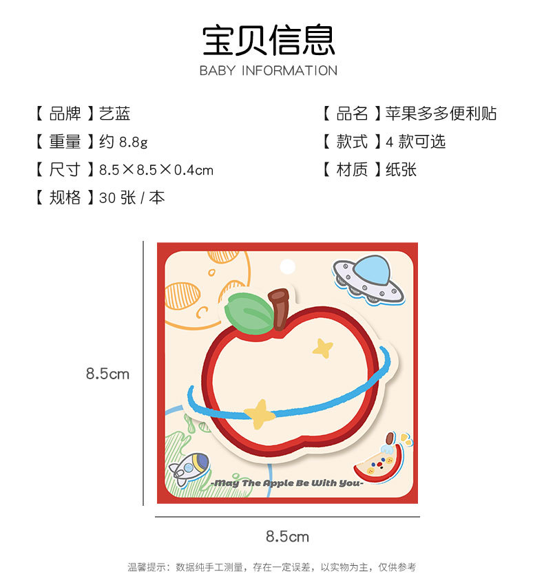 苹果多多便利贴可爱学生N次贴办公室留言贴有粘性便签纸留言纸