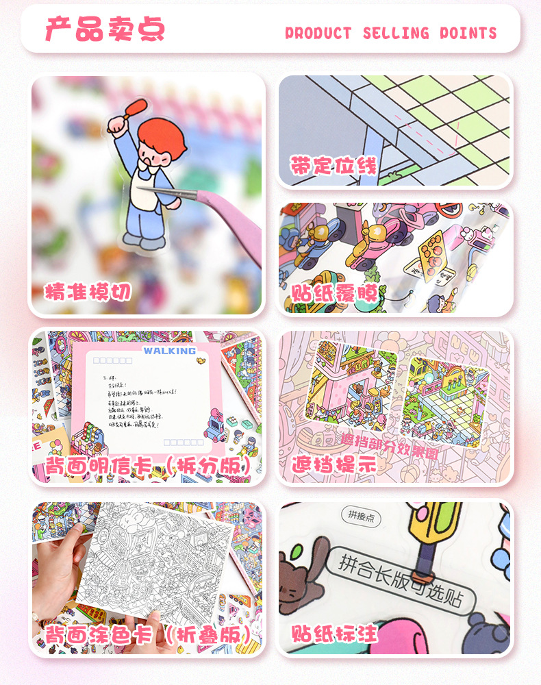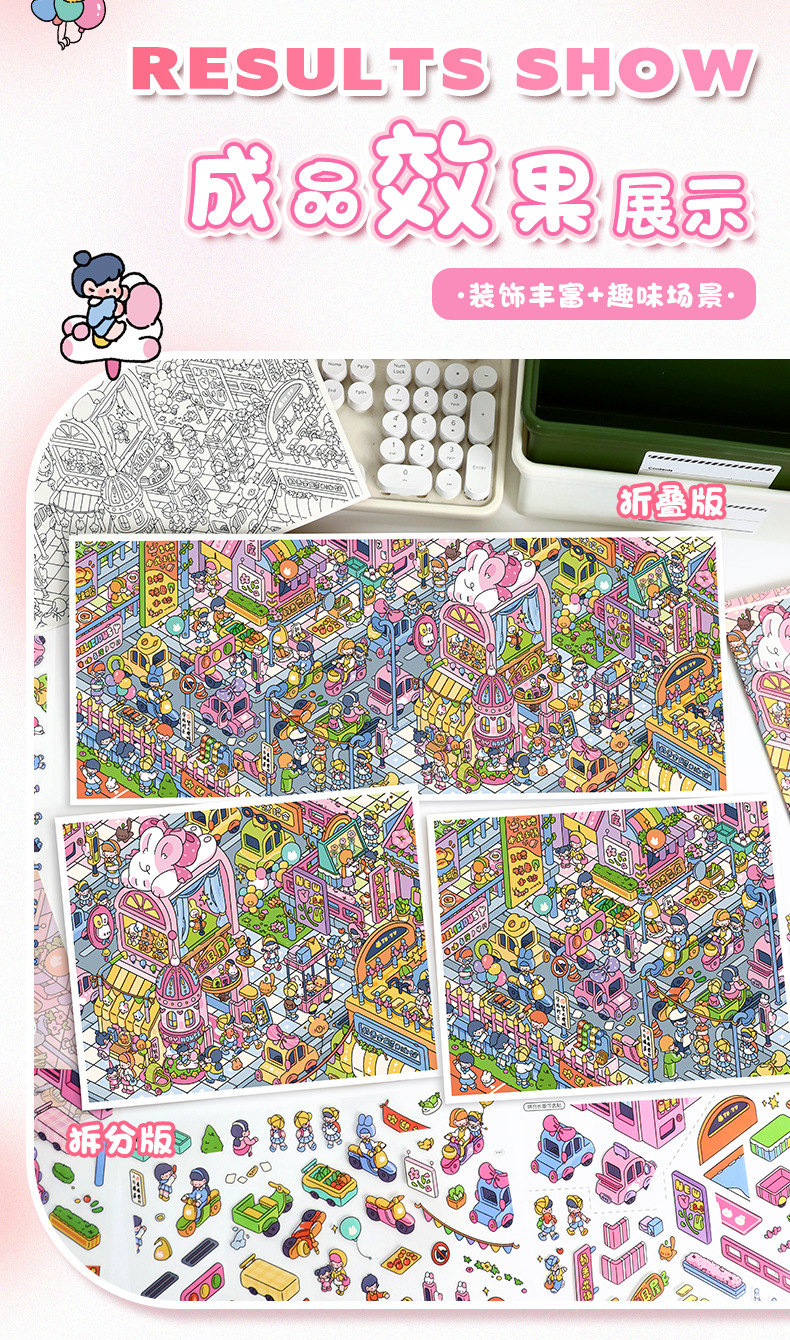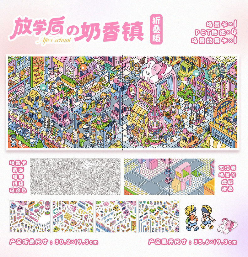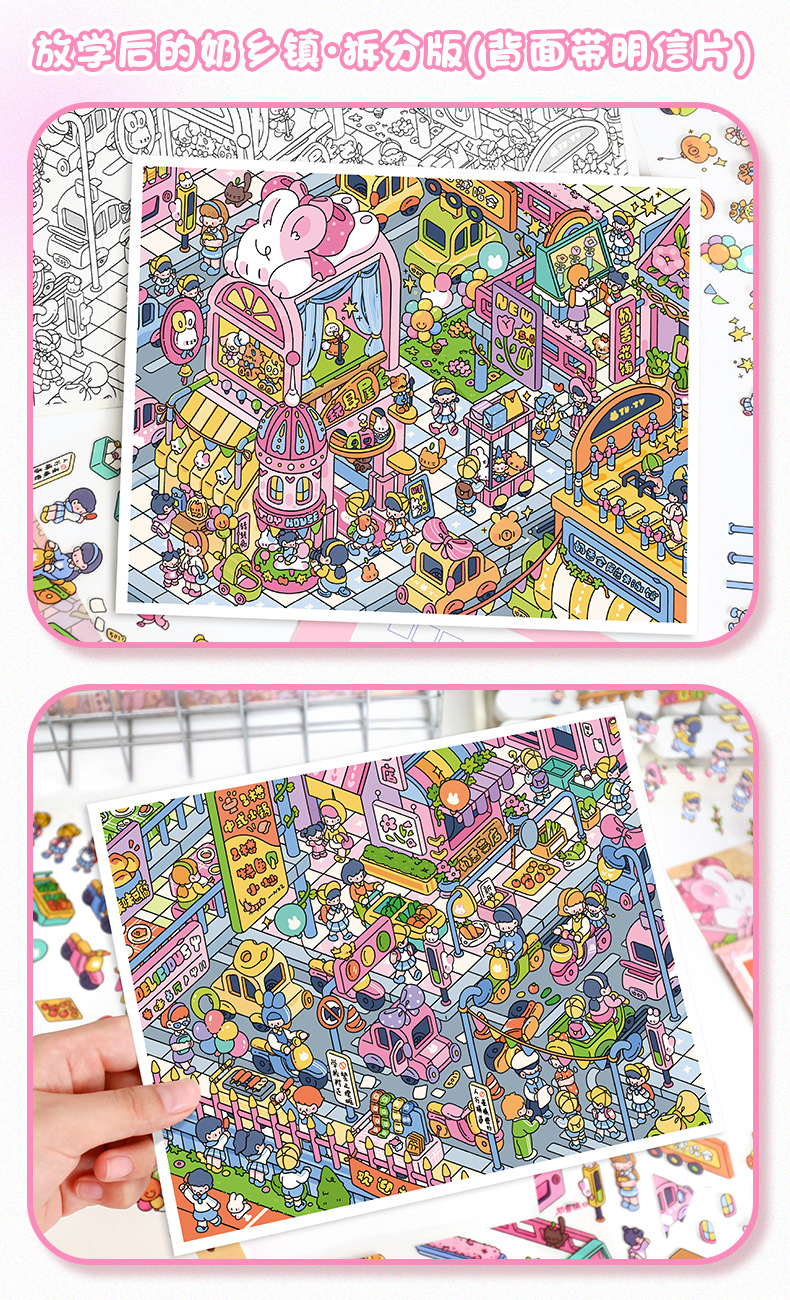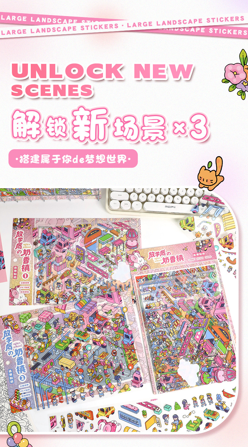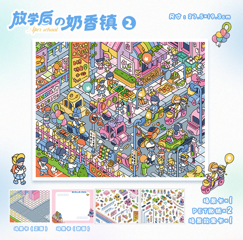 96.0艺蓝造景贴纸奶乡镇场景手账贴纸手工解压贴纸3D立体微缩场景