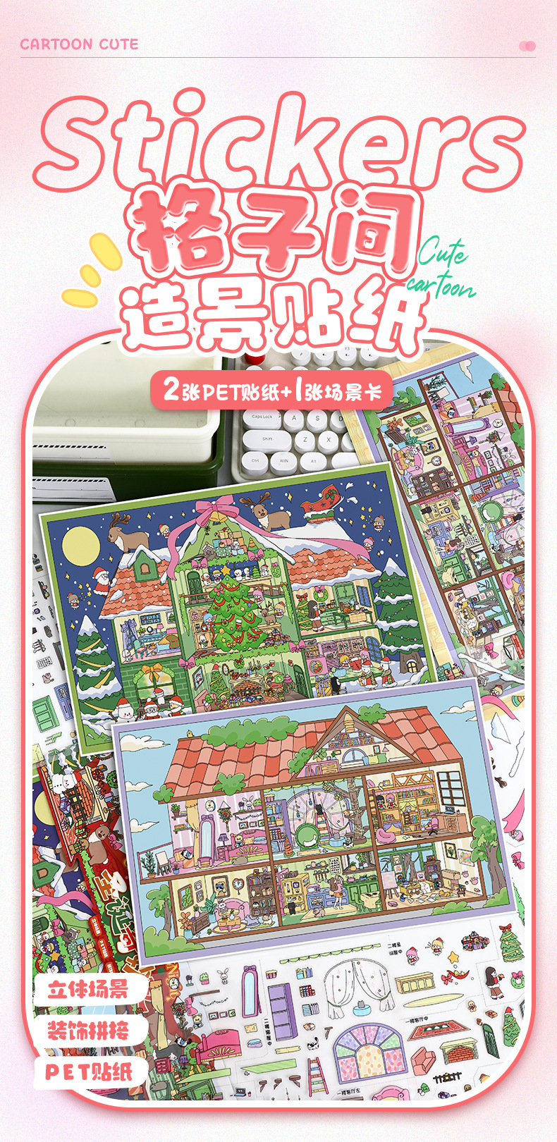 111.0艺蓝造景贴纸格子间系列场景贴纸diy微缩场景解压手账贴纸