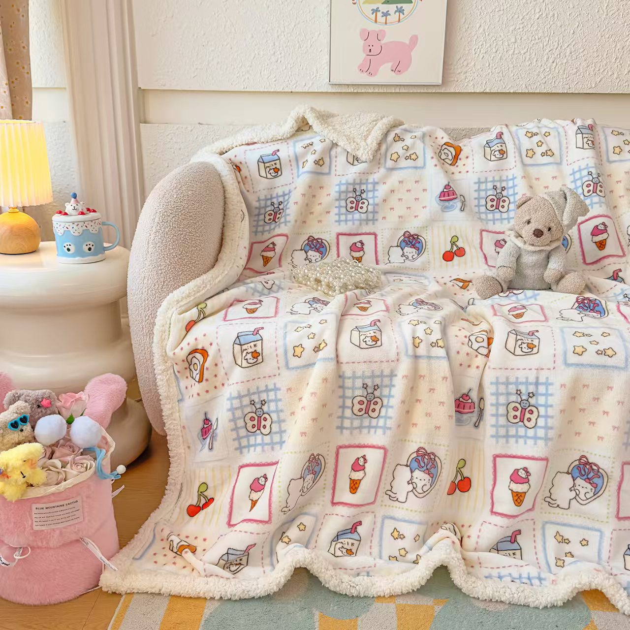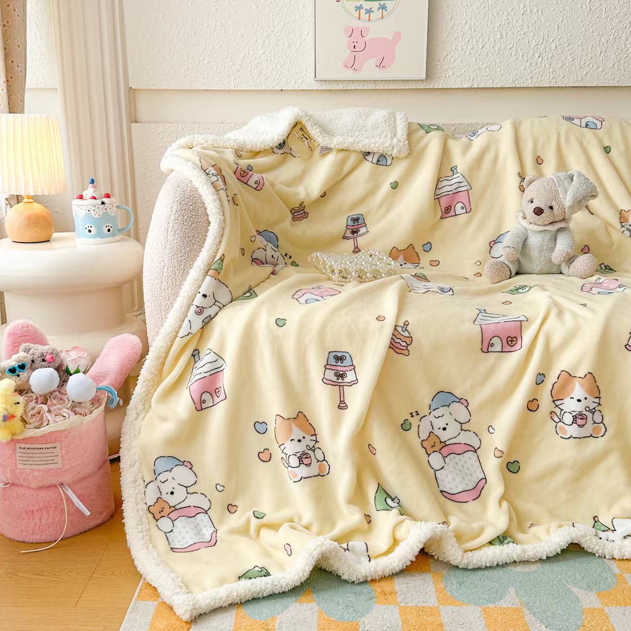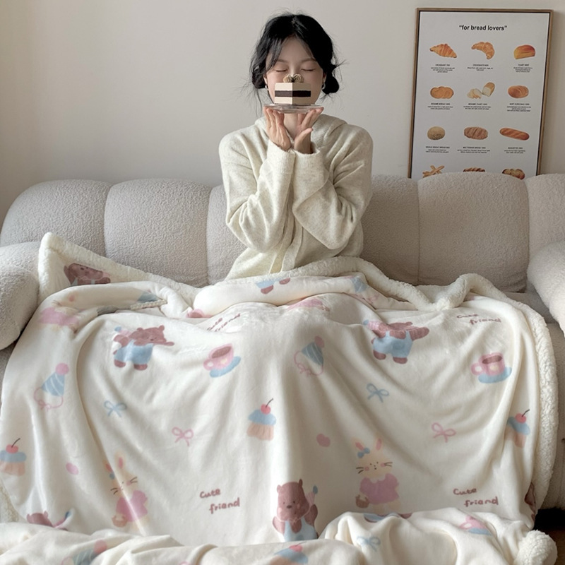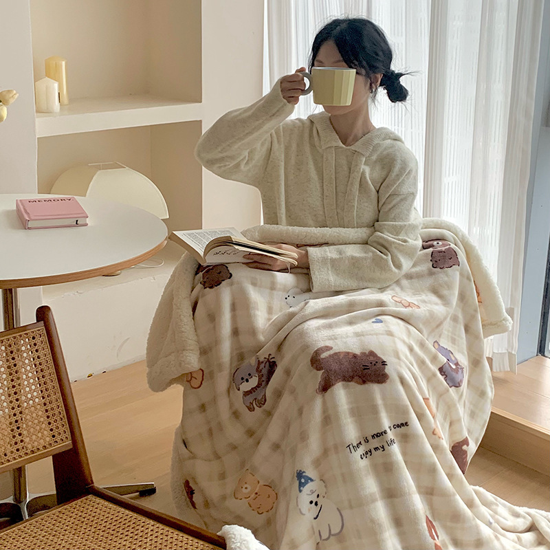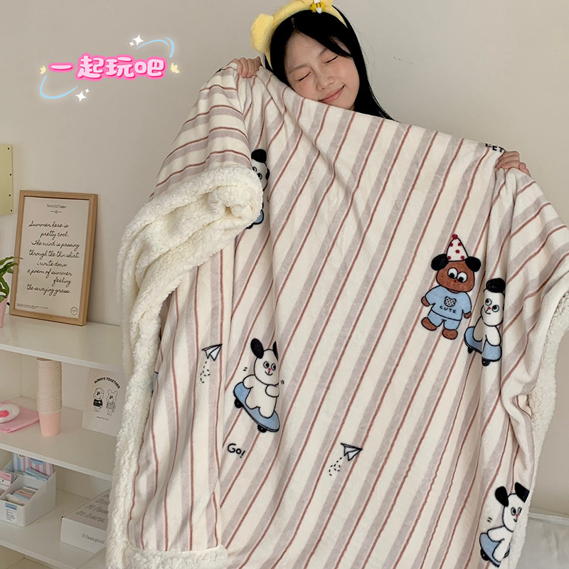 加厚羊羔绒毛毯办公室午睡冬季披肩毯子珊瑚绒空调沙发盖毯幼儿园