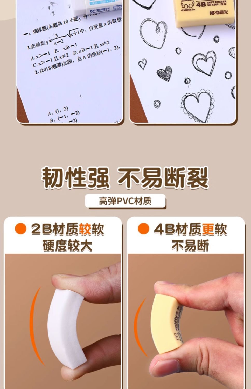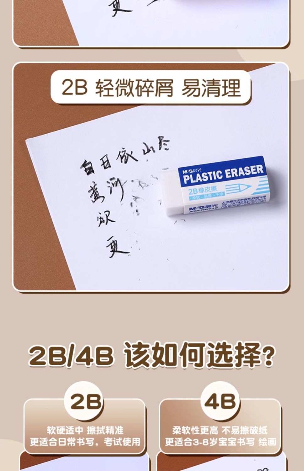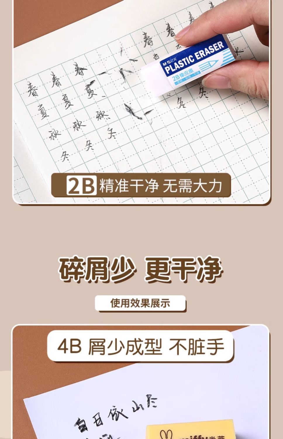 晨光橡皮擦小学生专用无屑4b儿童擦得干净考试美术素描不留痕橡皮