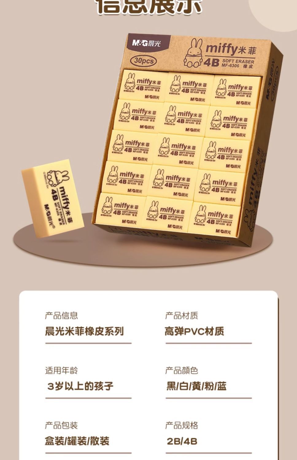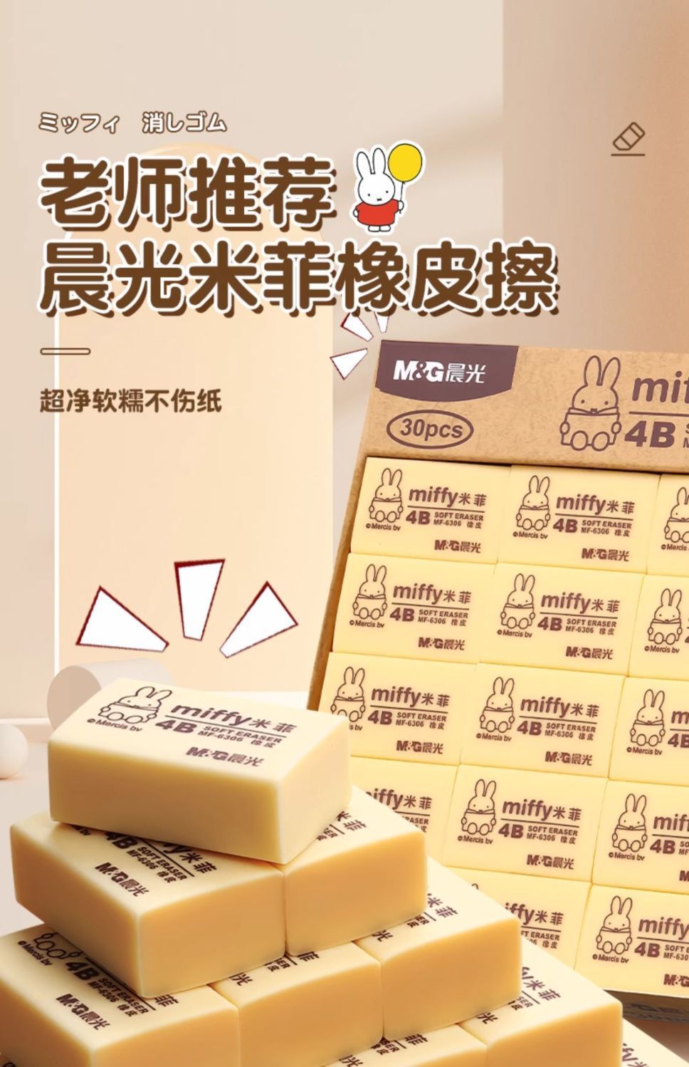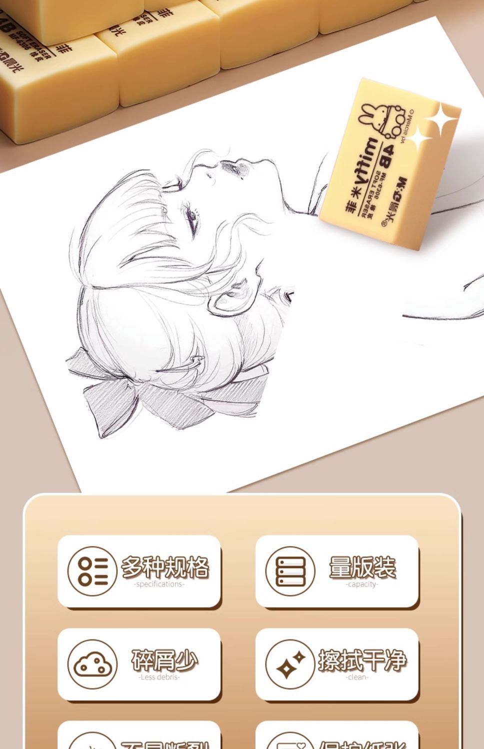 晨光橡皮擦小学生专用无屑4b儿童擦得干净考试美术素描不留痕橡皮