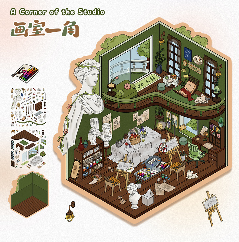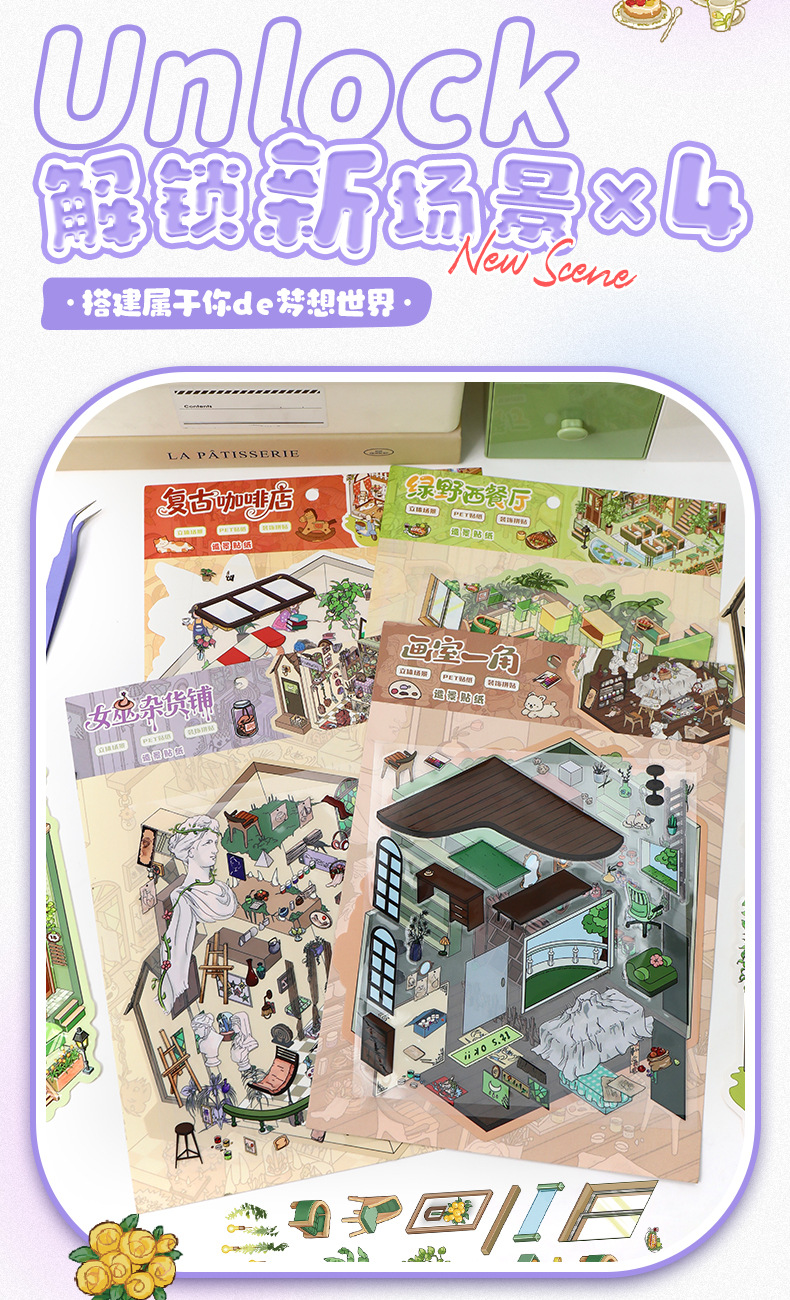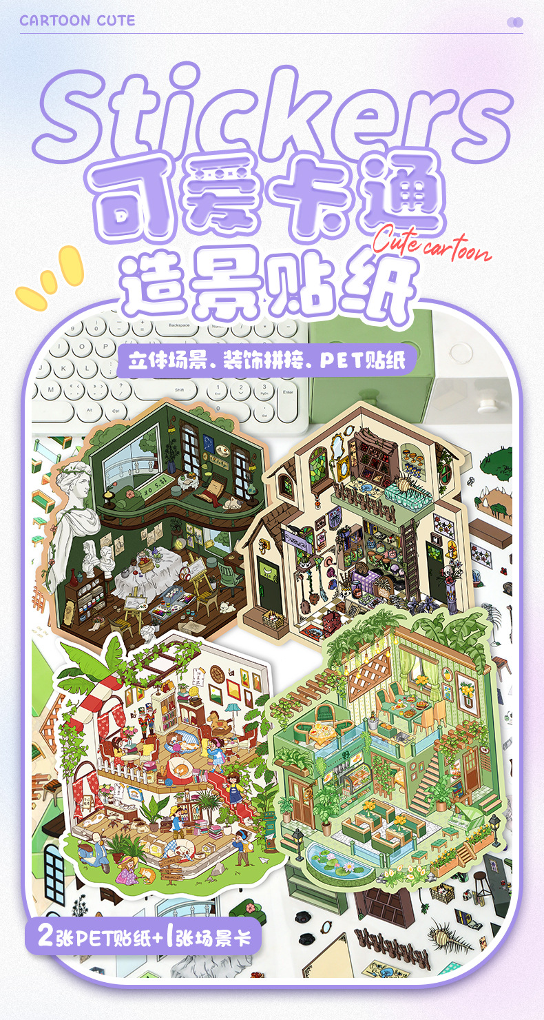 102.0艺蓝造景贴纸特油系列场景贴纸少女心微缩场景diy手账贴纸