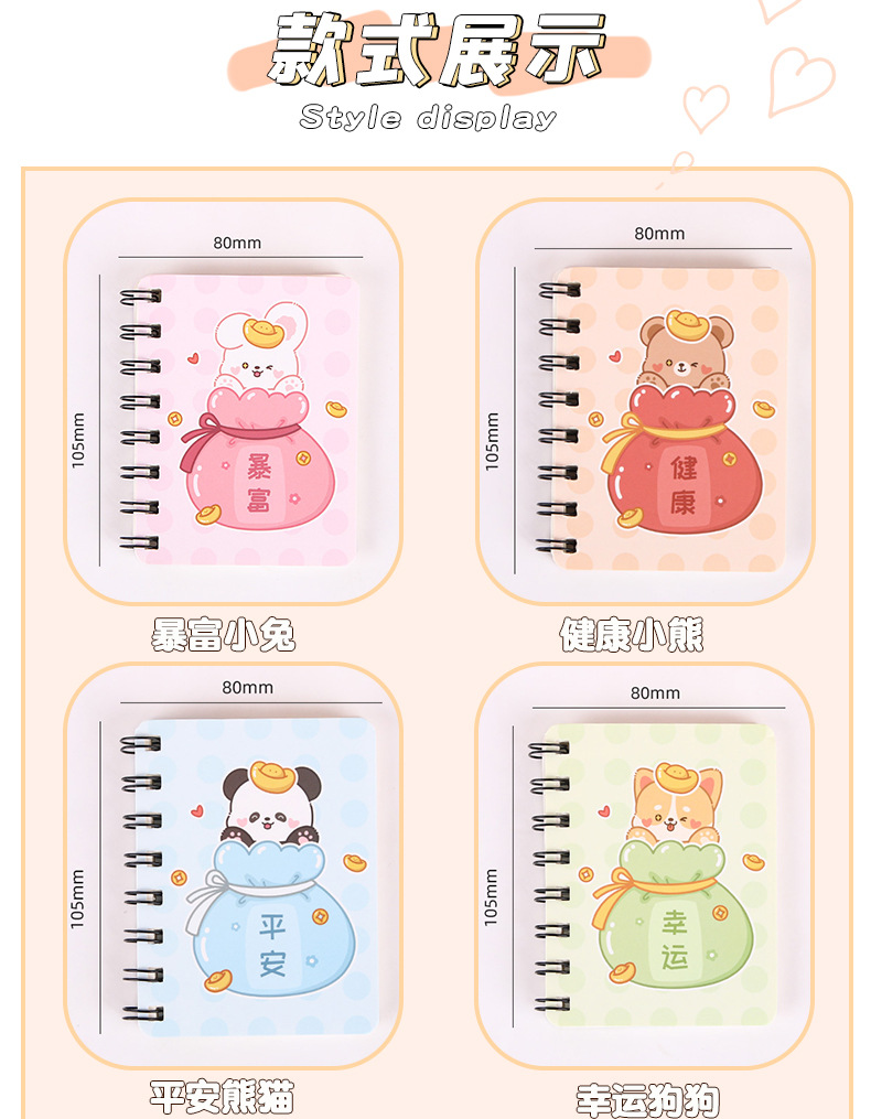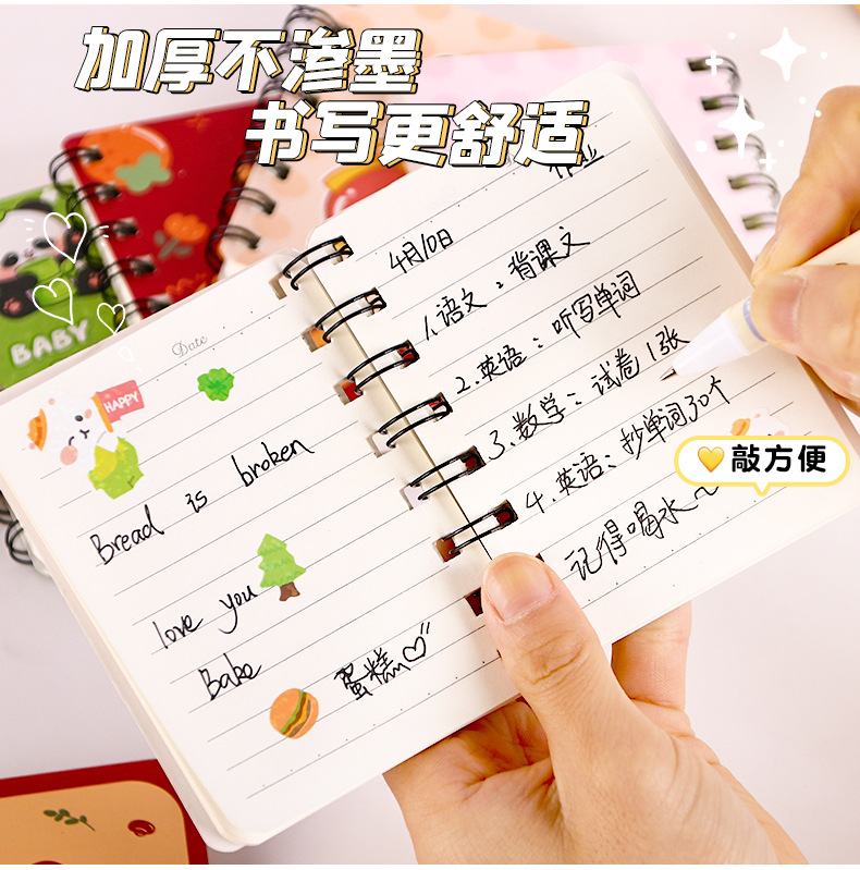 迷你线圈本可爱卡通侧翻本活页本学生便携口袋A7单词笔记本子批发